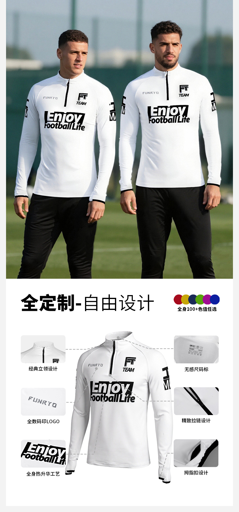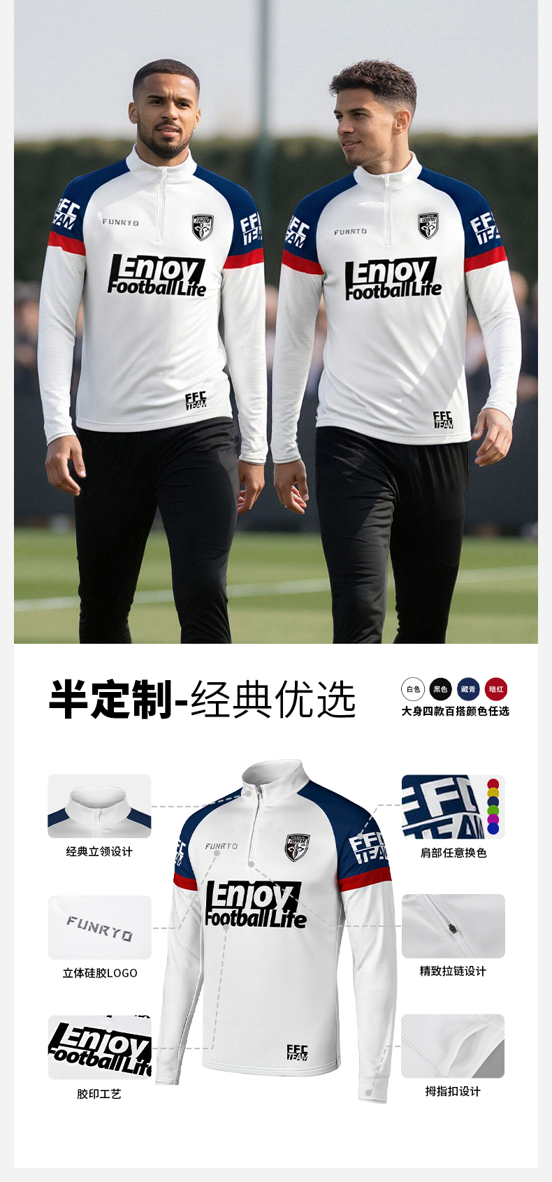 小李子:FUNRY组队定制半拉链训练服秋冬 足球跑步健身长袖卫衣运动外套
