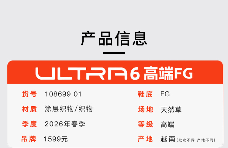 小李子PUMA彪马 ULTRA 6 高端FG长钉成人训练足球鞋男108699 01