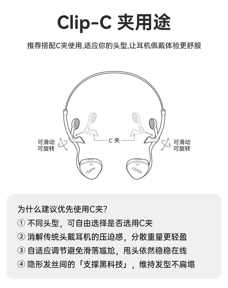 Cleer Clip 头戴式耳机 开放式头戴AI耳机蓝牙空间音频杜比4067