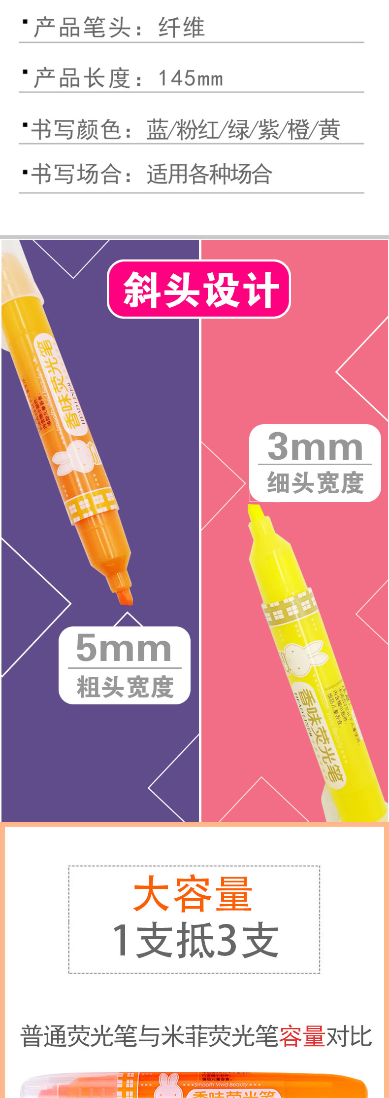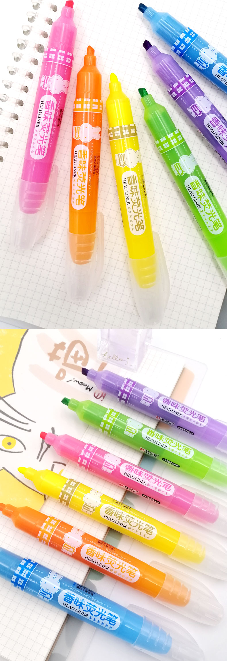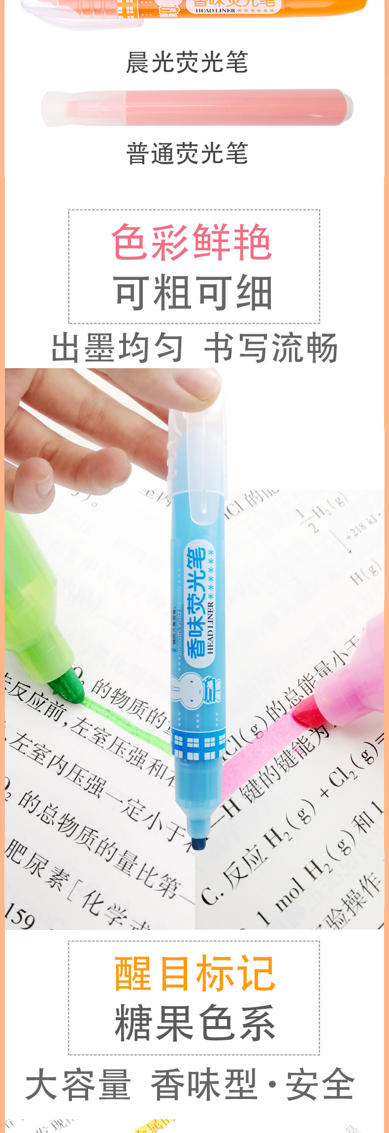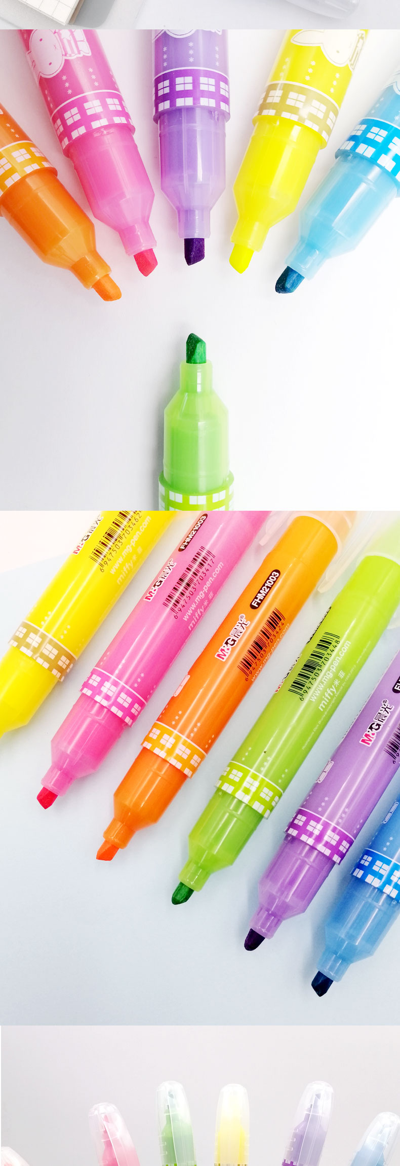 晨光荧光笔米菲FHM21003画划重点标记笔马卡龙色系儿童学生用迷你米菲香味蓝黄绿淡色系护大容量记号笔彩色