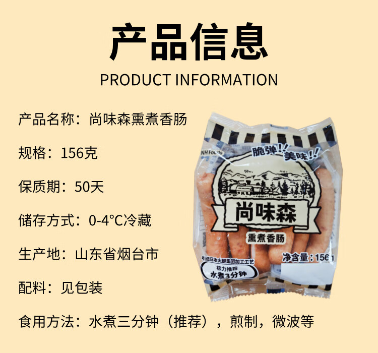 尚味森熏煮香肠 156g 营养早餐便当零食烤肠鲜肉熏制香肠