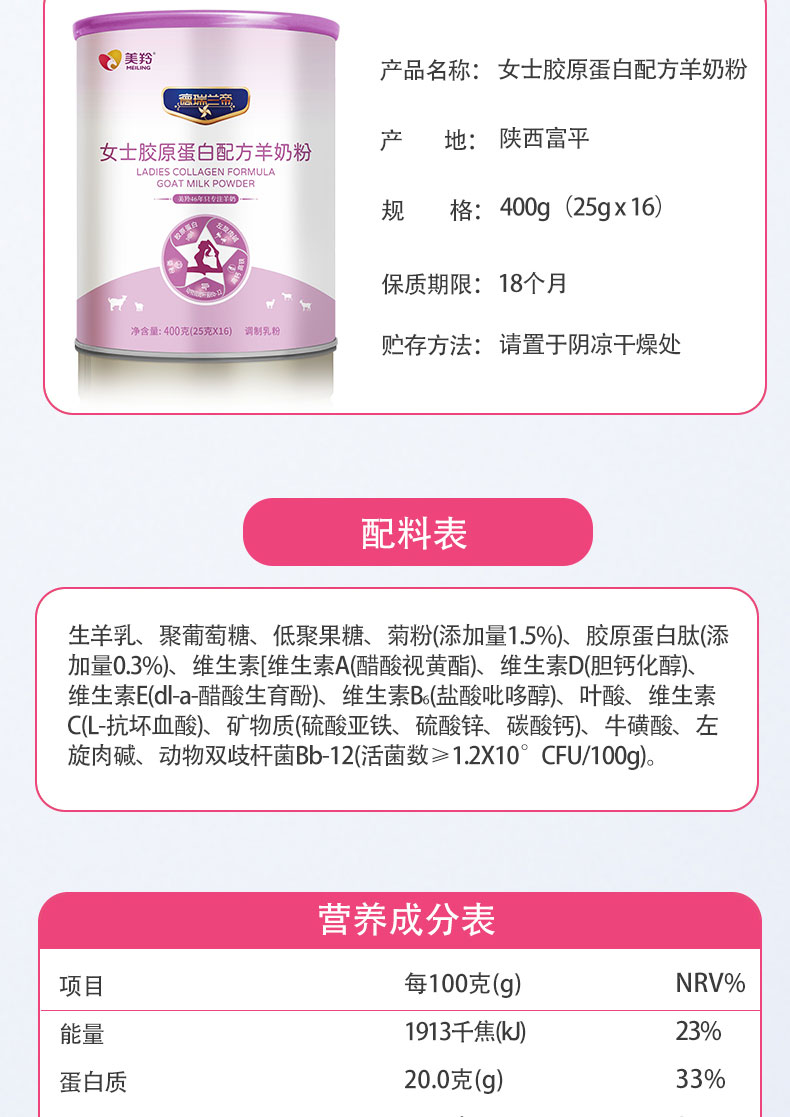 【新品上市】德瑞兰帝女士胶原蛋白配方羊奶粉400g罐装