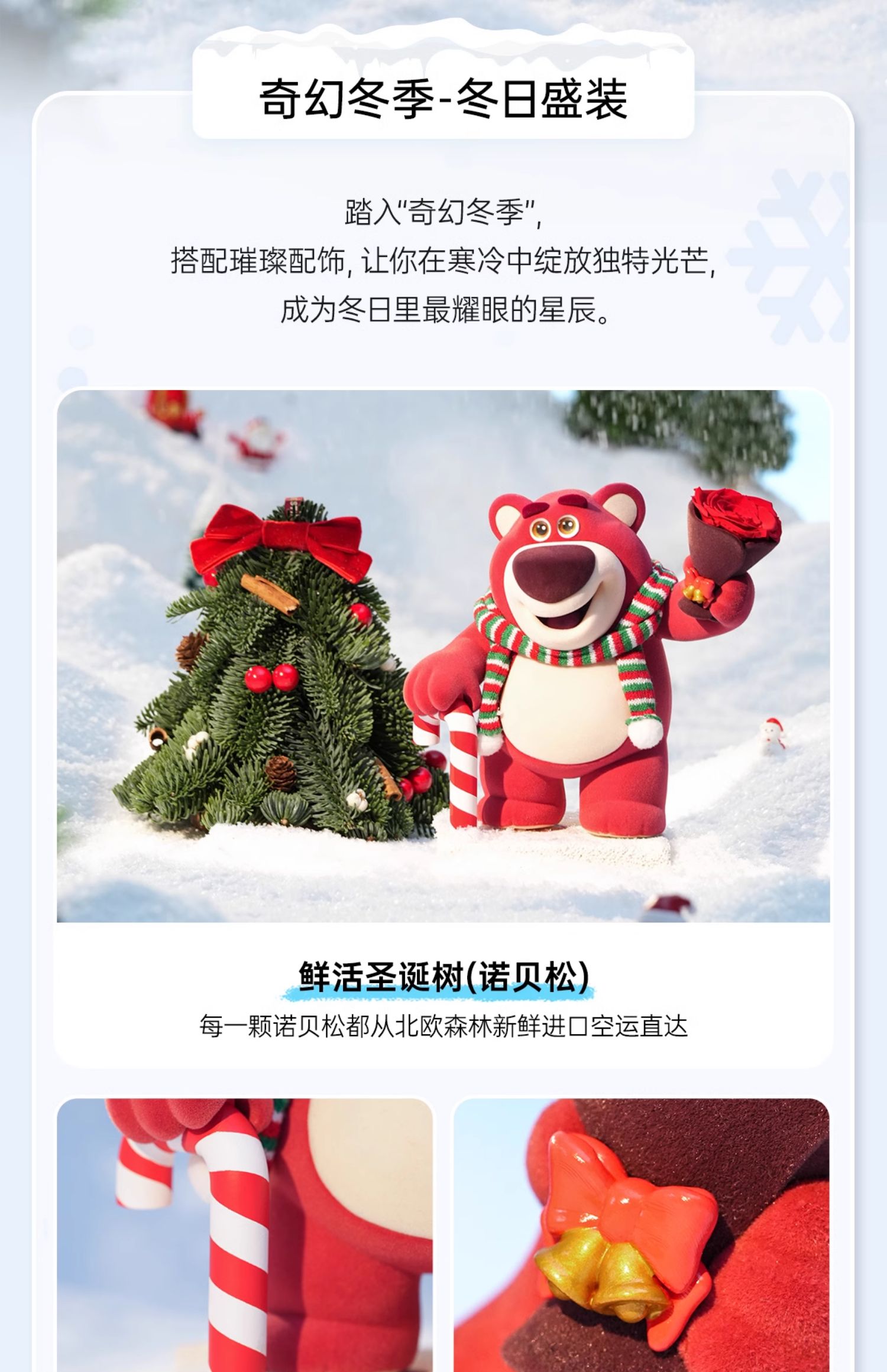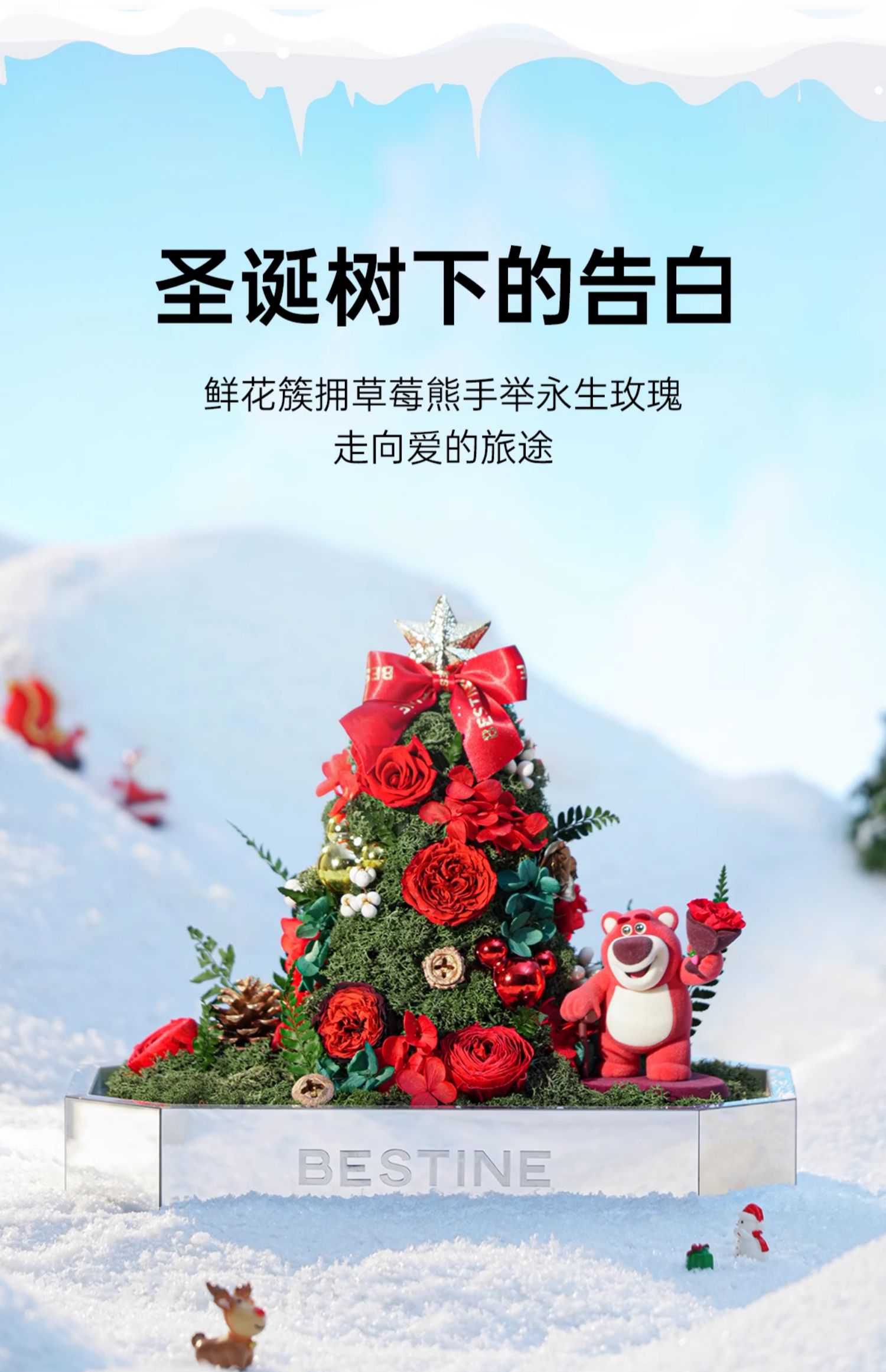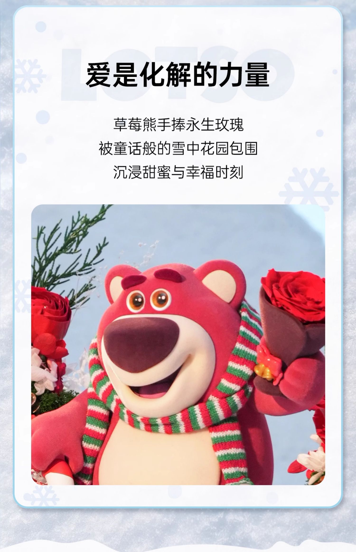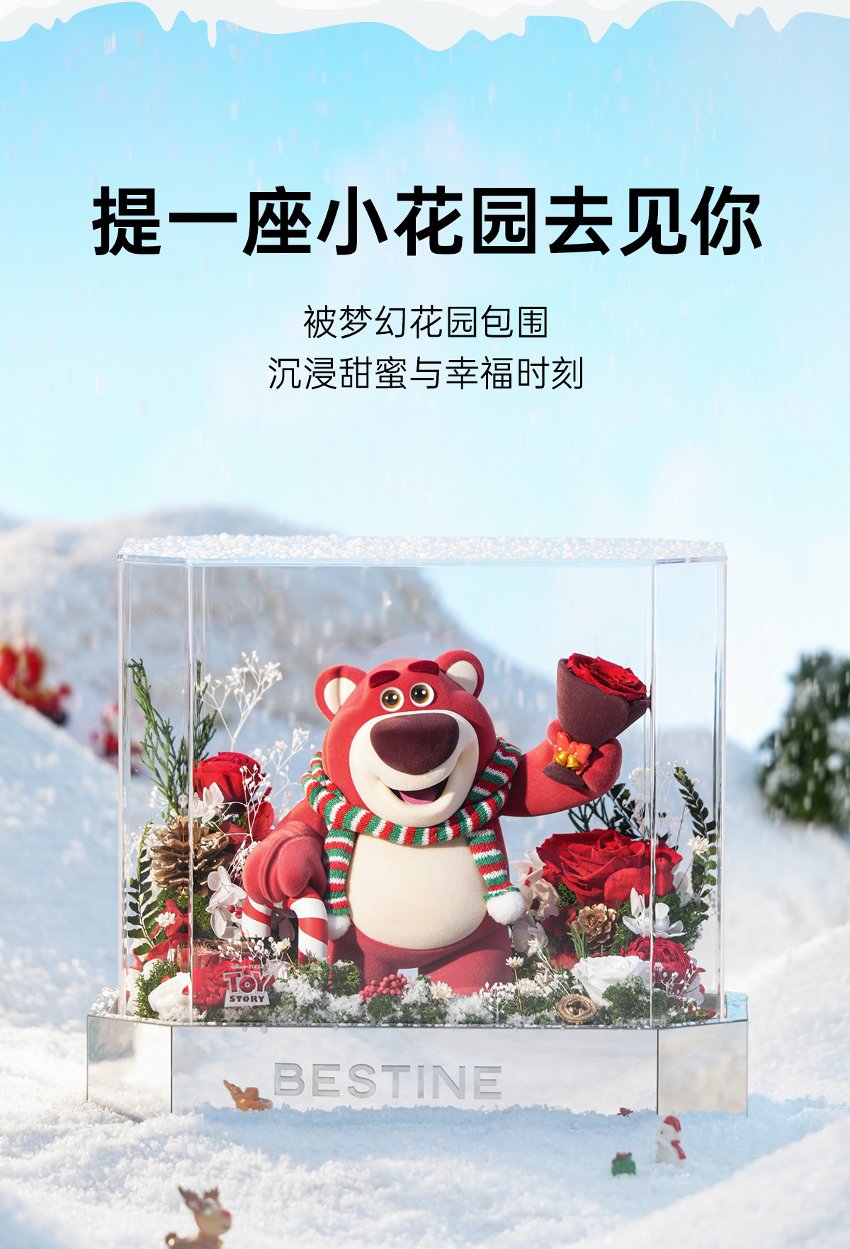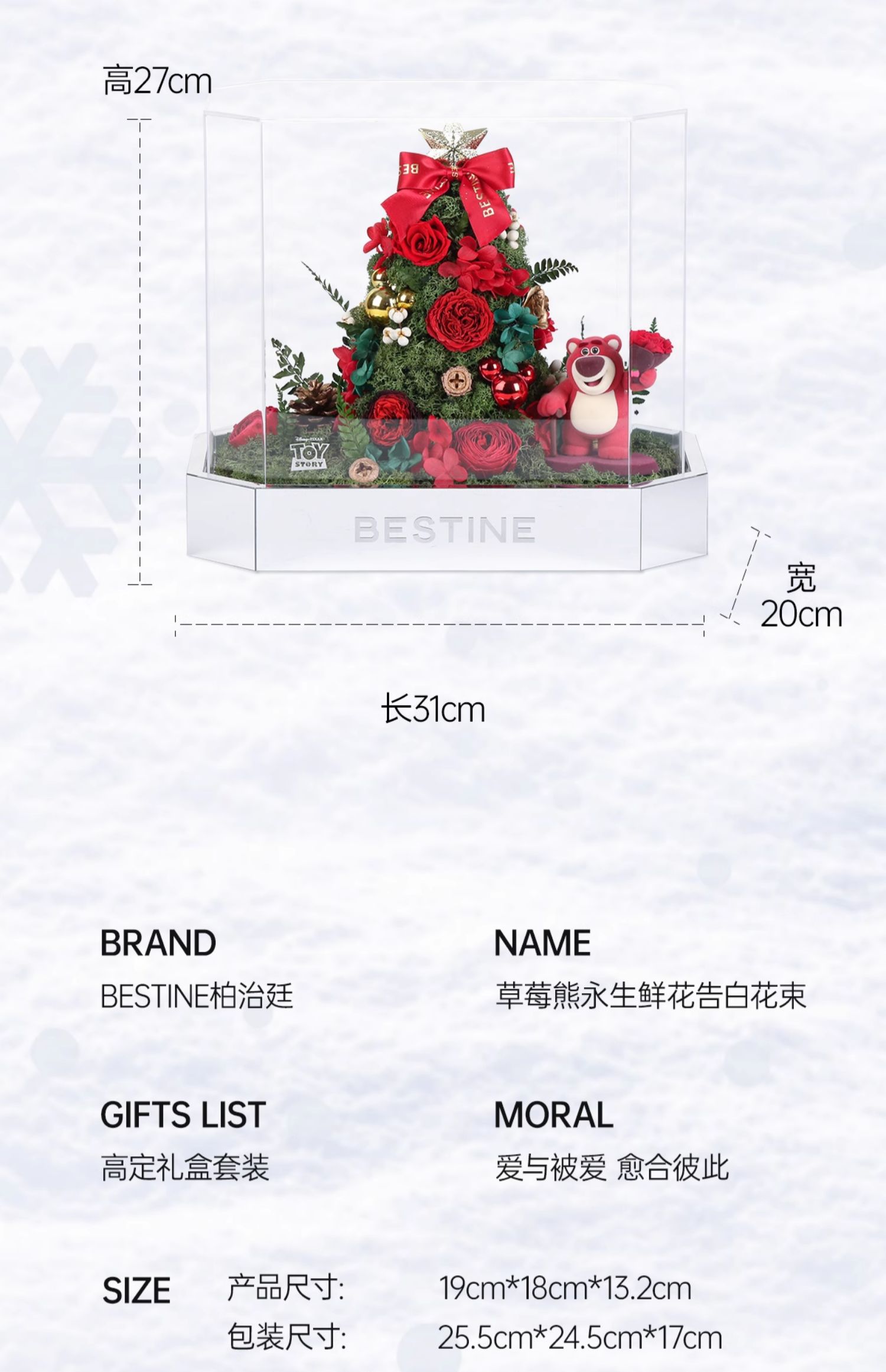 VBEINGS花语 『奇幻冬日』圣诞礼物迪士尼草莓熊花束永生花礼盒玫瑰花摆件生日礼物