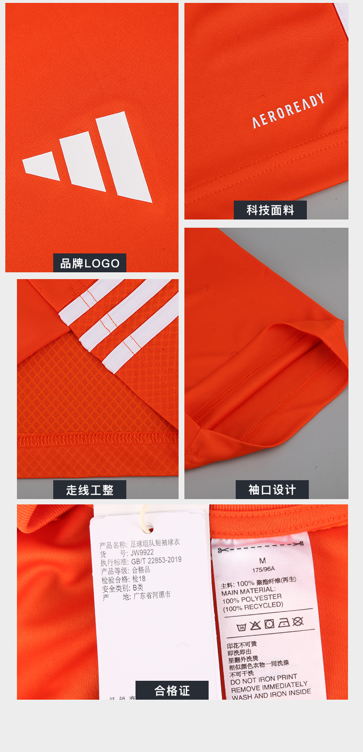 小李子正品ADIDAS阿迪达斯足球运动训练组队短袖球衣成人男JW9922