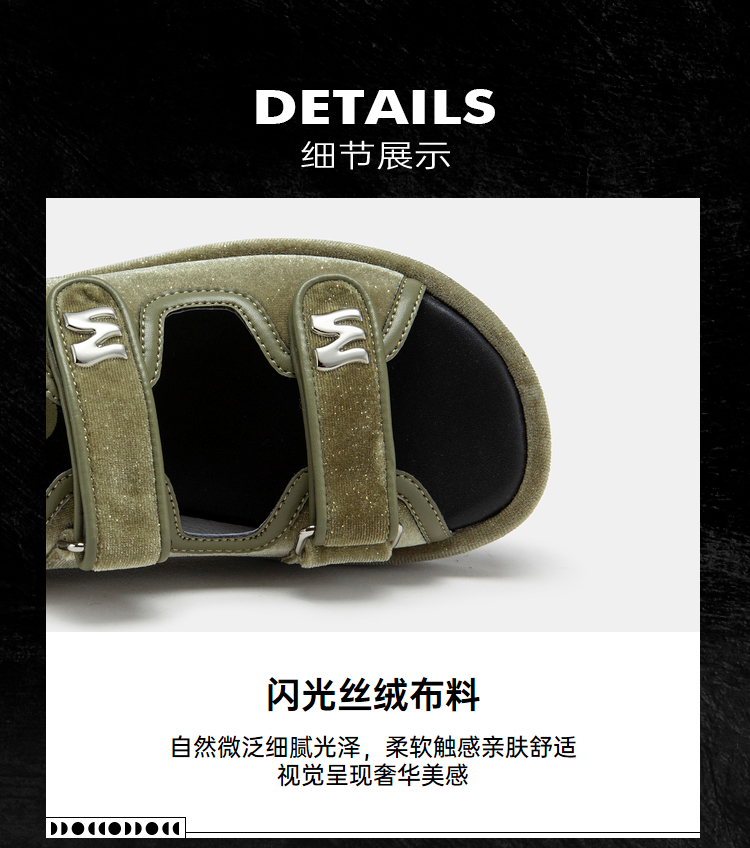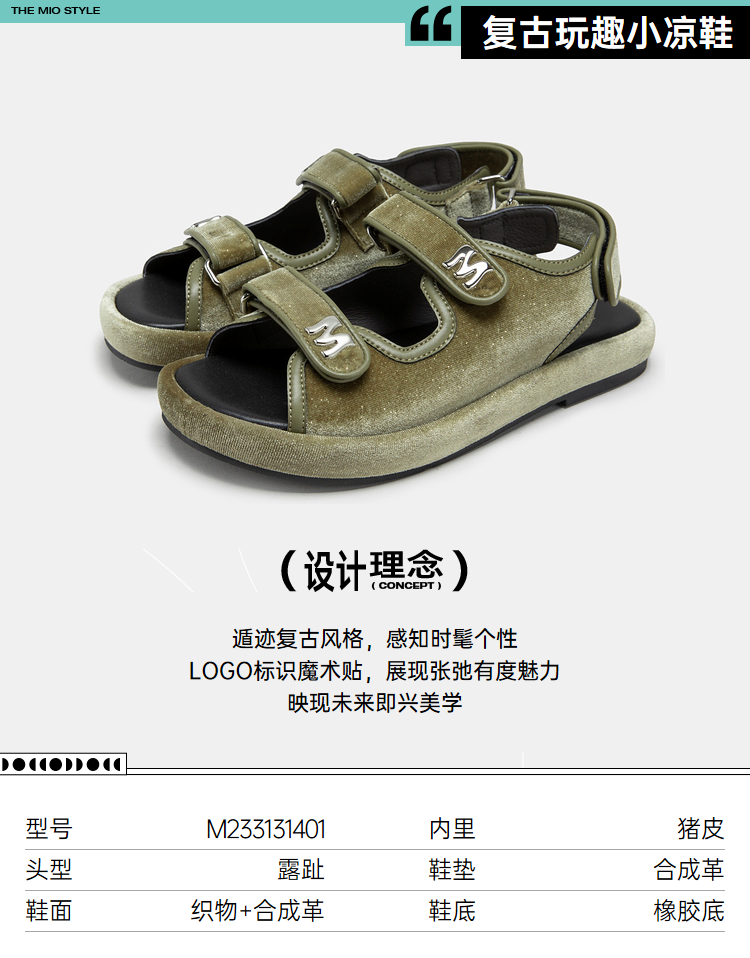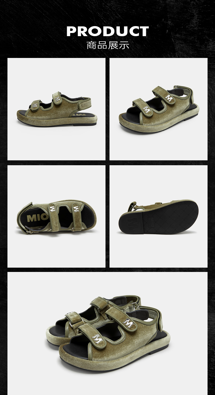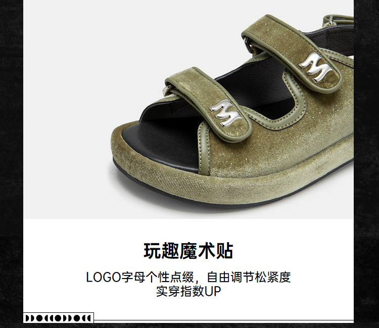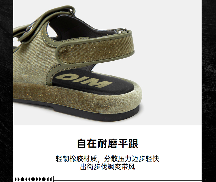 MIO米奥夏季复古百搭平跟凉鞋闪光丝绒舒适潮流时尚休闲沙滩鞋女M233131401