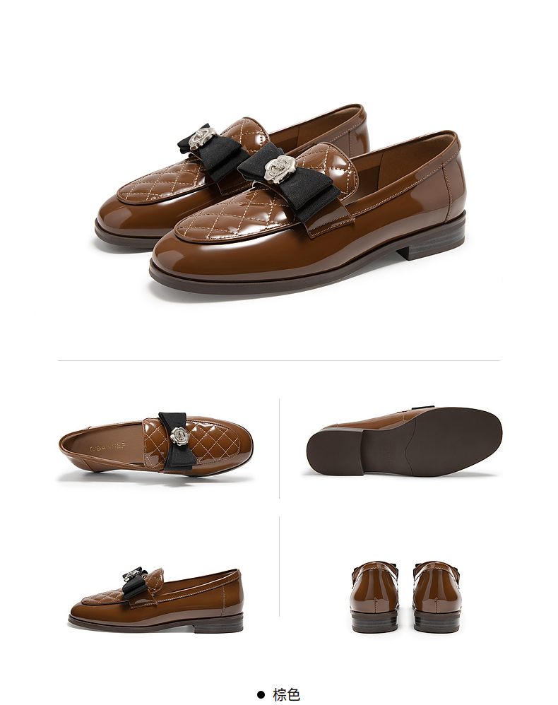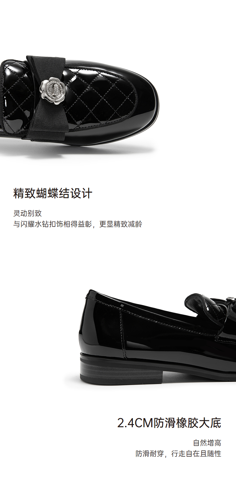 千百度漆皮低跟乐福鞋女款秋季一脚蹬平底小皮鞋通勤单鞋A24450120