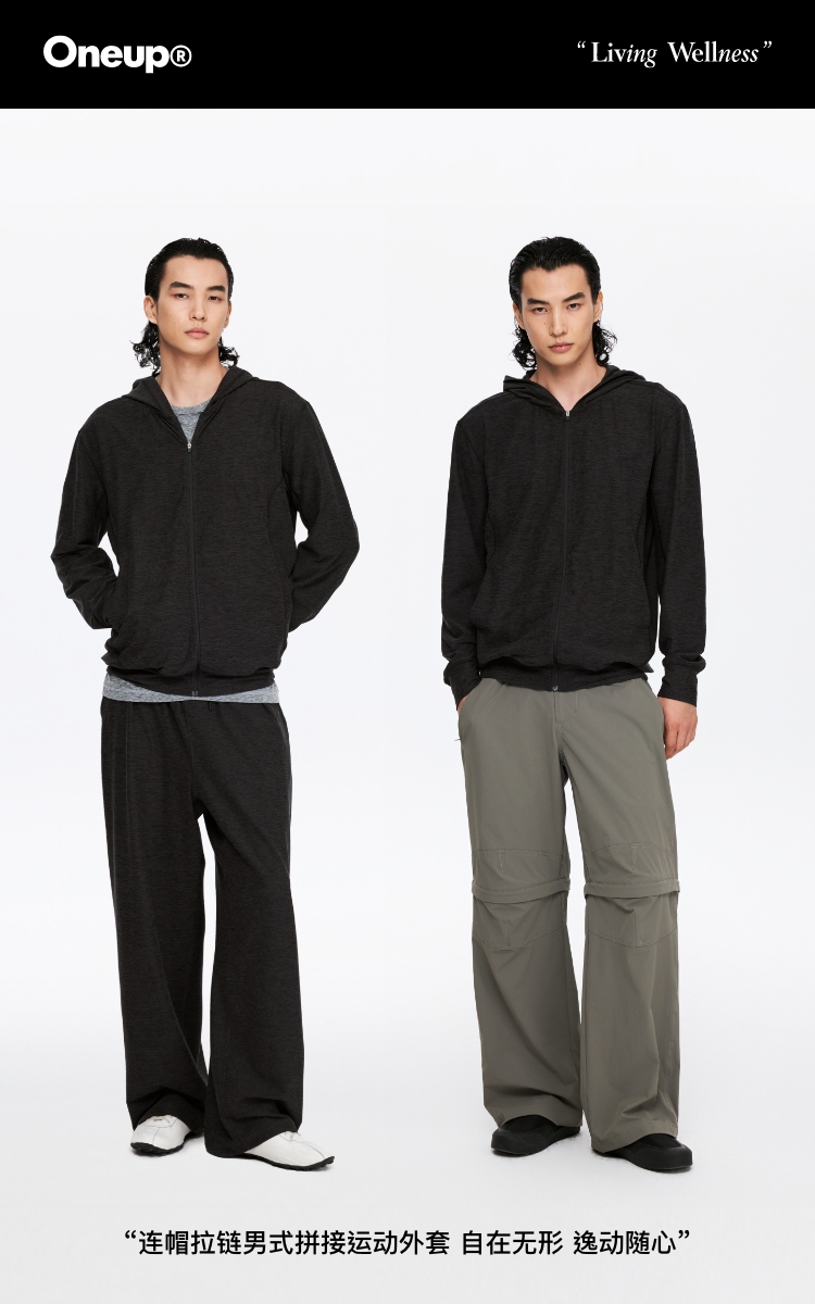 oneup连帽拉链男式拼接运动外套 (男女同款)