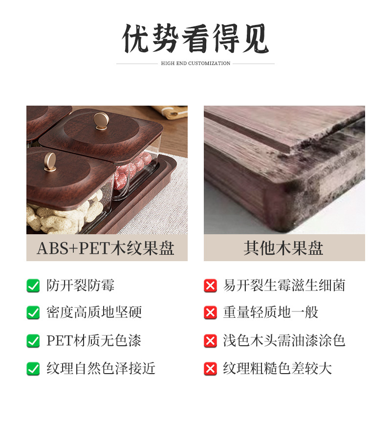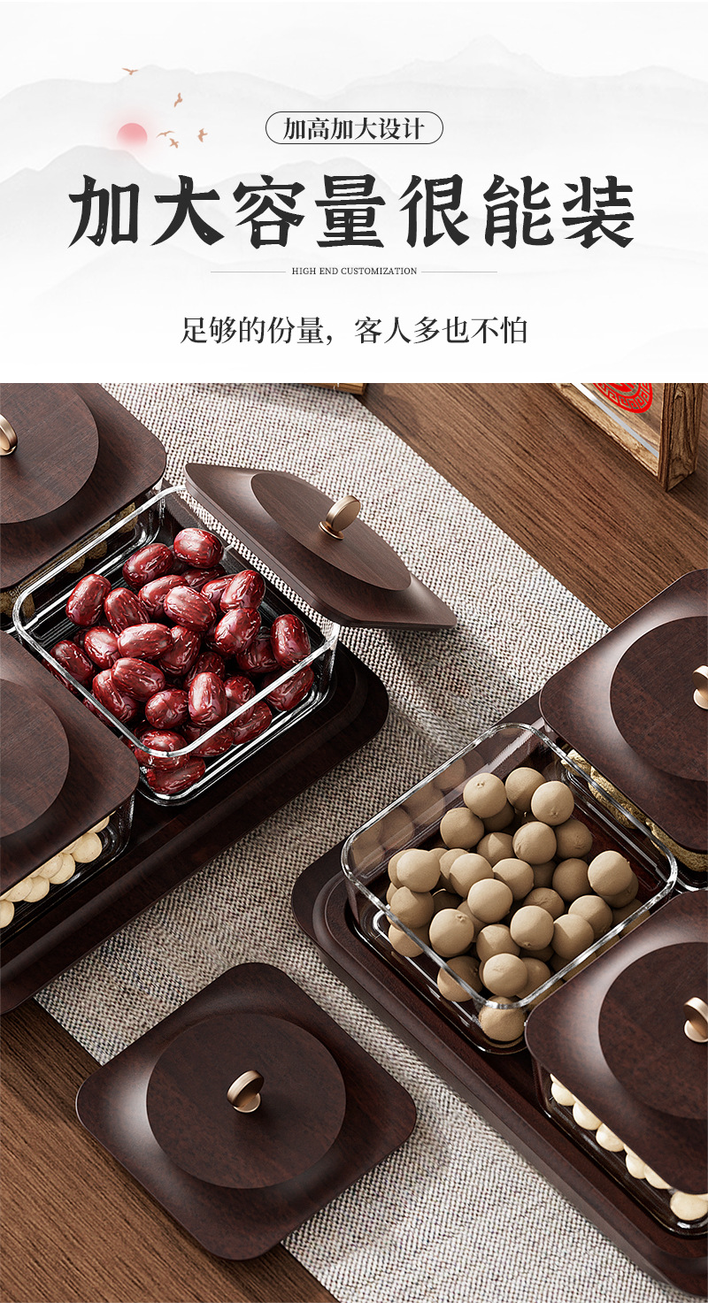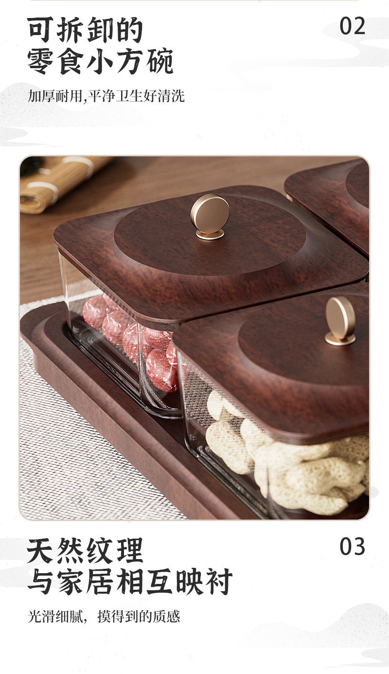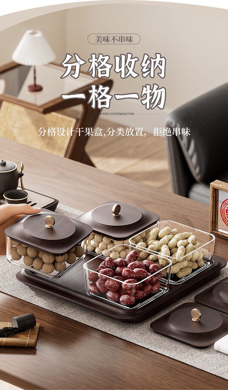 「高颜值!轻奢木纹干果盘」新款居家日用客厅茶几零食坚果糖果收纳整理盒水果盘