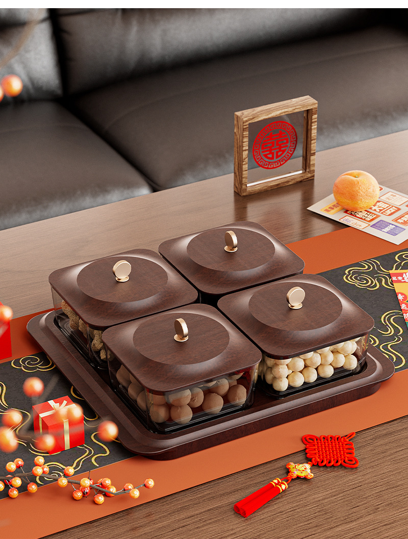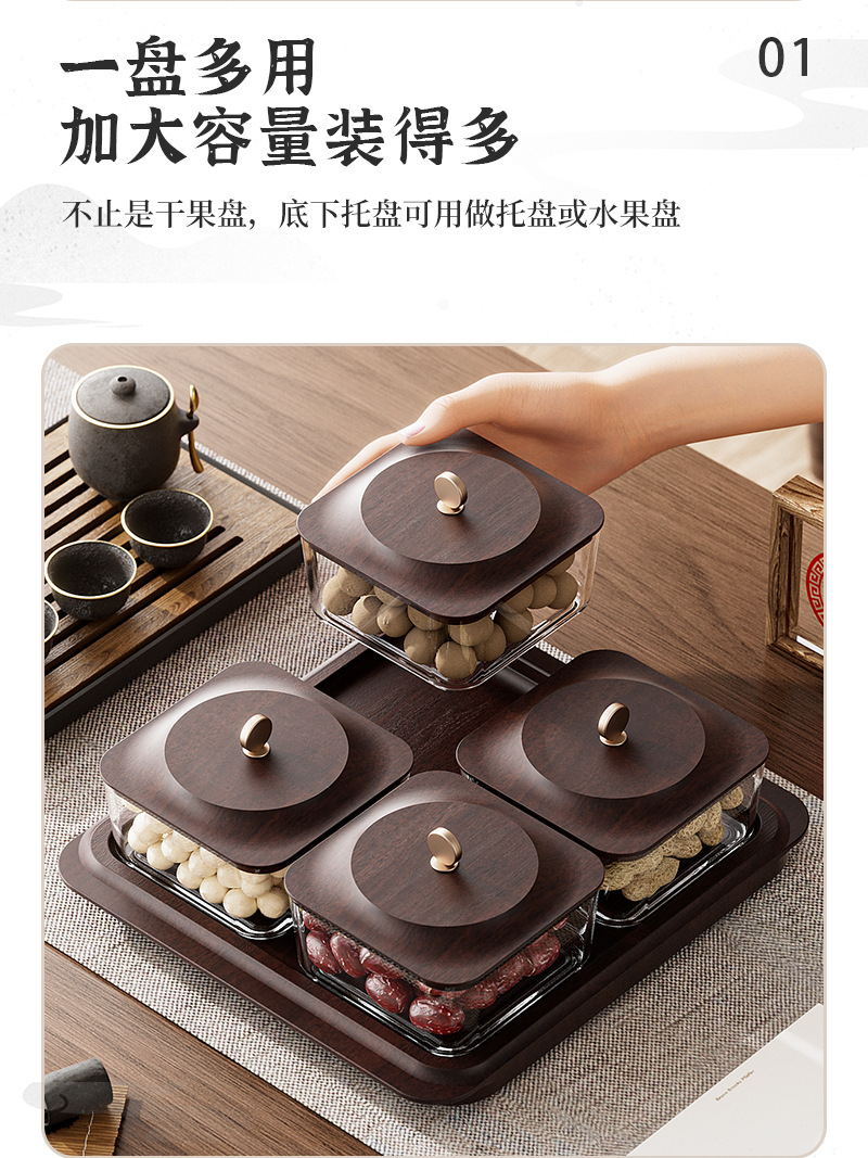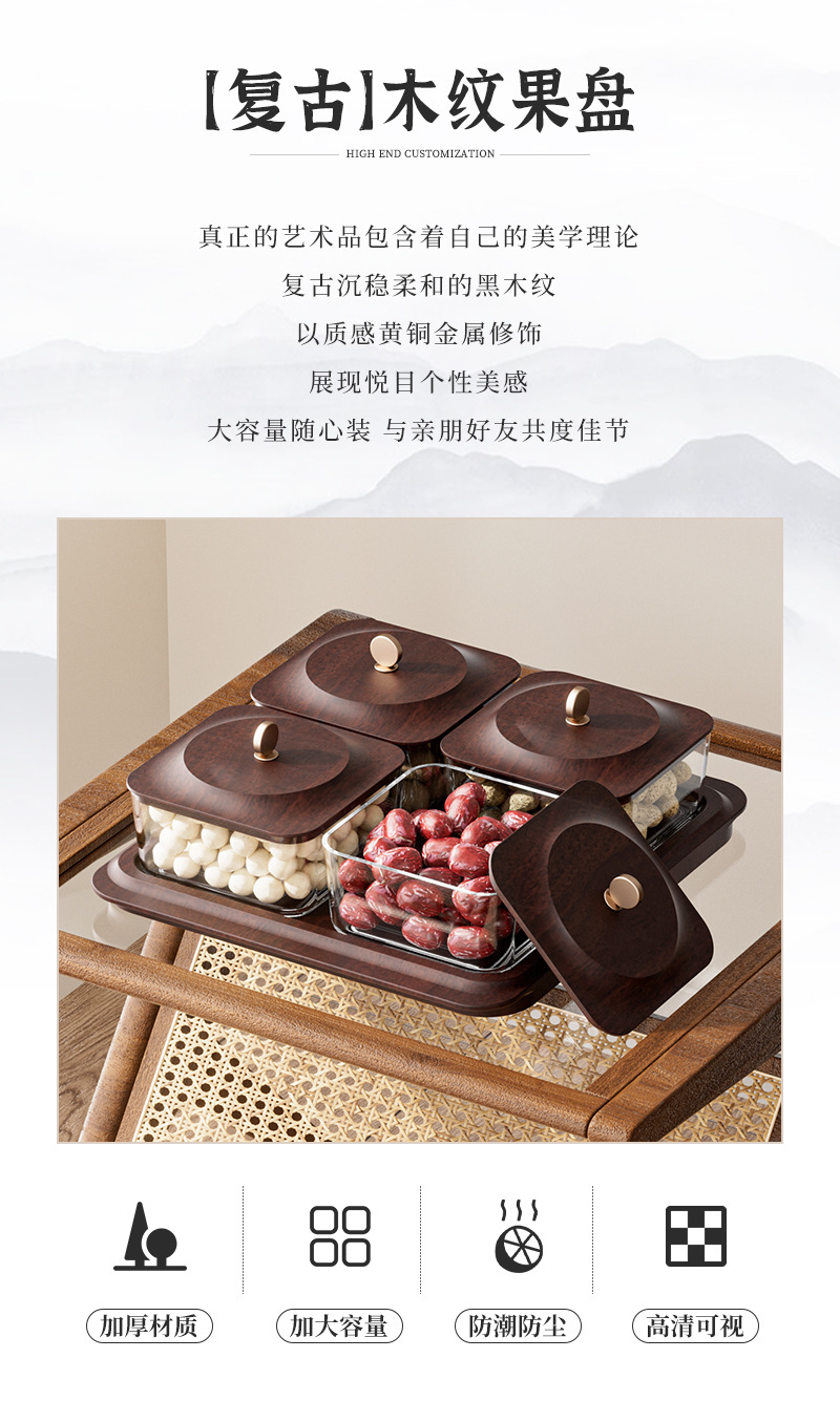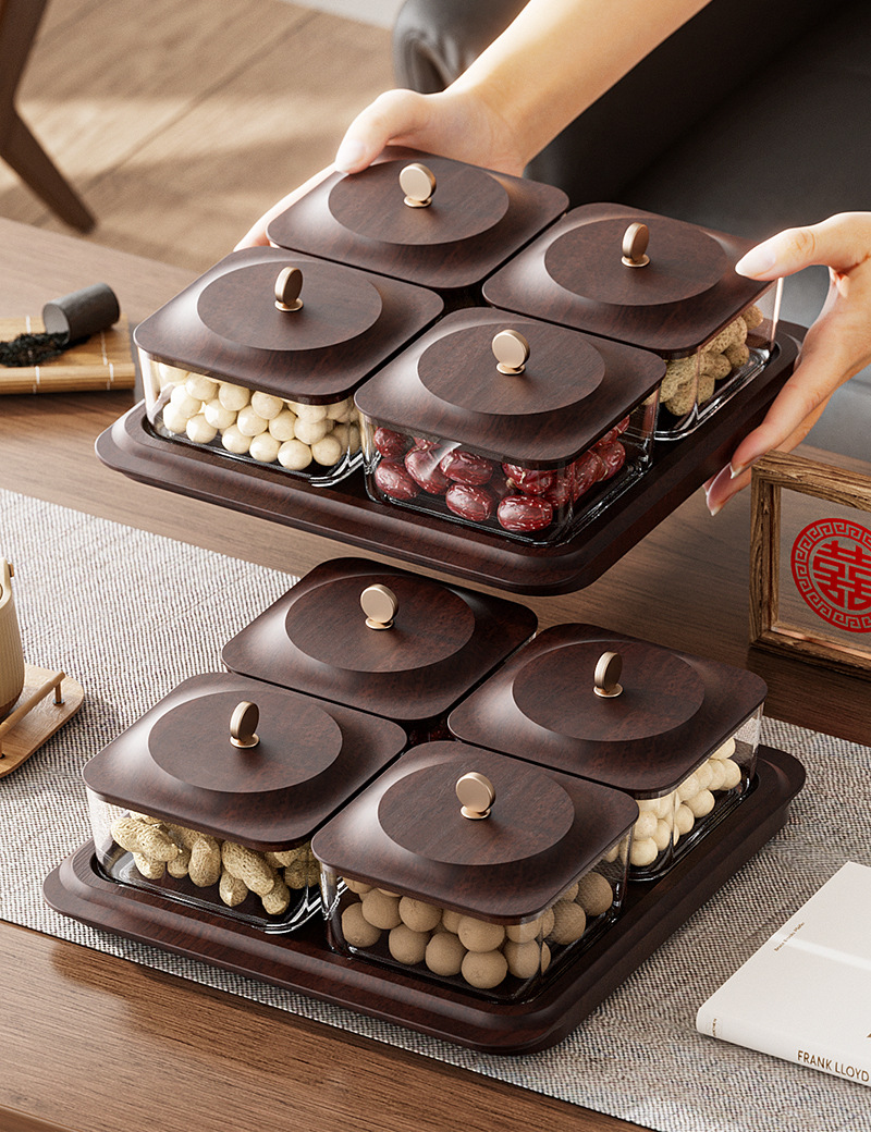 「高颜值!轻奢木纹干果盘」新款居家日用客厅茶几零食坚果糖果收纳整理盒水果盘