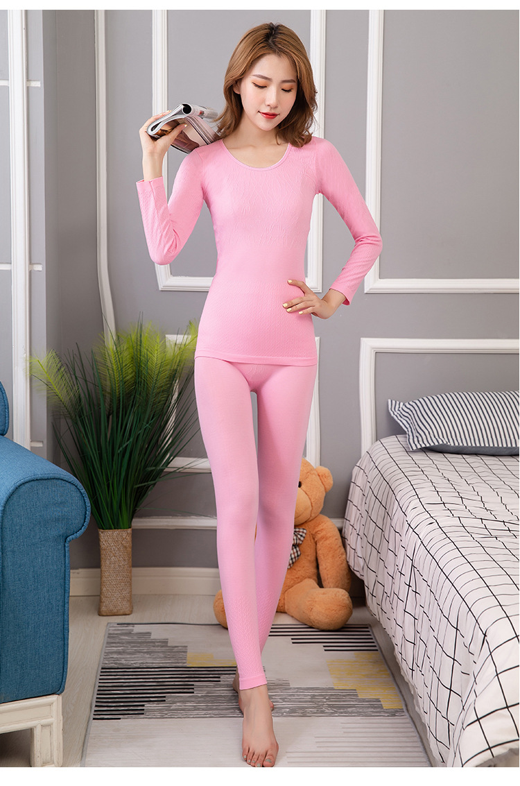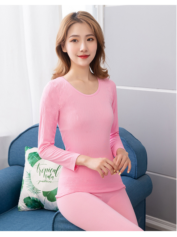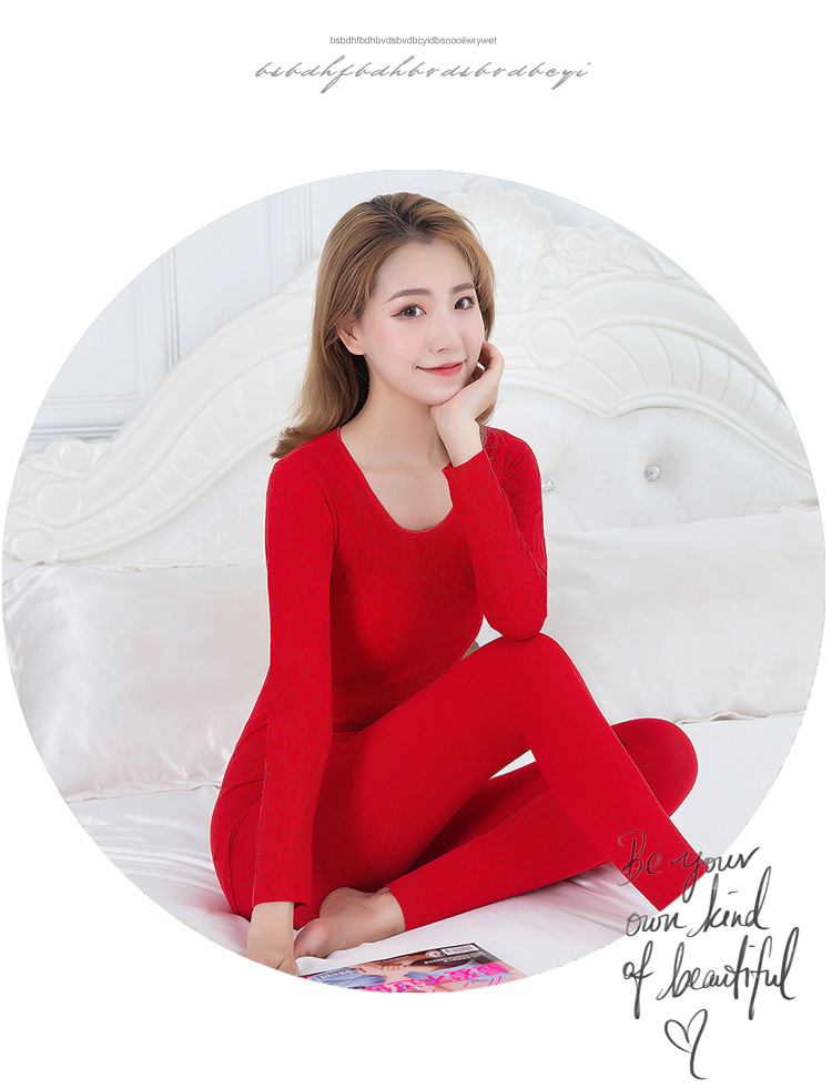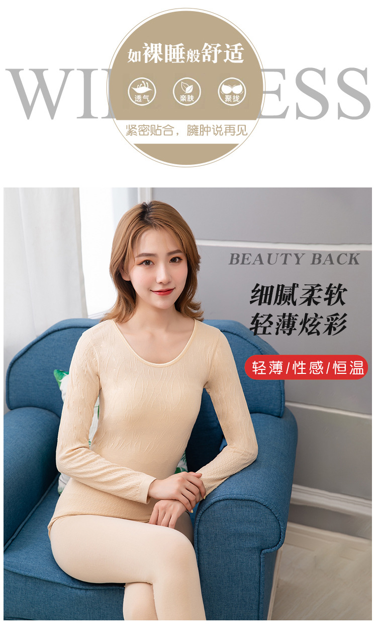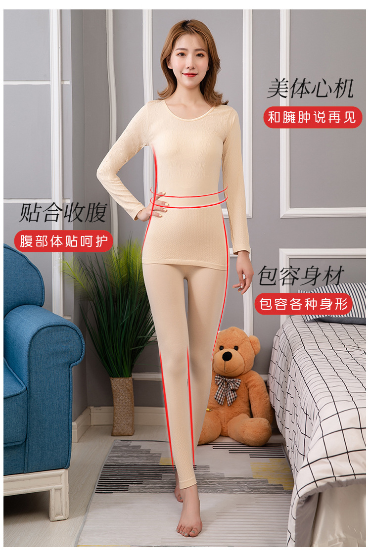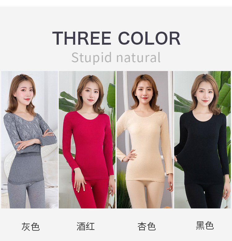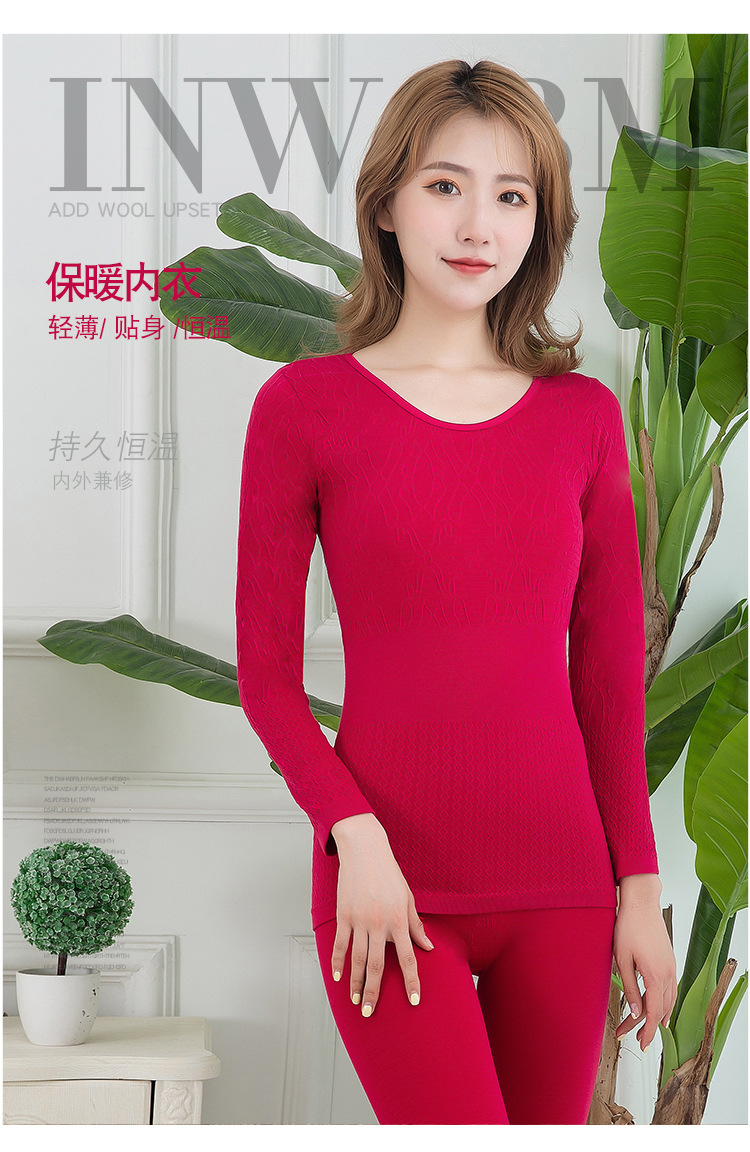 【双十一购物狂欢节 买即送同款内衣~拍一发二任选!!!】2021时尚新款秋冬季保暖内衣套装薄款女士无缝美体棉毛衫纯色圆领塑身