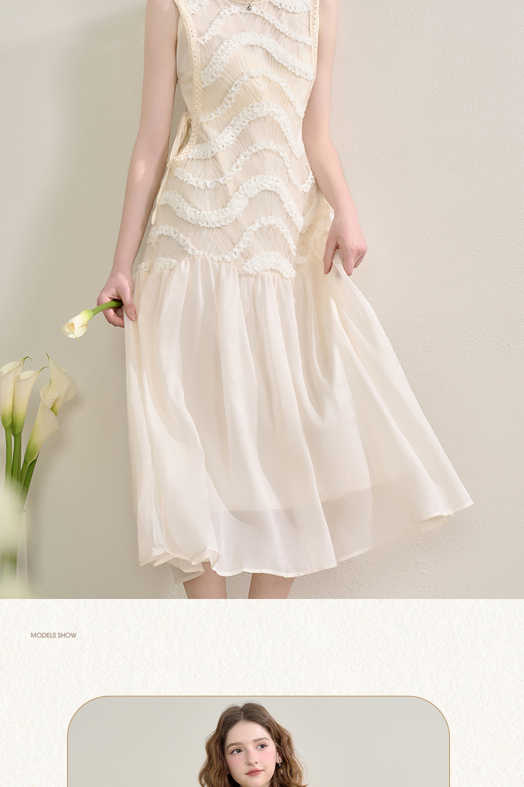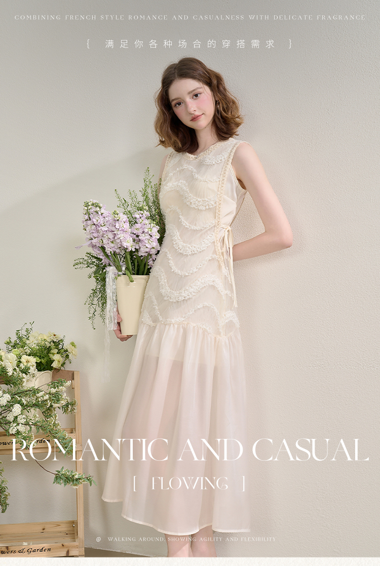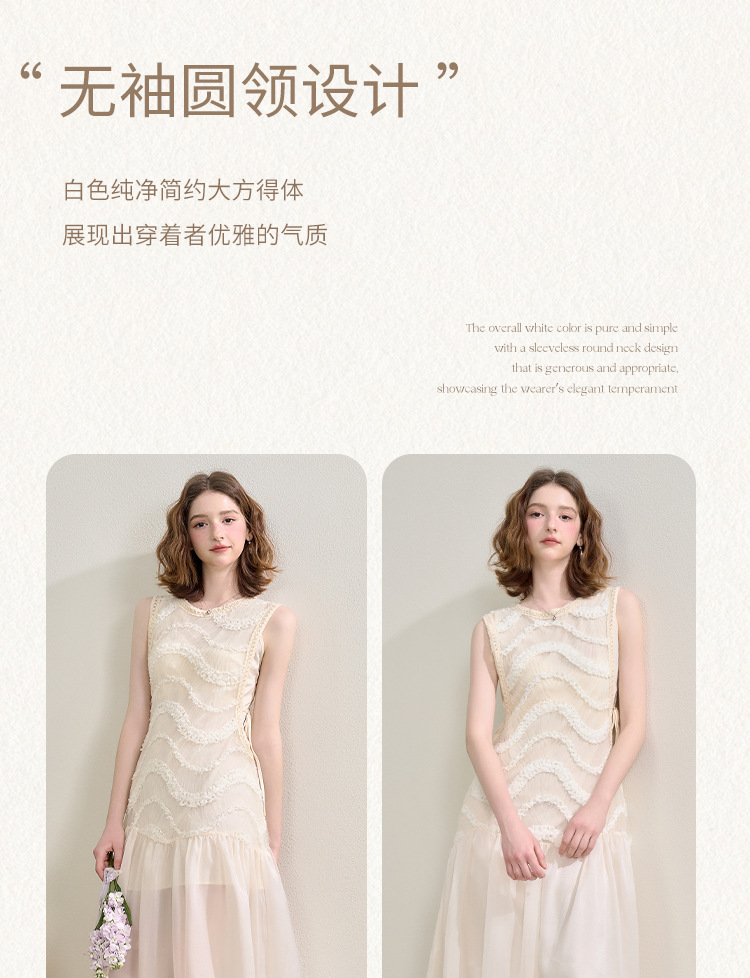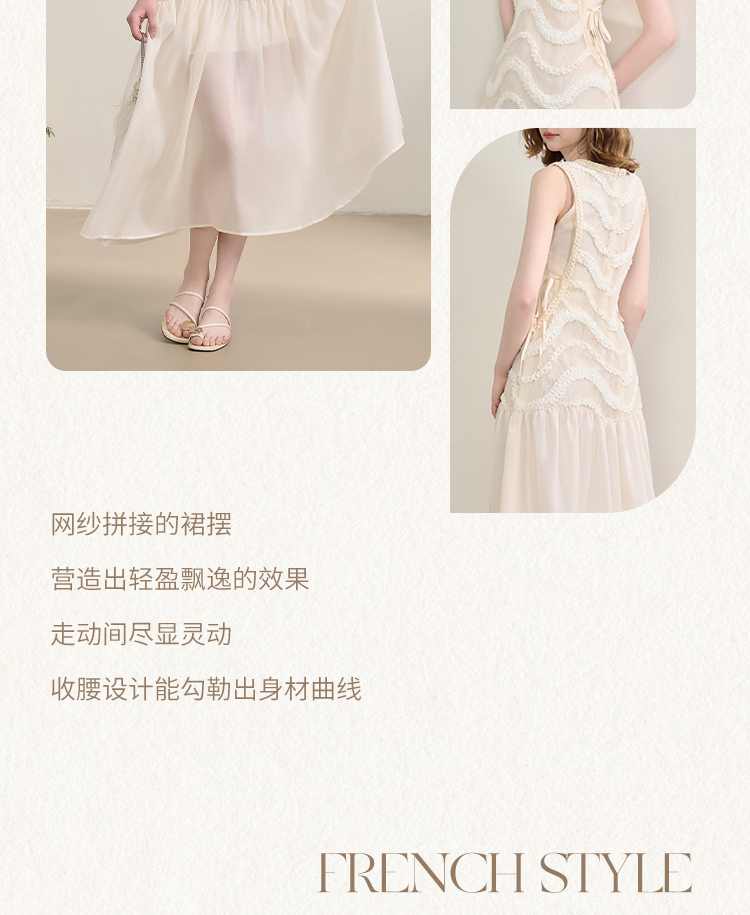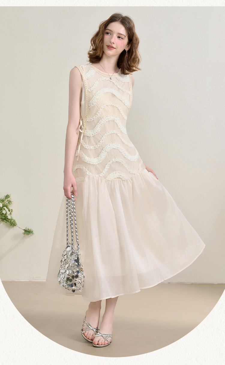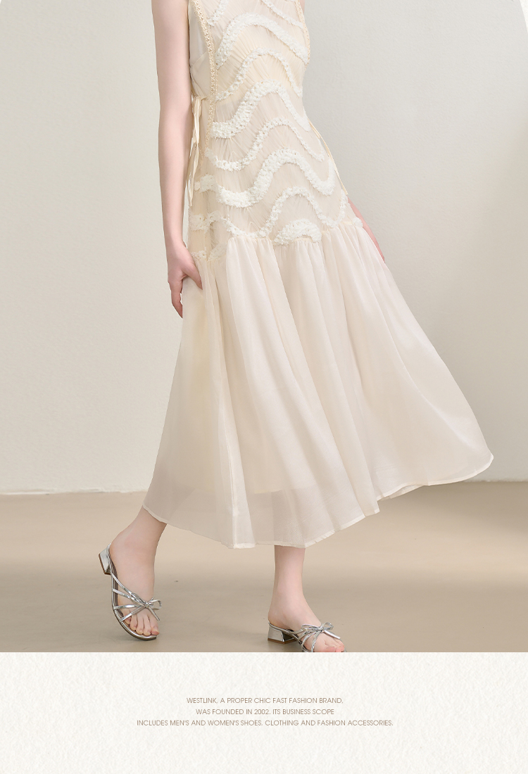 西遇拼接纱裙连衣裙女夏季新款设计感收腰法式a字白色长裙SS150332/SS150333
