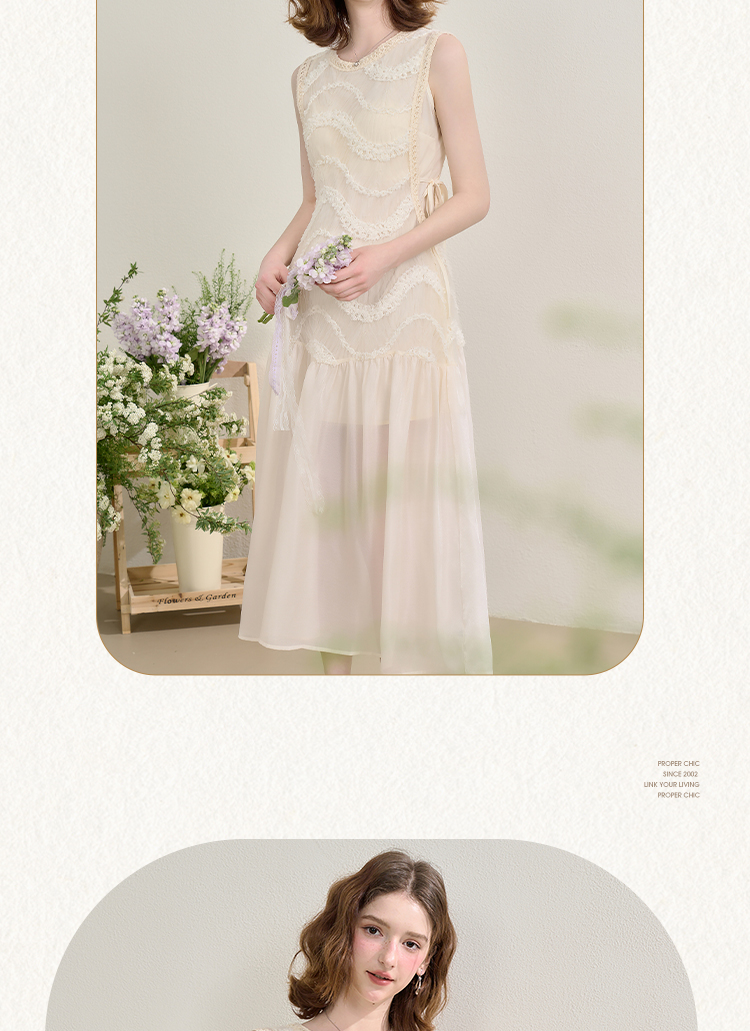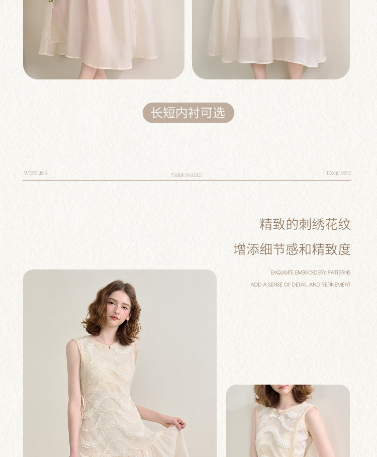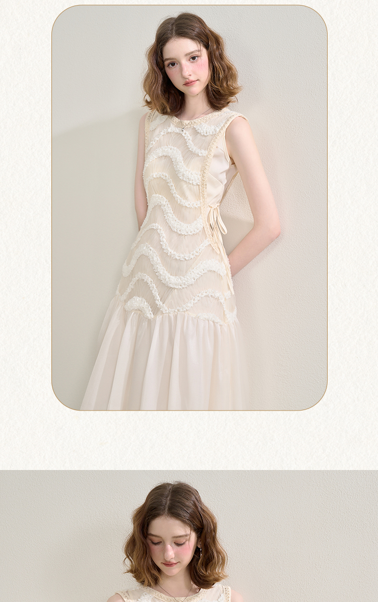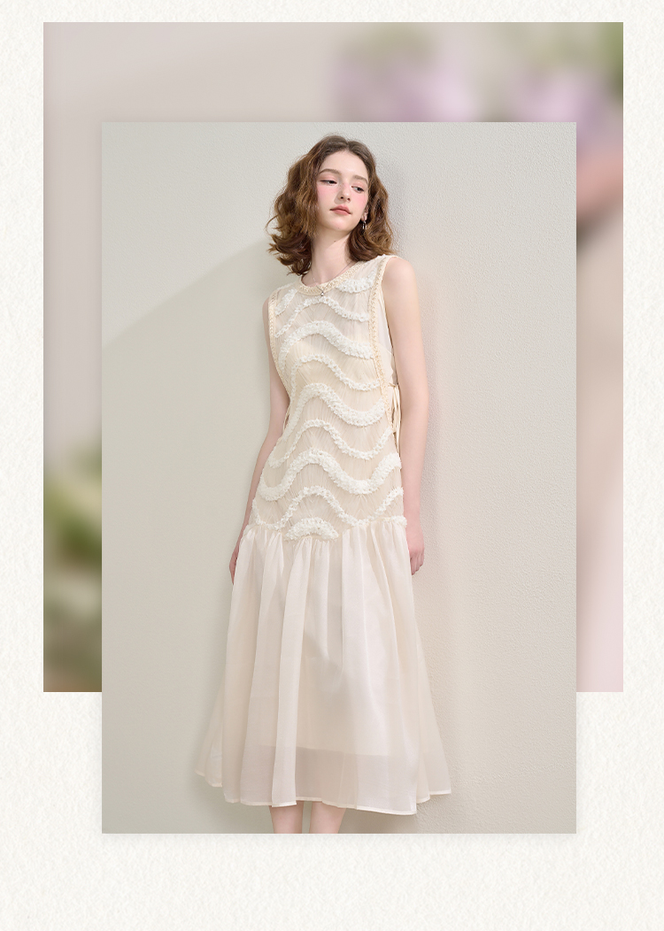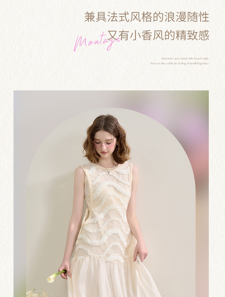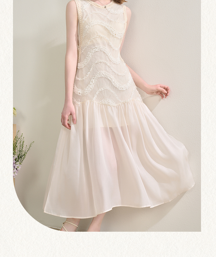 西遇拼接纱裙连衣裙女夏季新款设计感收腰法式a字白色长裙SS150332/SS150333