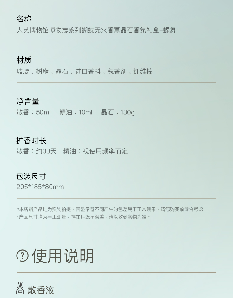 大英博物馆 博物志系列 蝴蝶无火香薰晶石香氛礼盒 蝶舞