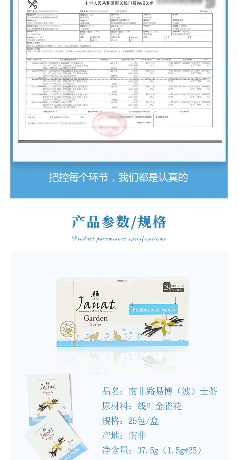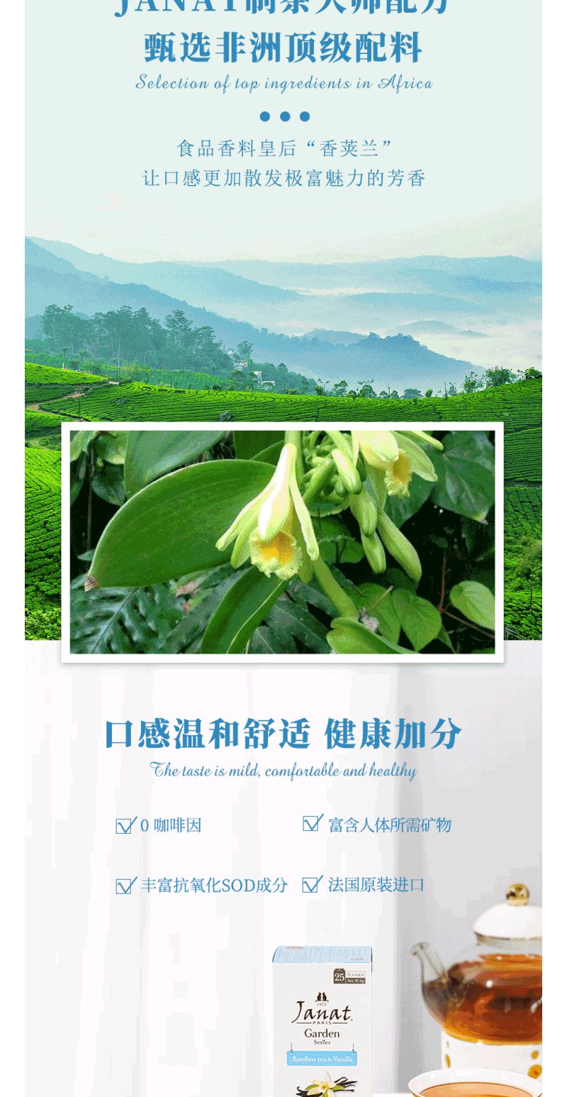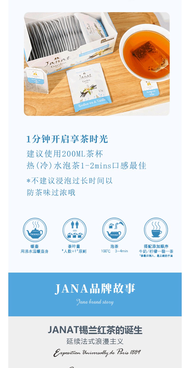 Janat路易博士茶法国品牌原装进口香荚兰口味口感醇厚25小包盒装