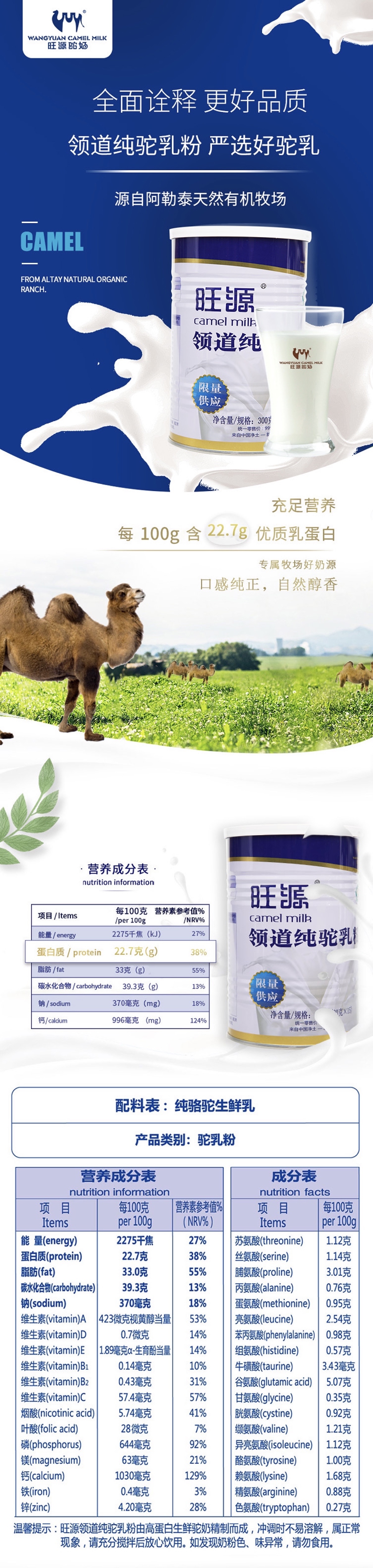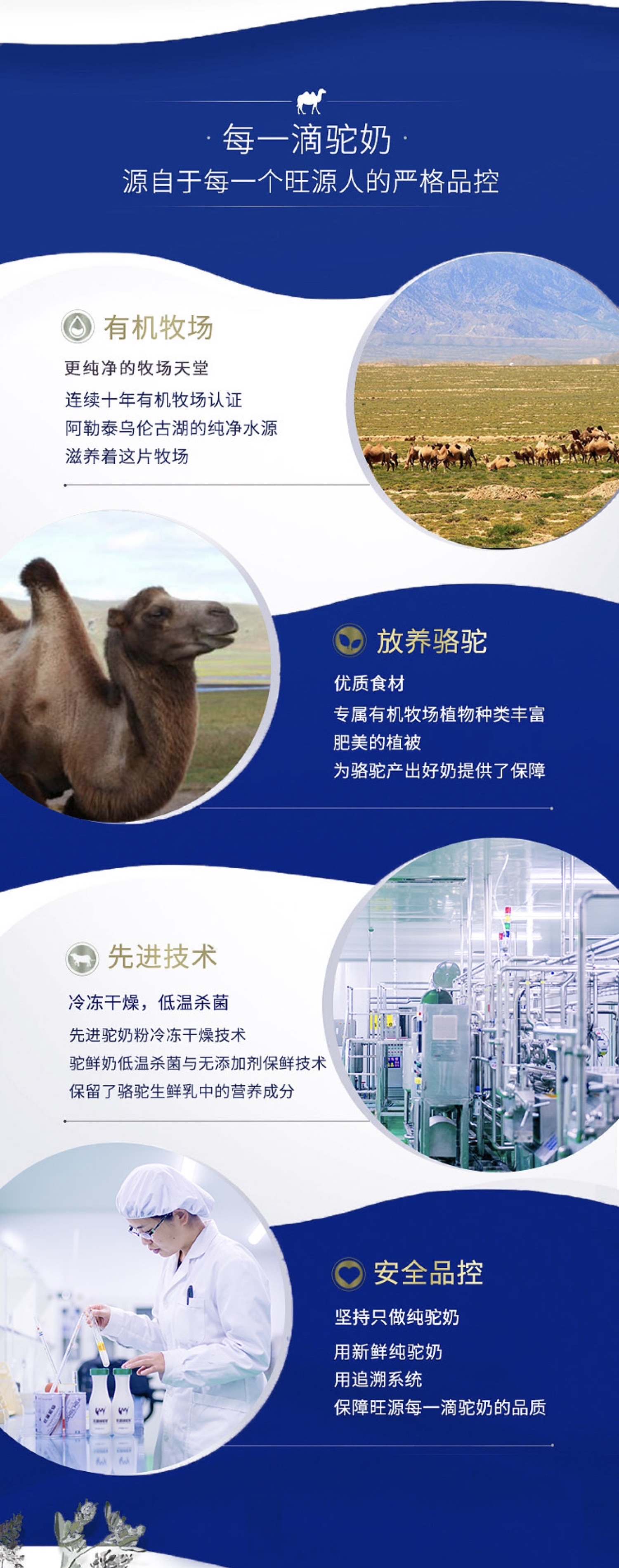 领道纯驼乳粉:领道驼乳粉属于初乳性质的奶源,是母驼产犊后10天内分泌的乳汁。