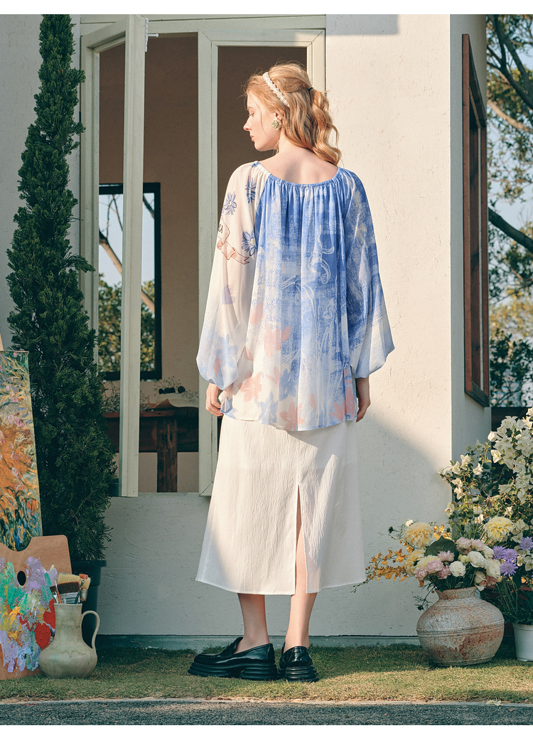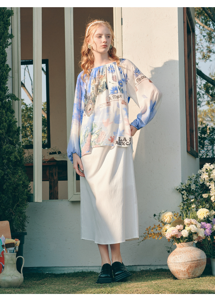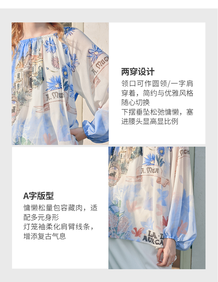 两三事菡萏碎影 夏季新款甜美荷叶边拼接薄款长袖衬衫女宽松