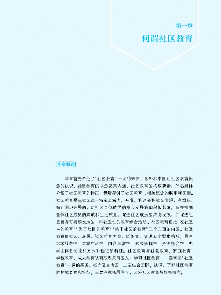 “社区教育”是《教师教育课程标准》中要求的必设课程,对师范生的培养影响较大。《社区教育》一书出版后,引起了很大反响,在此基础上,第2版根据近年来社区教育的发展以及国内外的新近研究成果进行修订,以“大教育”的内在逻辑与“人人可教、处处可学”的现代教育理念为引领,在系统构建社区教育理论框架的同时,有机融入服务社会、扎根基层的思政元素,引导学生将个人成长与国家推动学习型社会建设的战略需求相结合,深入理解社区教育在促进教育公平、增强社区凝聚力、推动终身学习体系形成等方面的时代意义。在此基础上,激励学生在教育实践中主动担当和积极作为,深化对社会主义核心价值观的认同与践行。