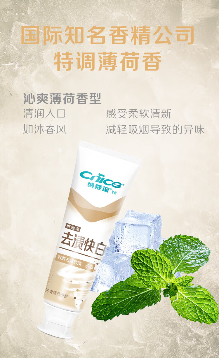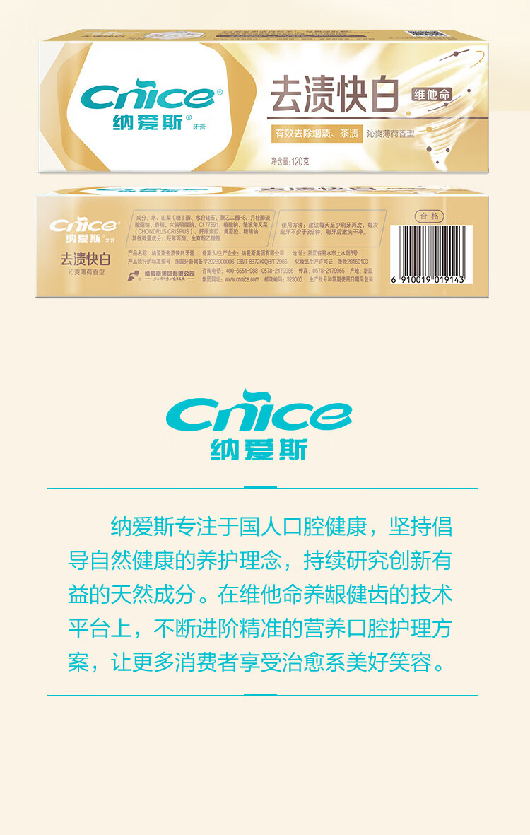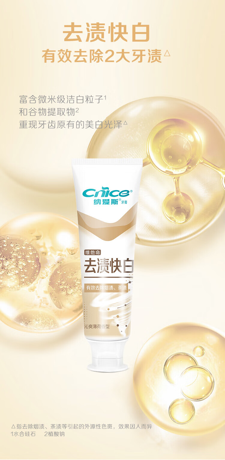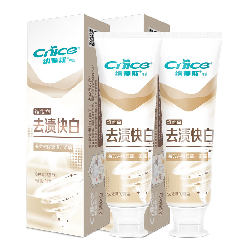 纳爱斯维他命去渍快白牙膏120克有效去除烟渍茶渍清洁牙齿 120克*2支
