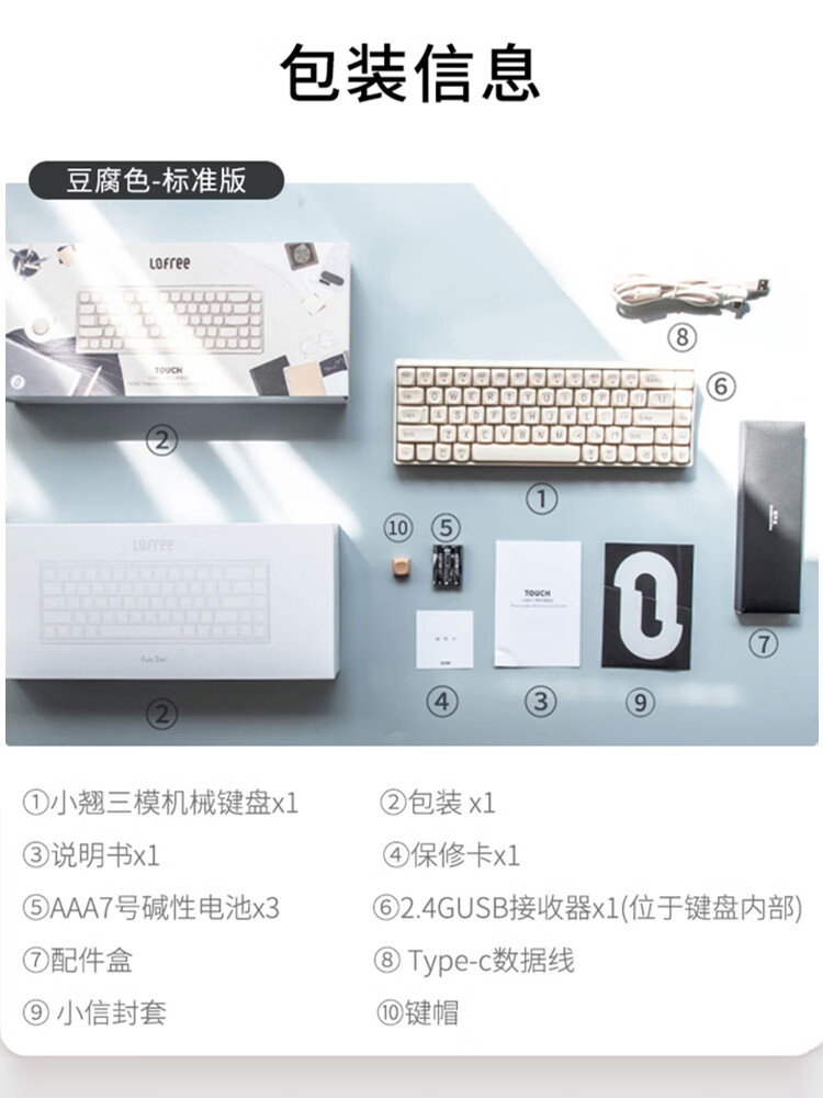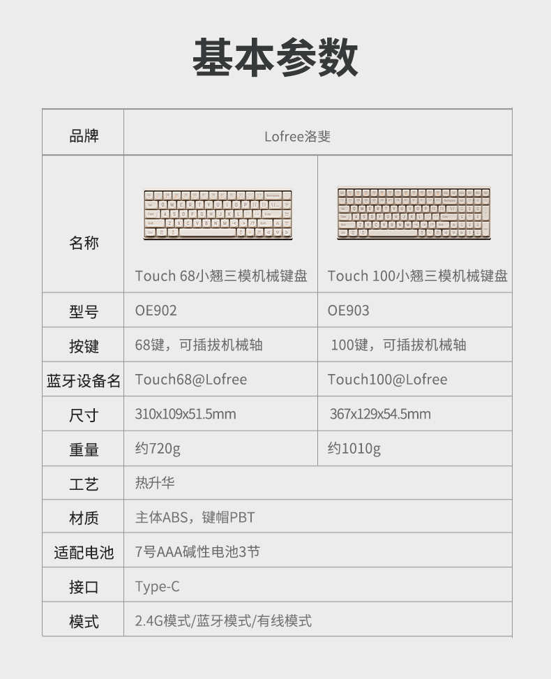 洛斐LOFREE OE903小翘100三模机械键盘-豆腐