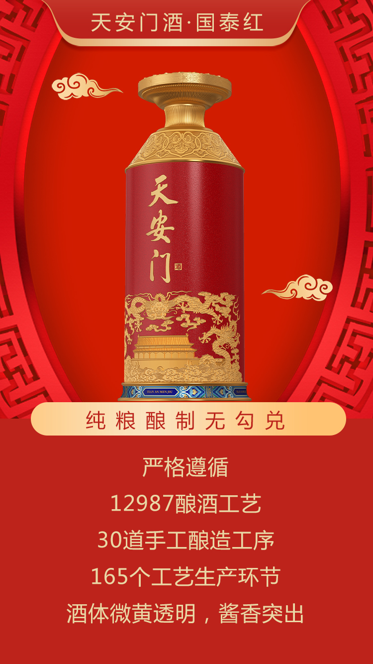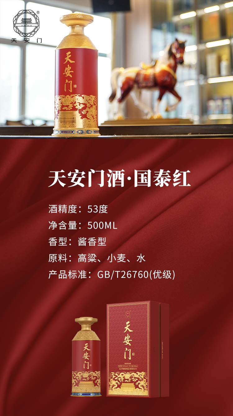 【自营】天安门国泰红纯粮酒酱香型白酒53度500ml整箱装 53度 500mL 6瓶 礼盒装送礼收藏 HJ