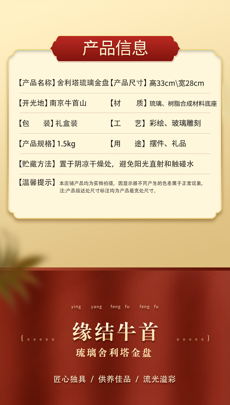 牛首山文创舍利大塔琉璃金盘祈福摆件佛顶寺纪念