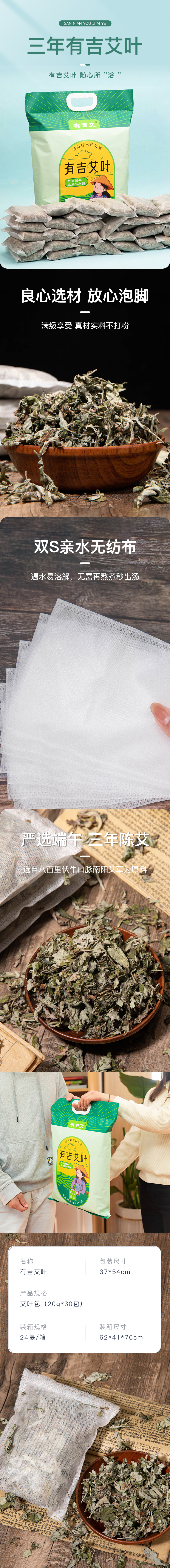 有吉艾叶 家用养生泡脚 采用三年陈艾 袋装20g*30包 独立小包装 纯艾叶