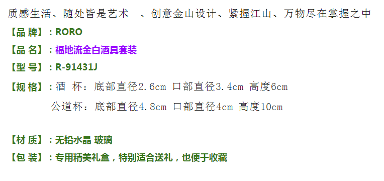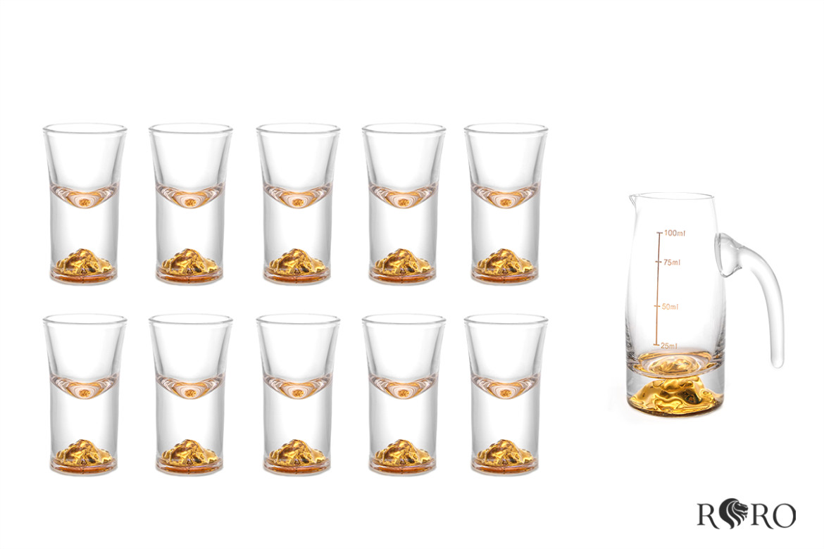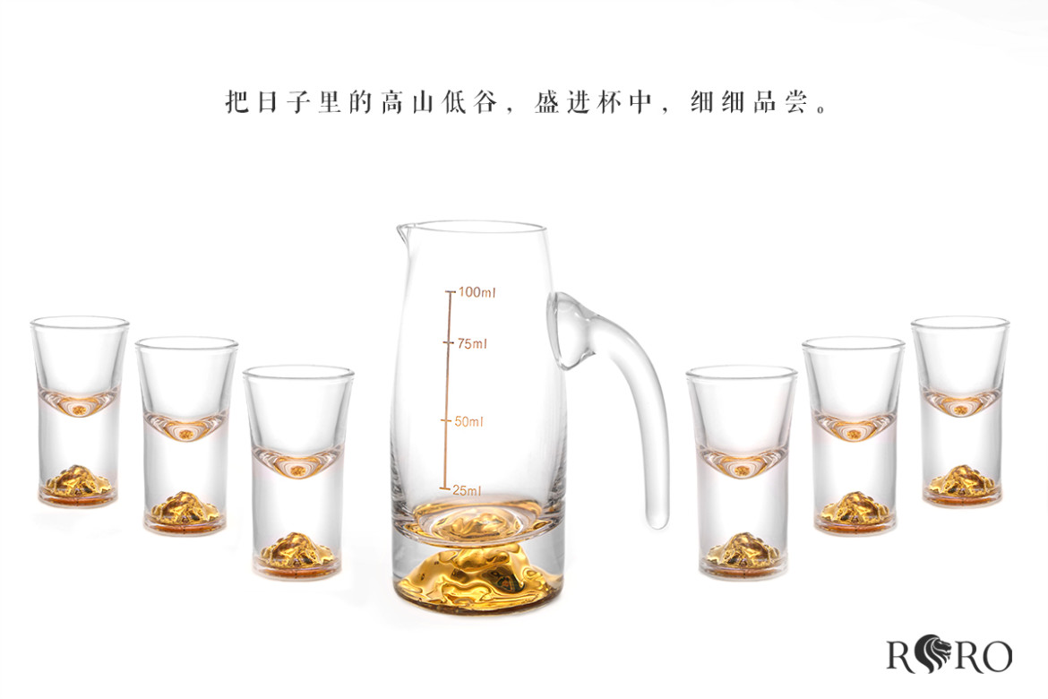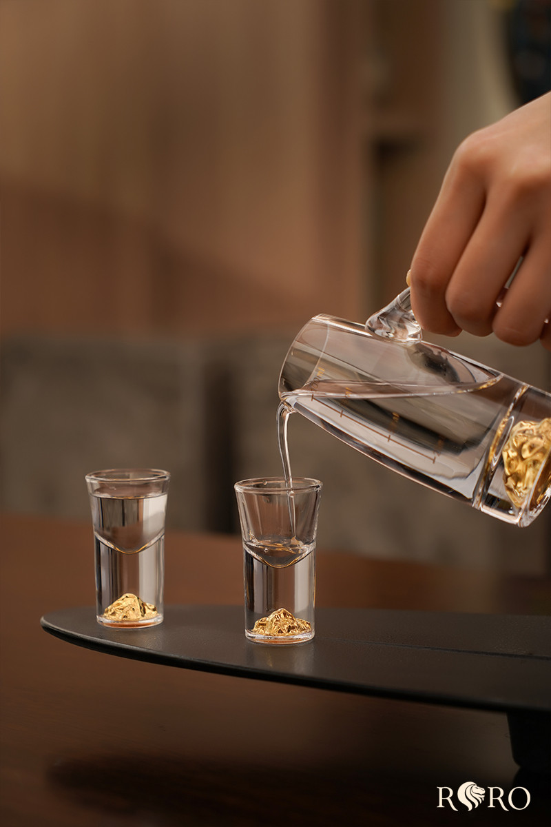 【特惠6折,仅1套,无货退款】罗比罗丹福地流金白酒酒具套装(10杯10壶)乔迁送朋友家居礼品