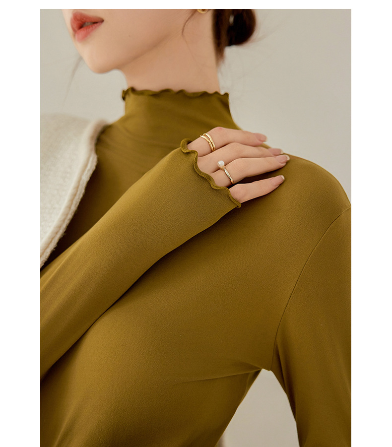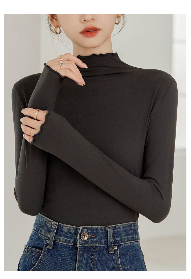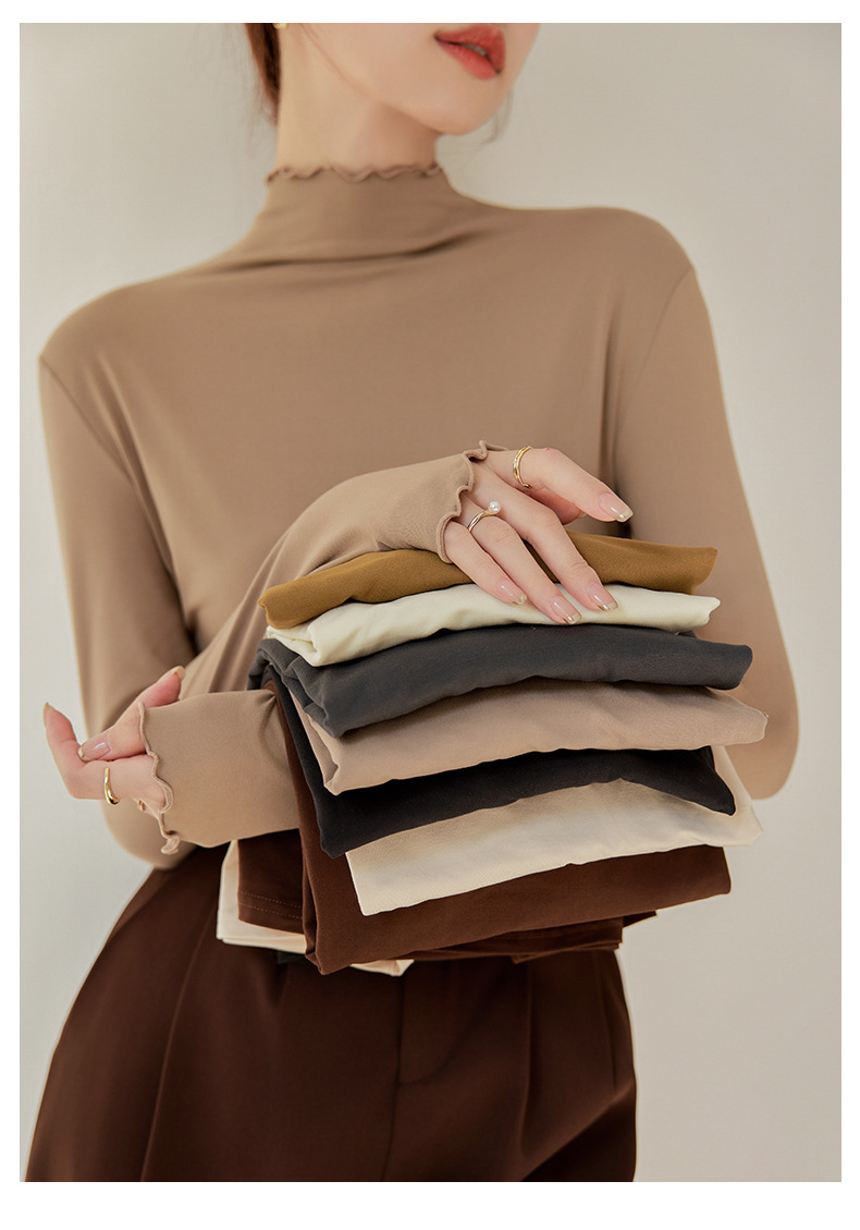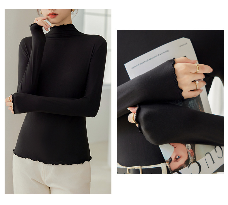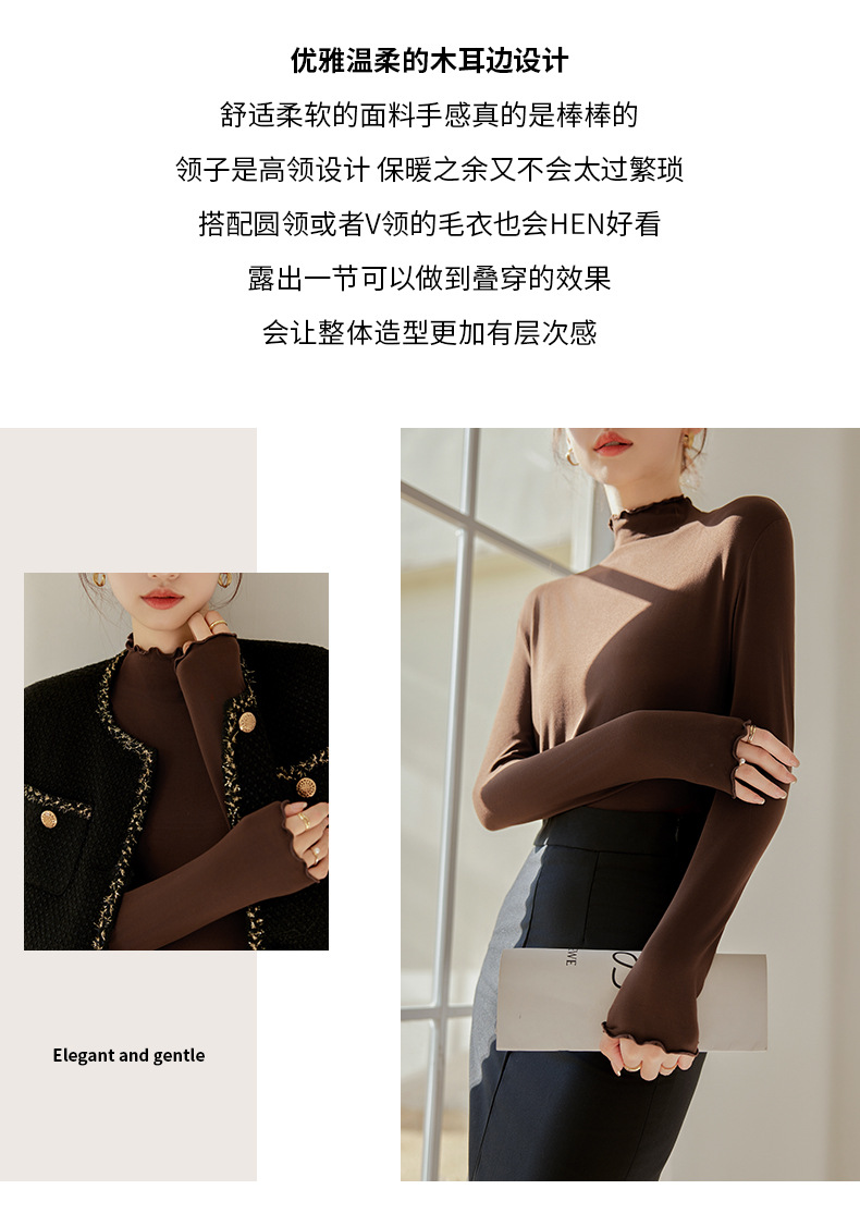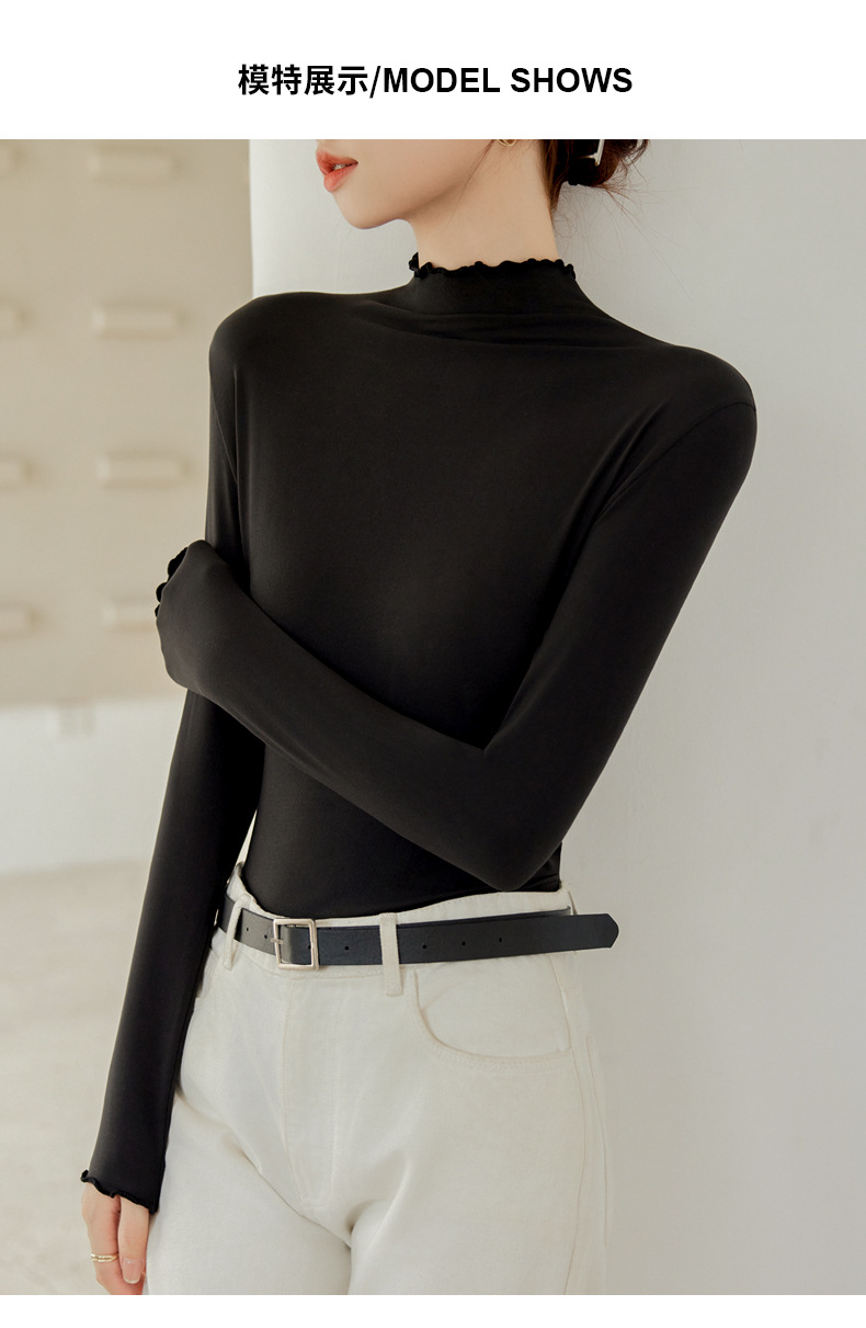 买一送一 半高领内搭秋冬女装木耳边打底衫女弹力舒适保暖修身上衣长袖无束缚感,舒适,柔软,不紧绷