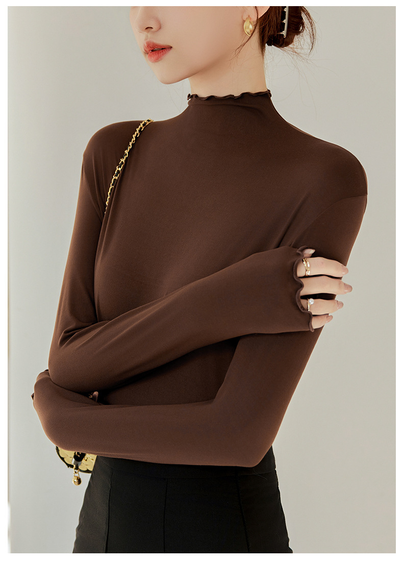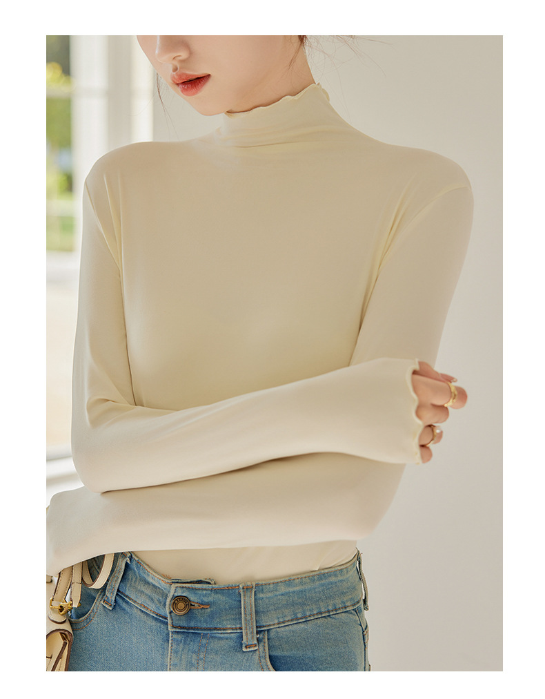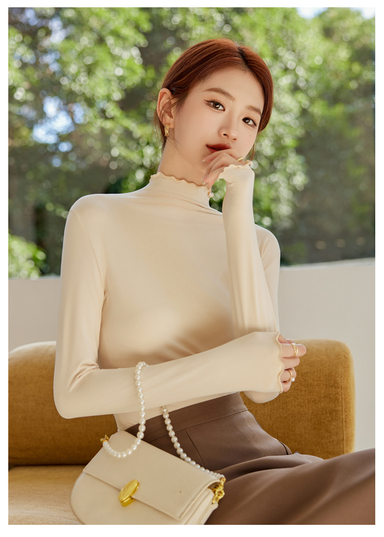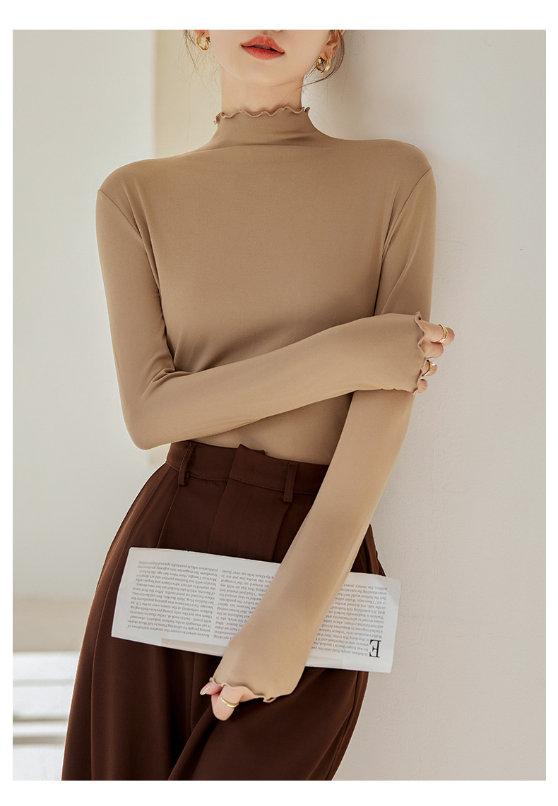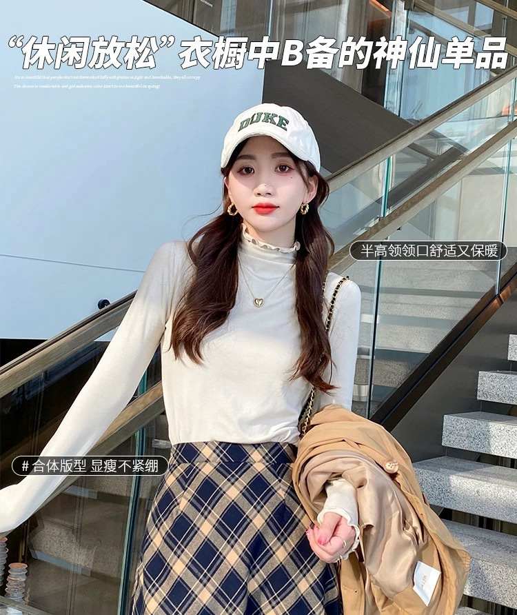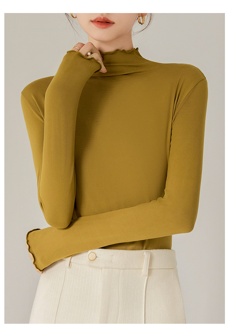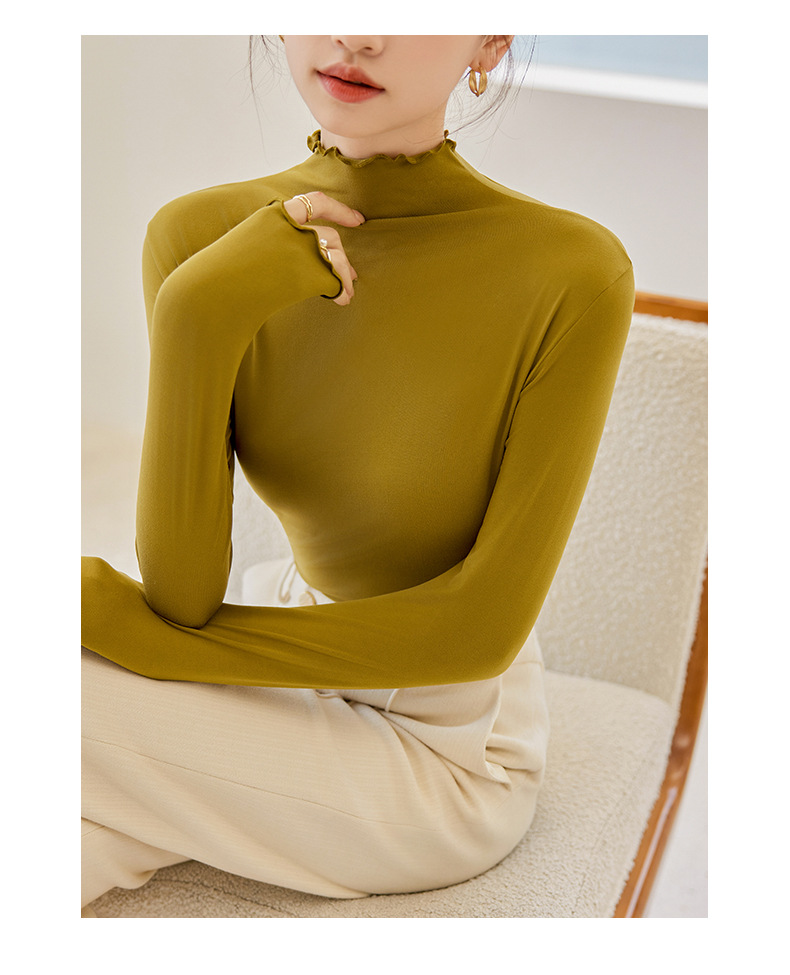 买一送一 半高领内搭秋冬女装木耳边打底衫女弹力舒适保暖修身上衣长袖无束缚感,舒适,柔软,不紧绷