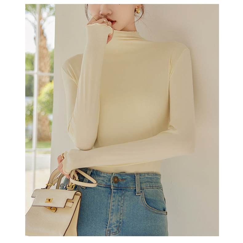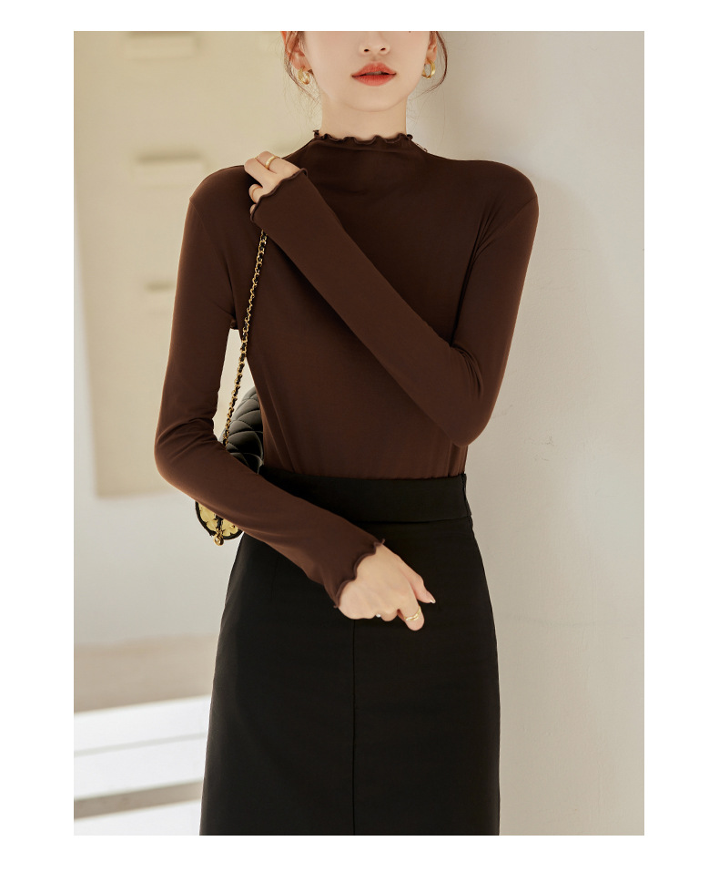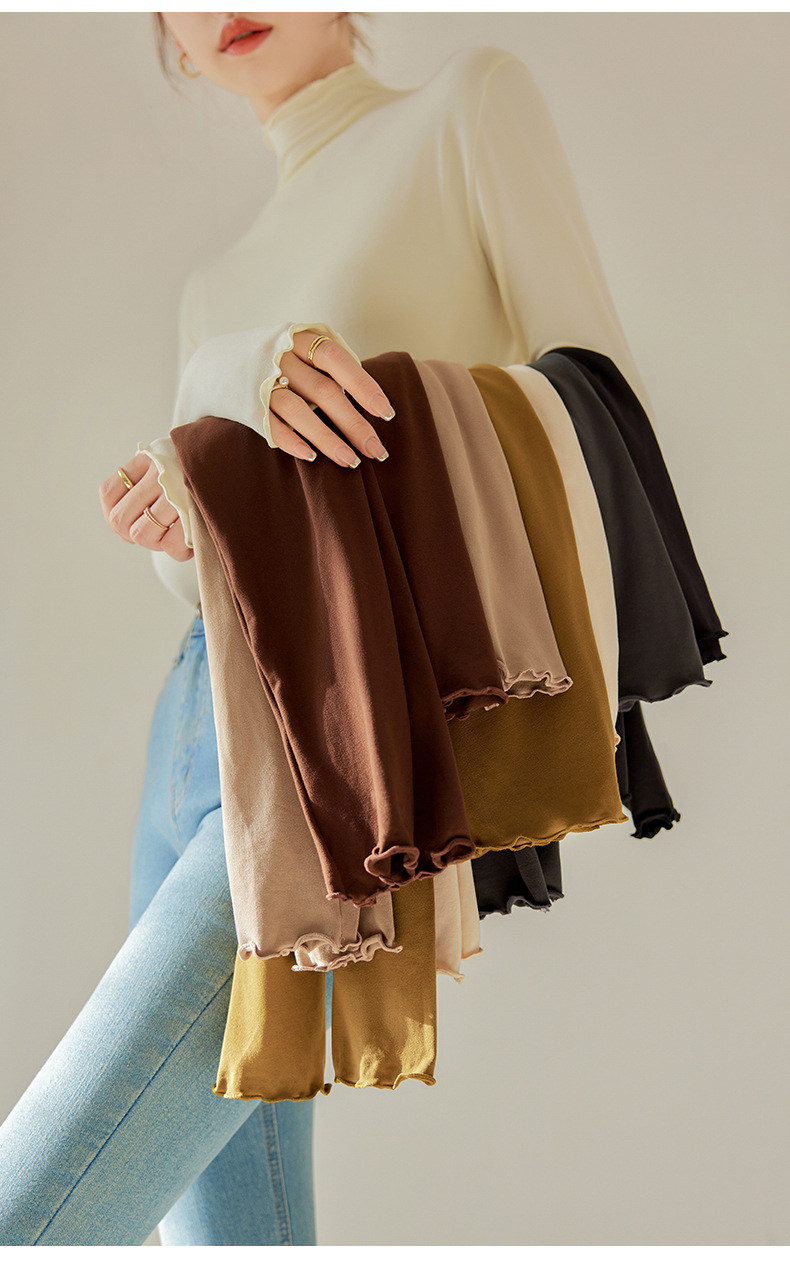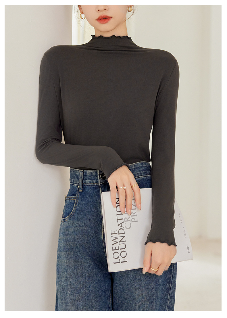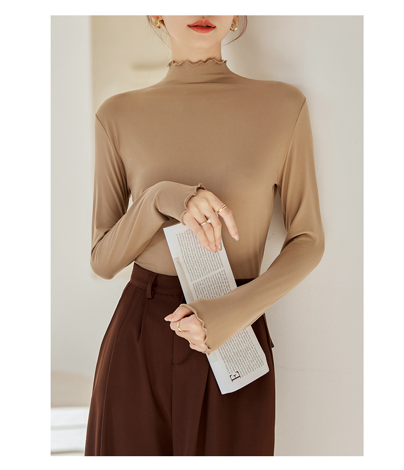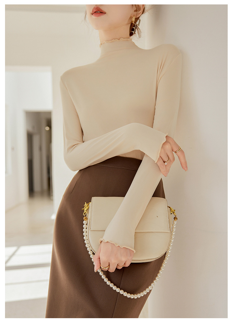 买一送一 半高领内搭秋冬女装木耳边打底衫女弹力舒适保暖修身上衣长袖无束缚感,舒适,柔软,不紧绷