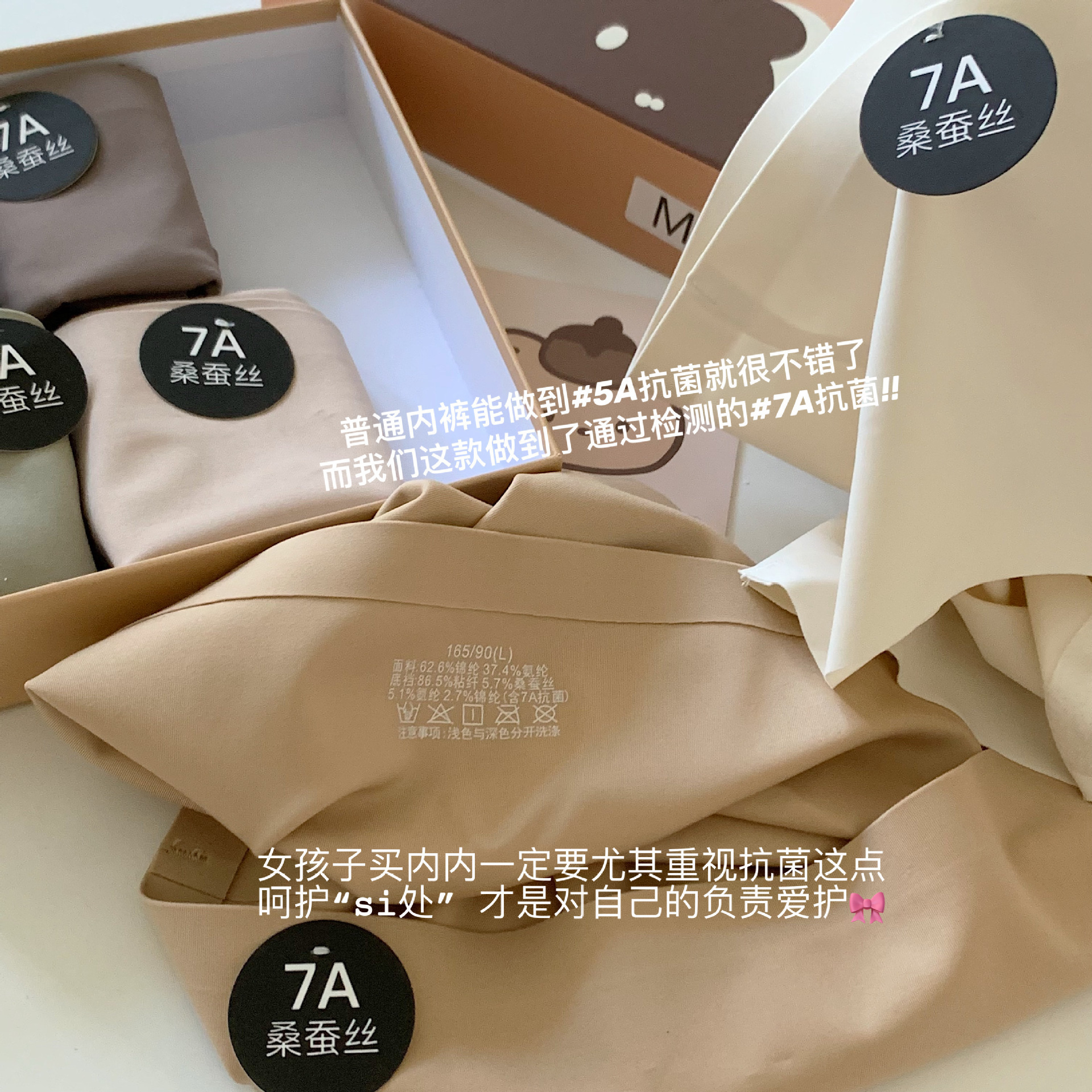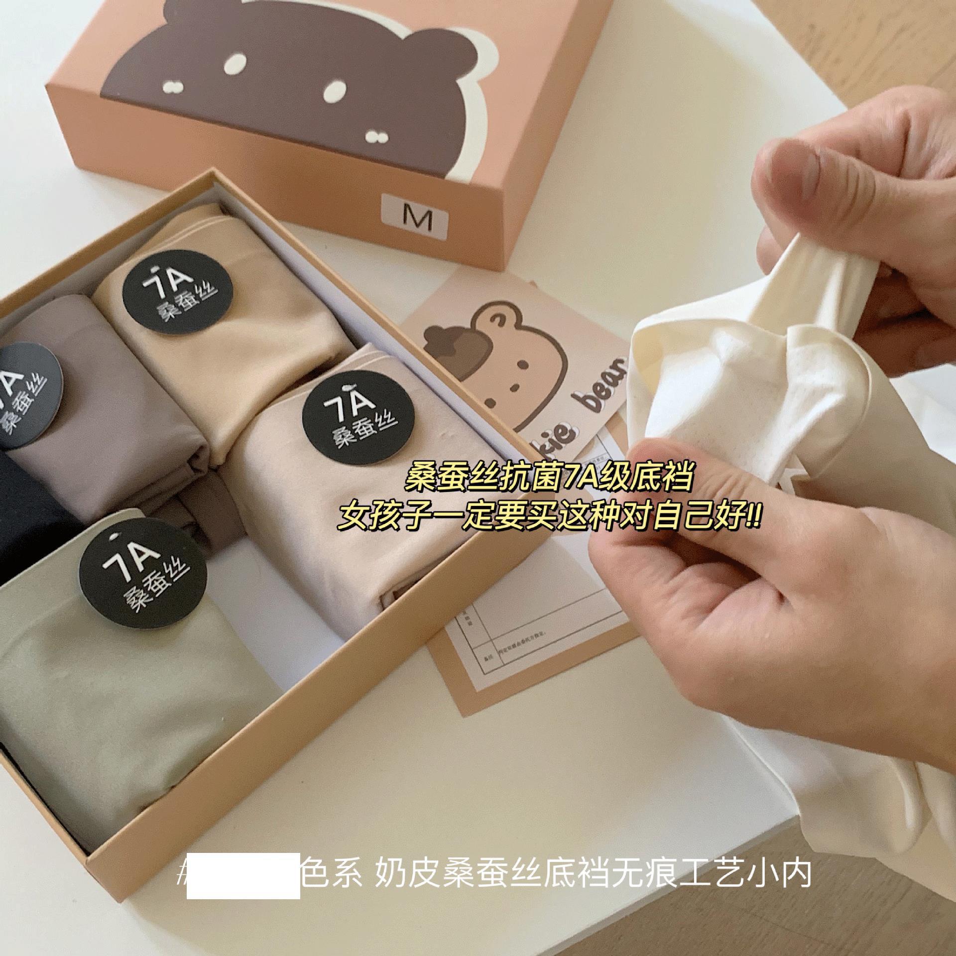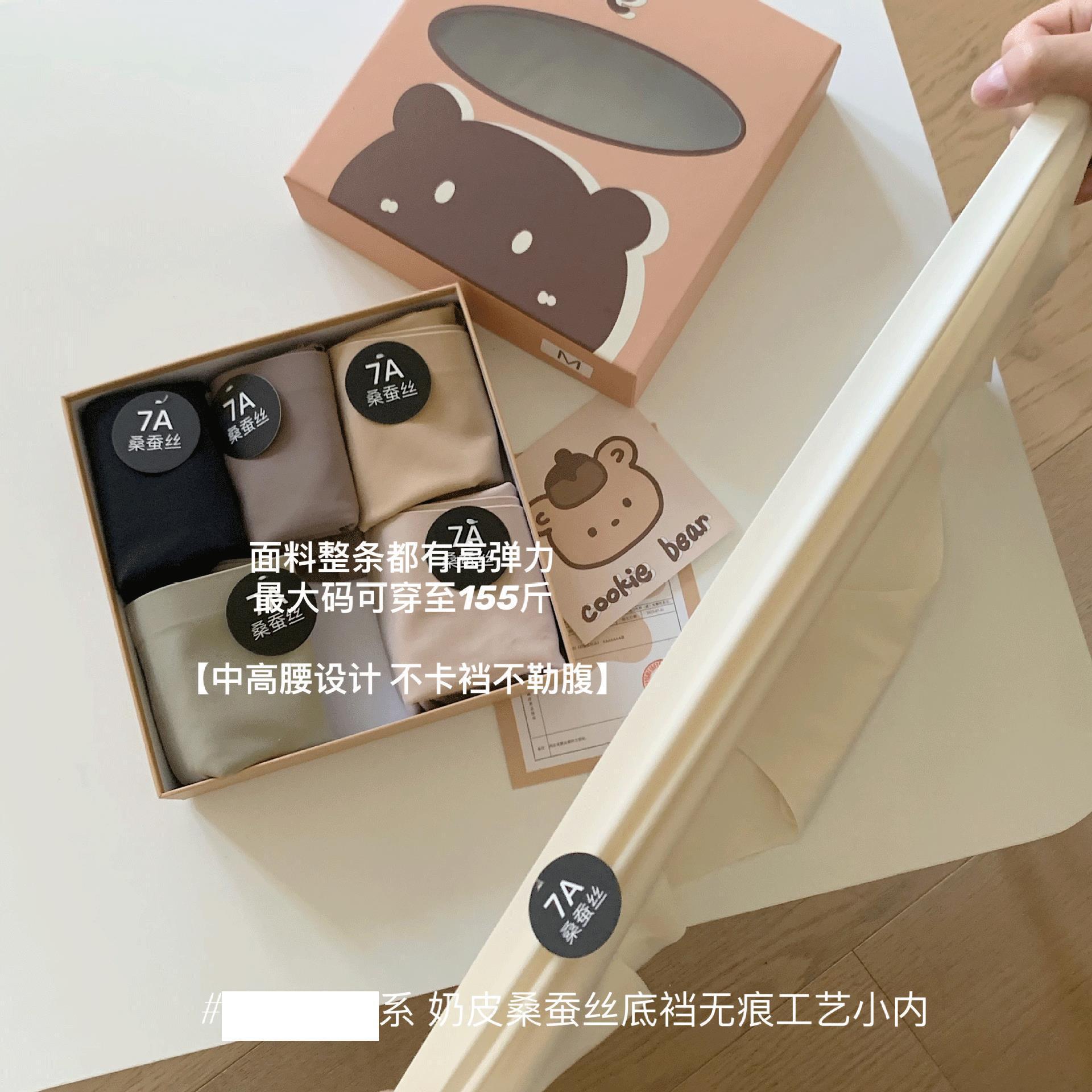 「29.9到手!6条礼盒装」7A桑蚕丝底裆内裤 贴身舒适亲肤无痕小熊中高腰女士三角裤头内衣裤