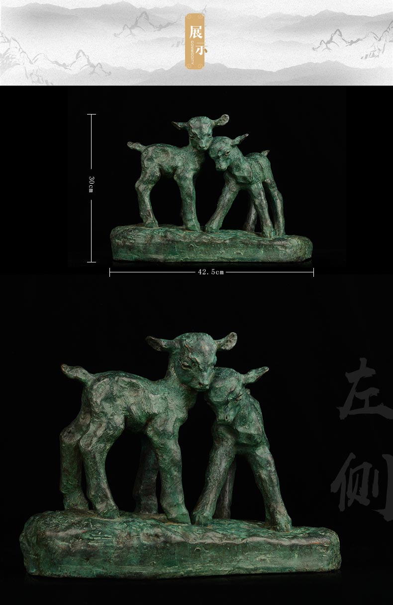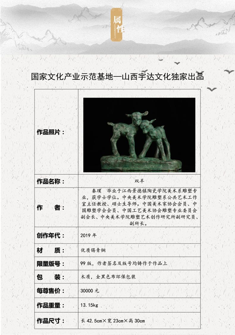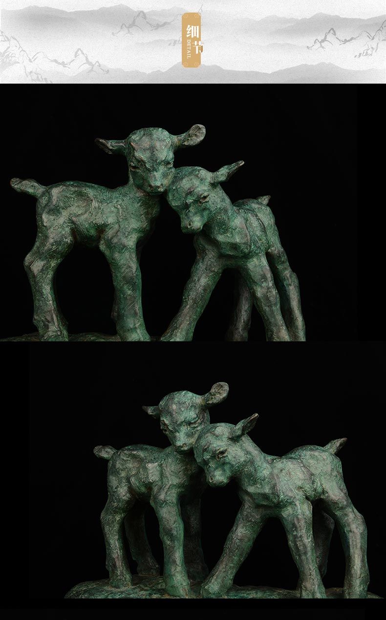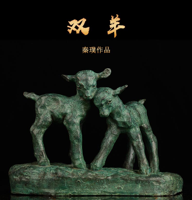 宇达青铜全铜摆件 秦璞作品《双羊》限量99版 艺术装饰摆件 高30cm