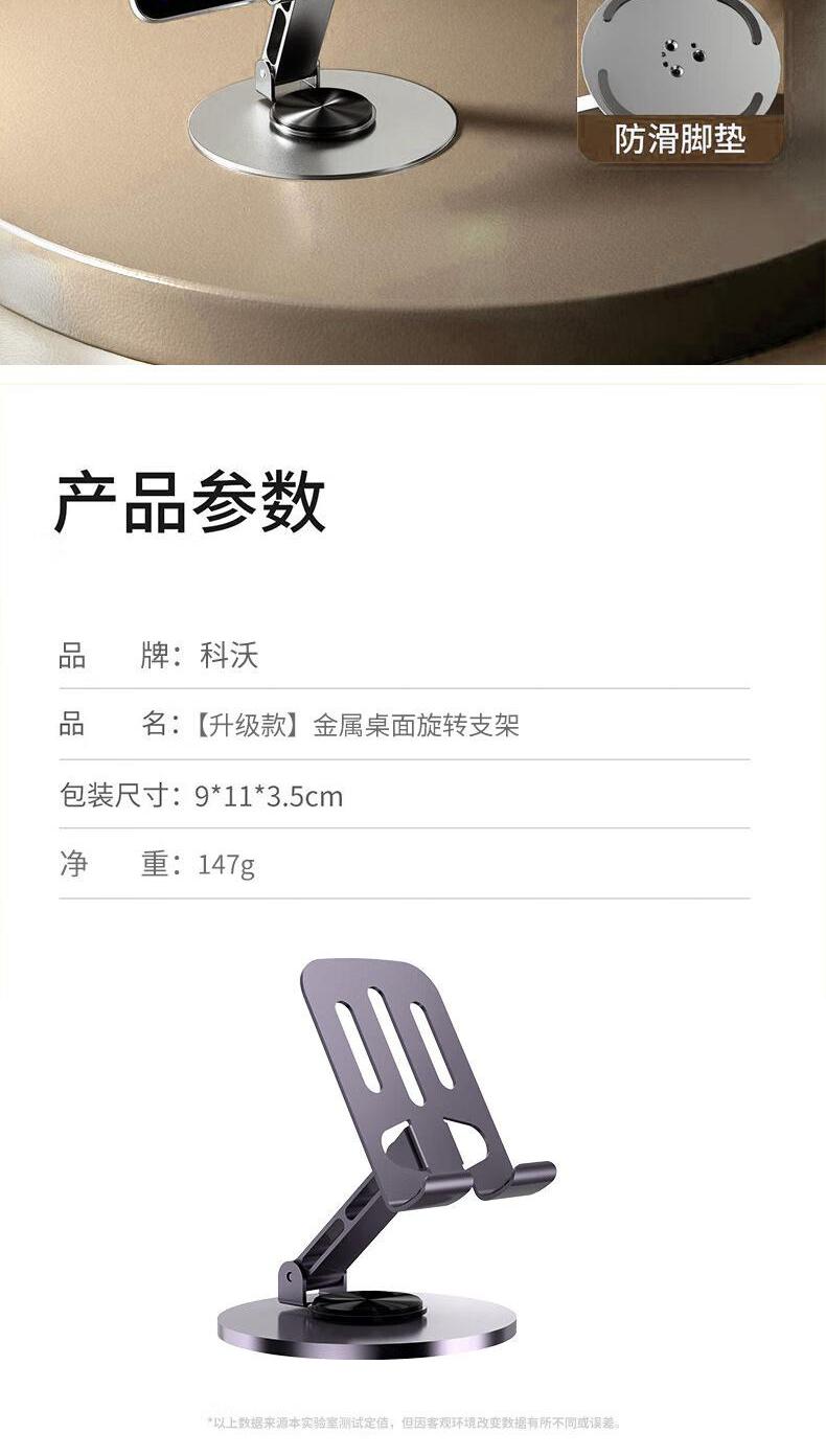 科沃ZJ04金属碳素钢桌面旋转手机支架360度旋转碳素钢耐用多型手机