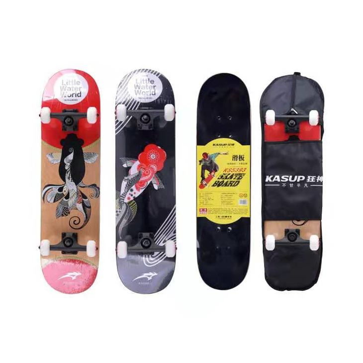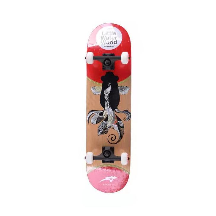 简介:7层东北枫板材,底部热转印图案,表面超强纸滑布,加强烤漆铝合金支架,PU车线轮,PU灌注避震,安全性能高。