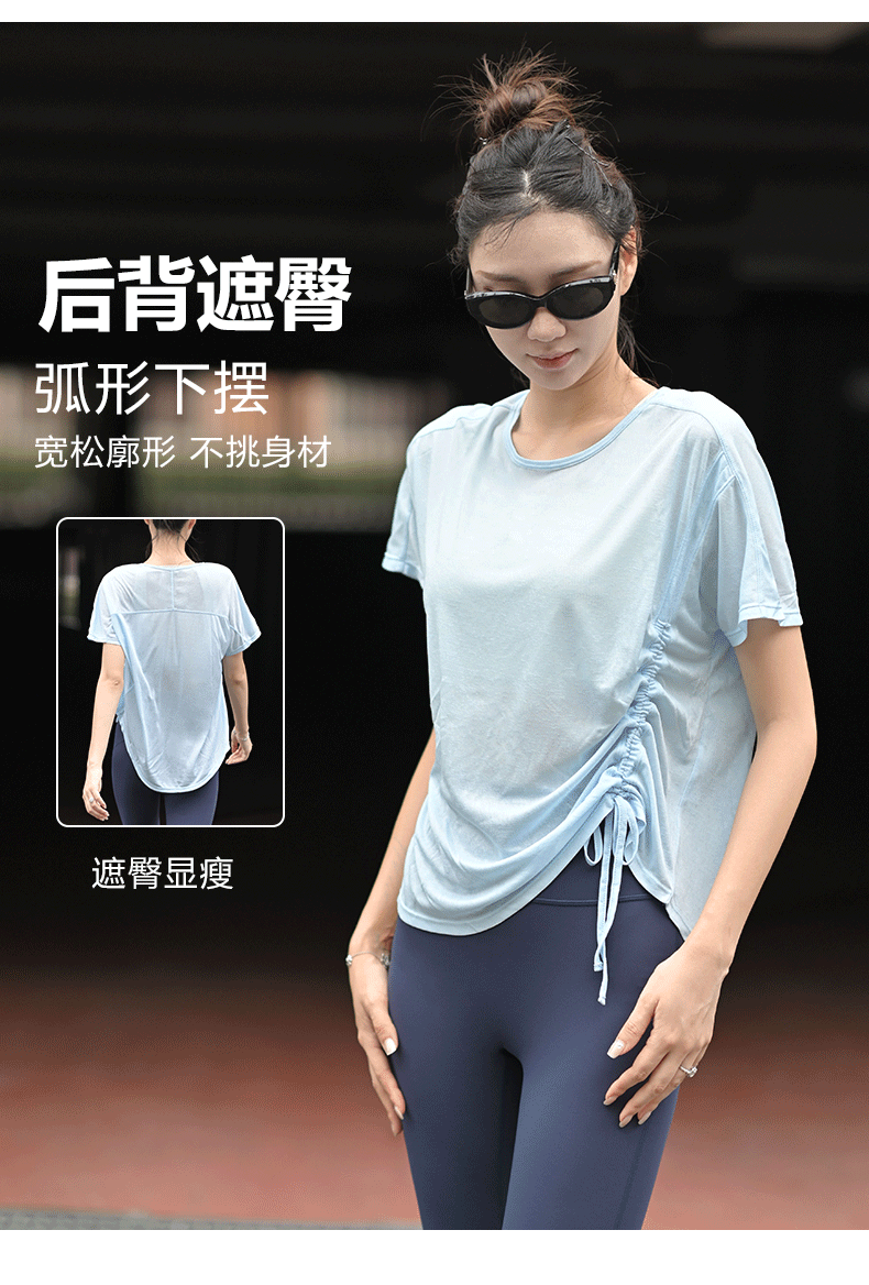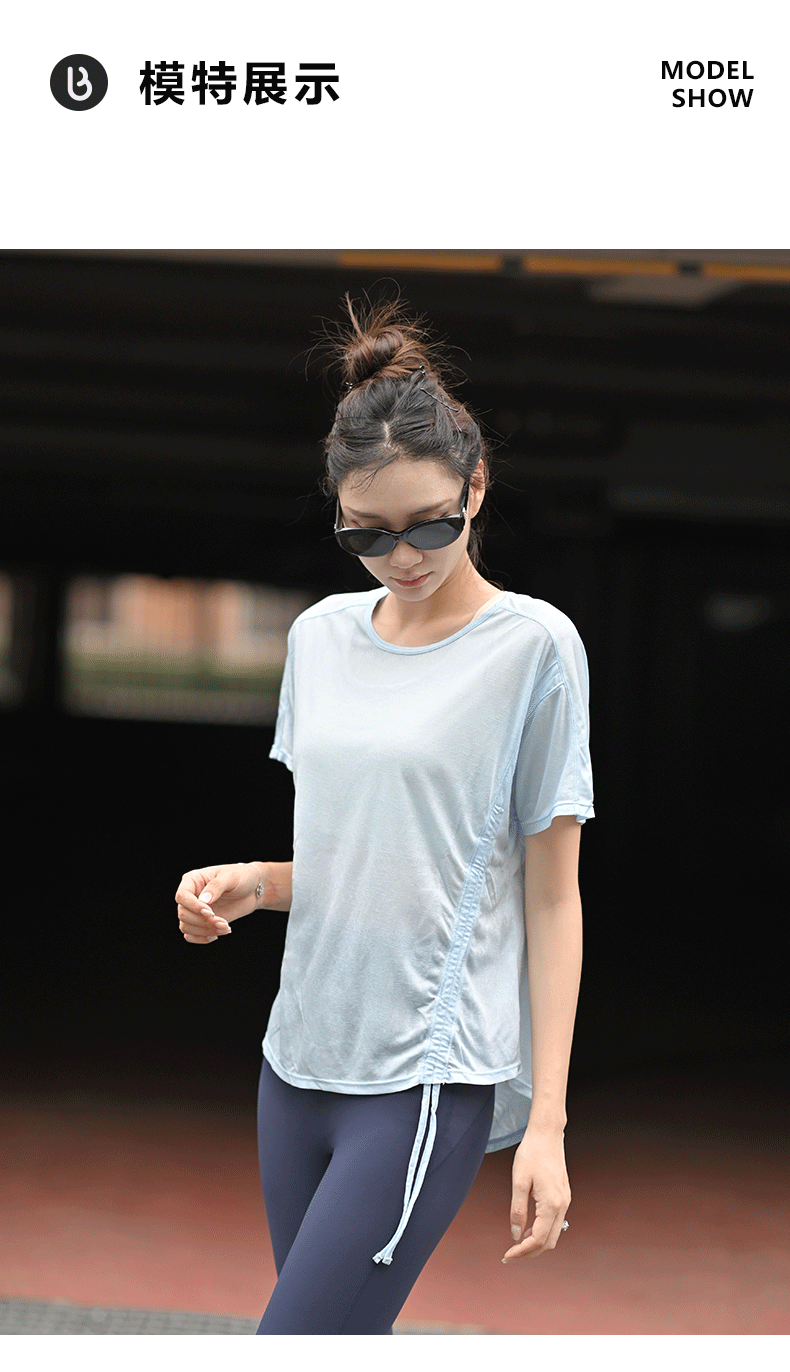 beemen宽松运动短袖 轻薄舒适 遮臀不尴尬 宽松藏肉肉 抽绳两穿短袖 跑步瑜伽健身T恤