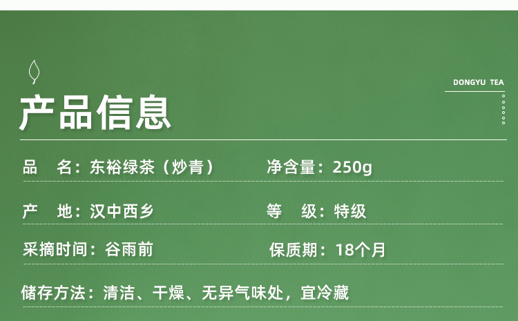 东裕茗茶特级炒青250克三角袋装 醇厚耐泡 甘醇栗香
