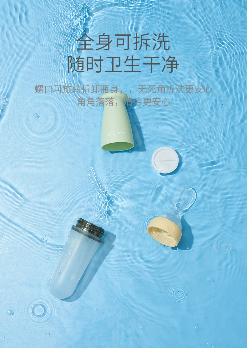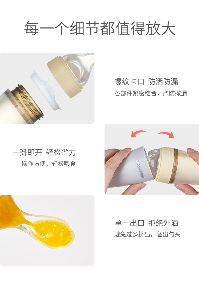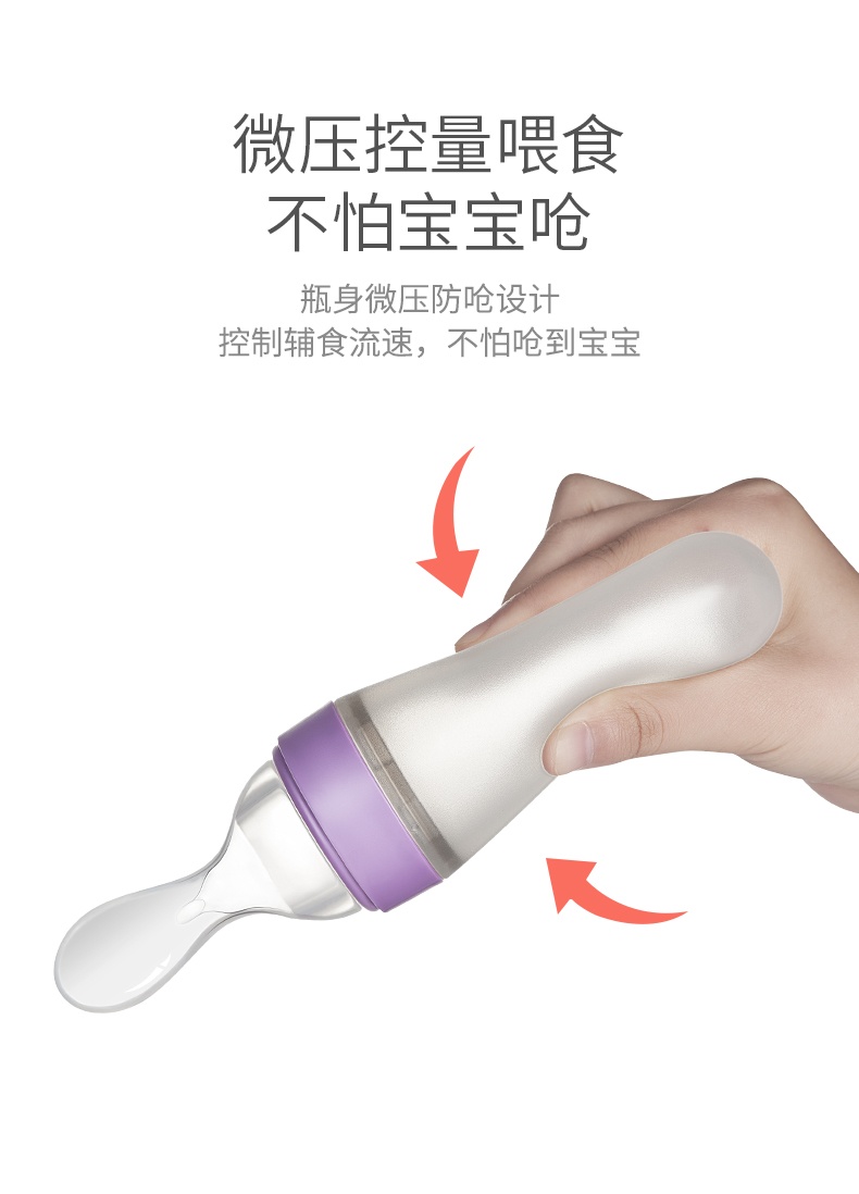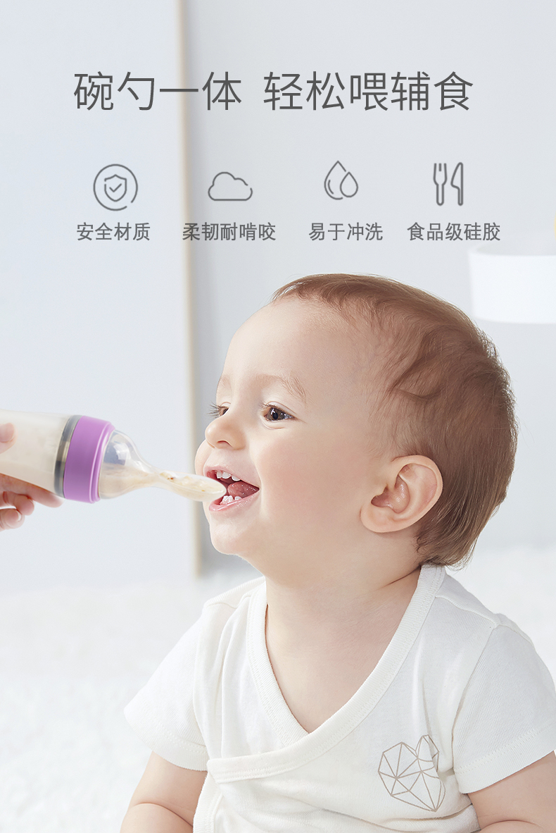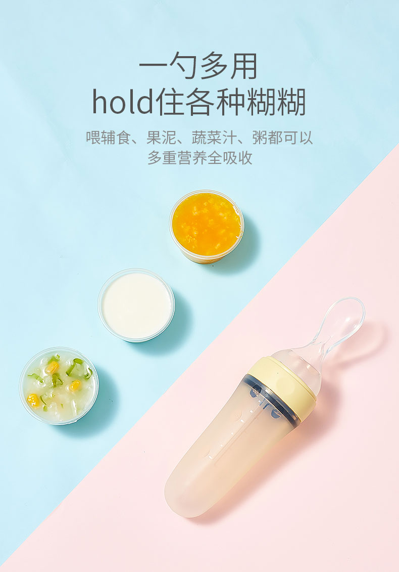 科巢婴儿米糊勺奶瓶挤压式喂养硅胶软勺宝宝辅食工具碗喂食米粉神器