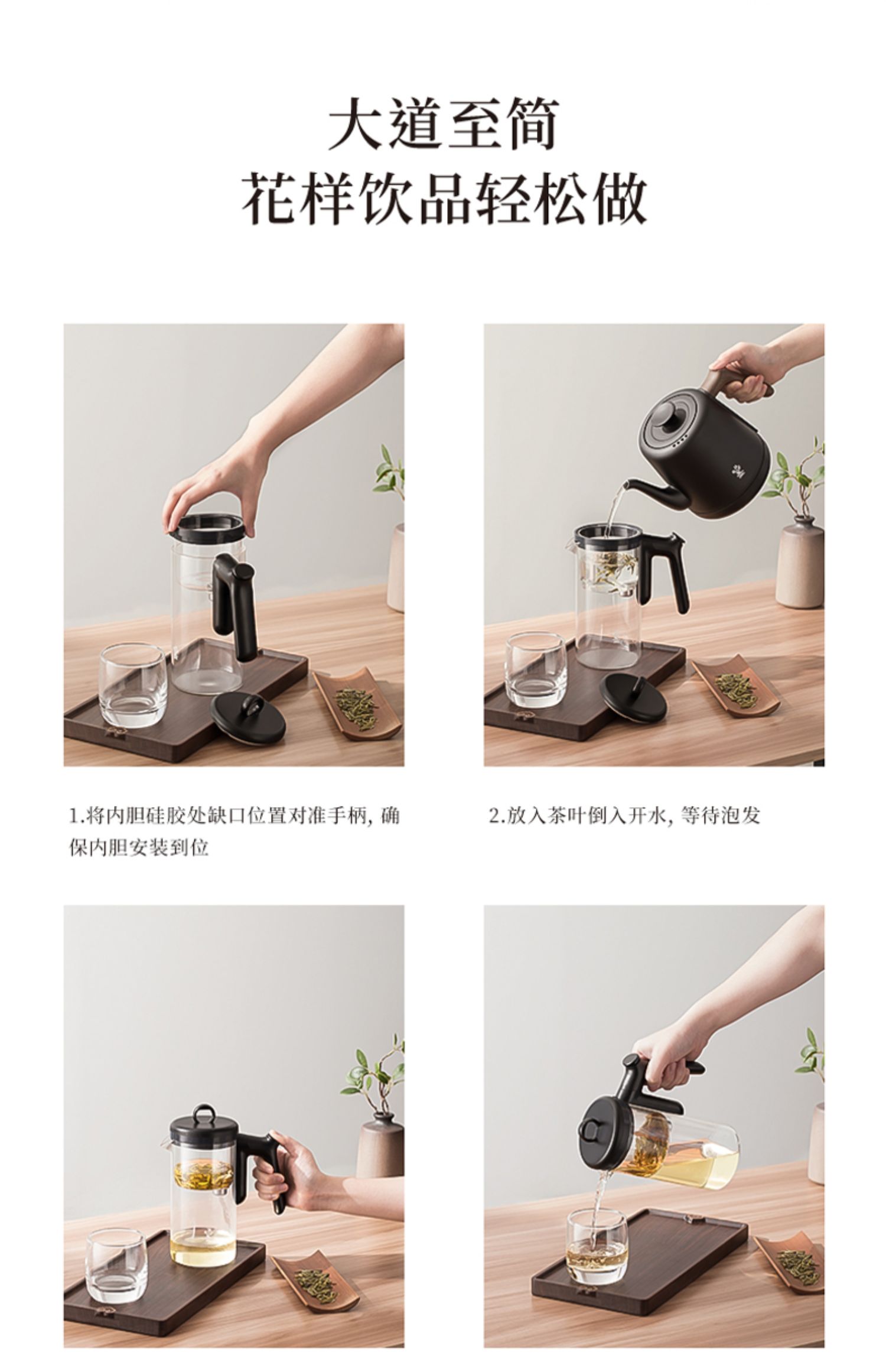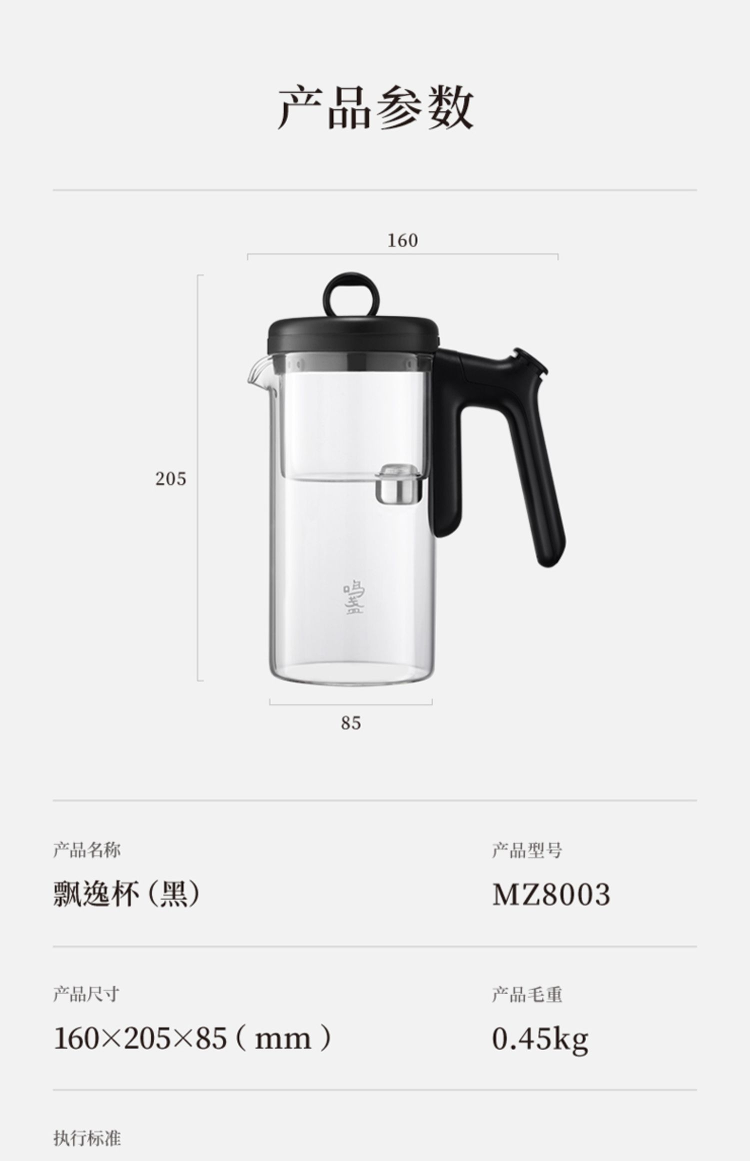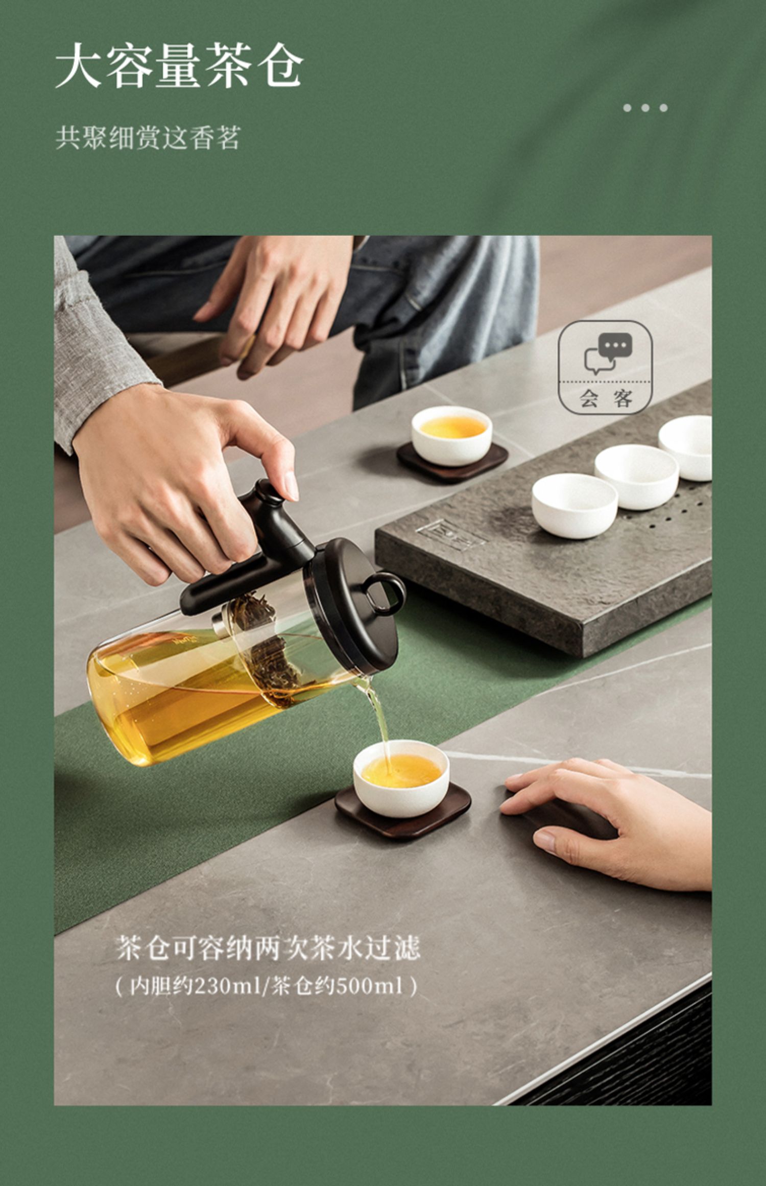 【8折特惠,仅1个,无货退款】鸣盏飘逸杯泡茶壶全玻璃内胆大容量茶水分离过滤可拆洗茶具飘逸壶