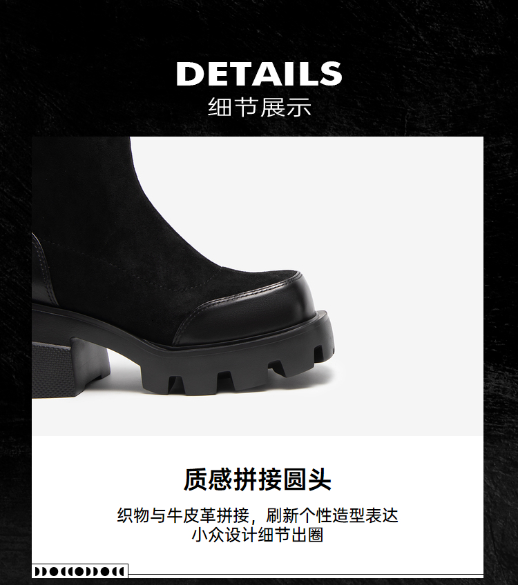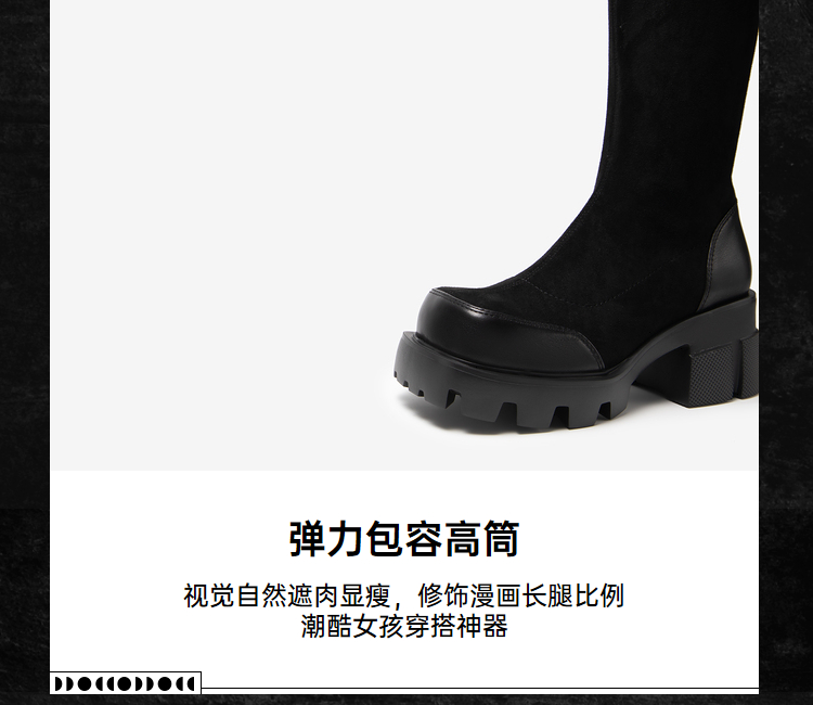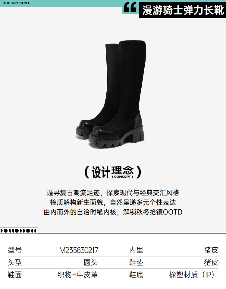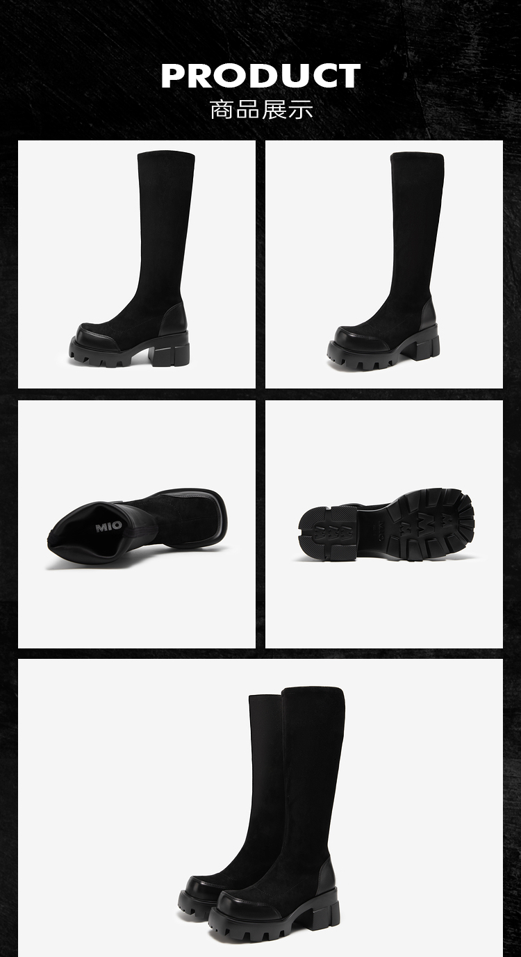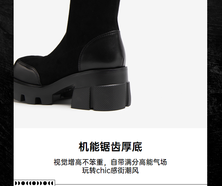 MIO米奥冬季圆头套筒弹力长靴潮流个性显高厚底休闲袜靴女靴M235830217