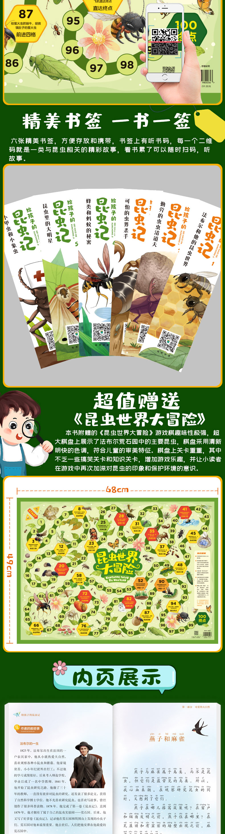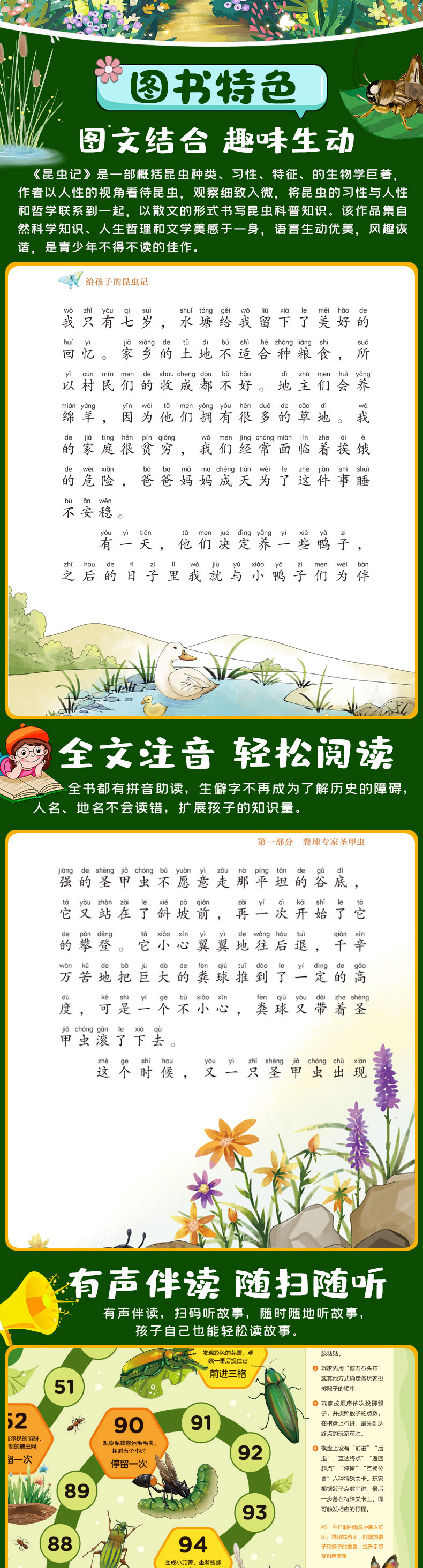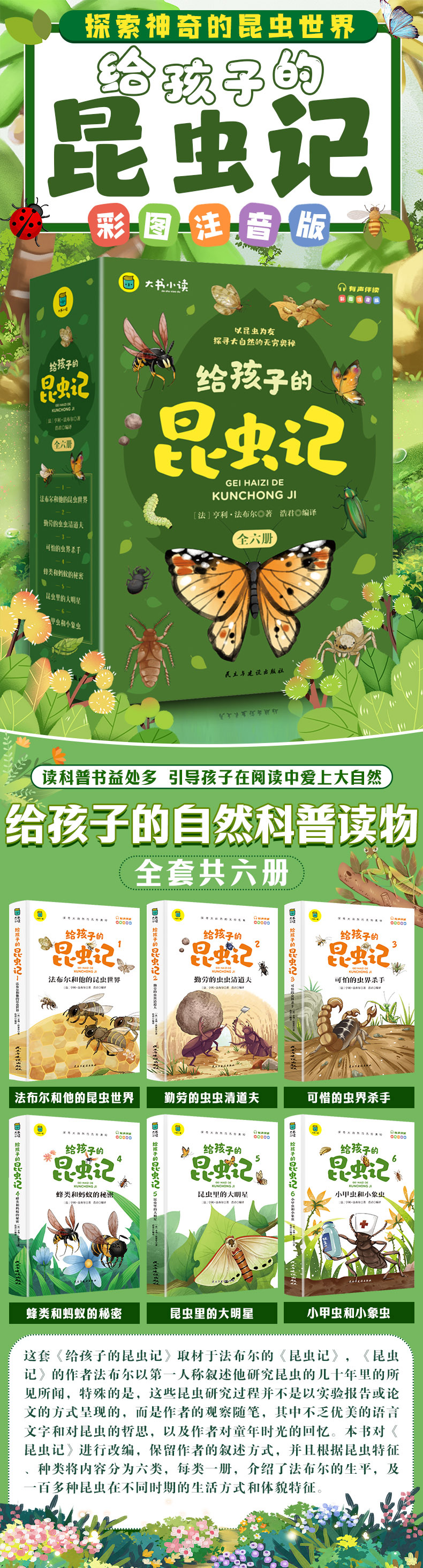 正版给孩子的昆虫记全套6册 小学生版彩绘注音版儿童版绘本青少年孩子读得懂的昆虫记带拼音一二年级三年级课外阅读书籍百科全书写