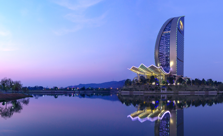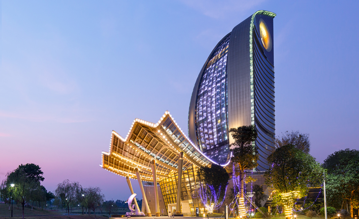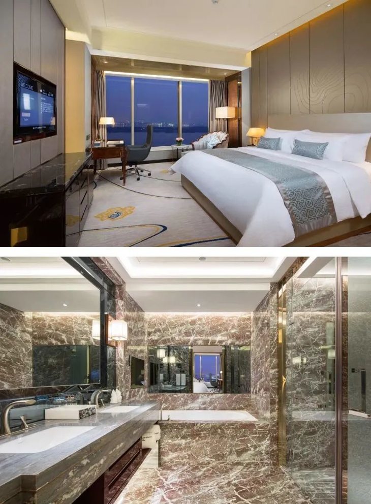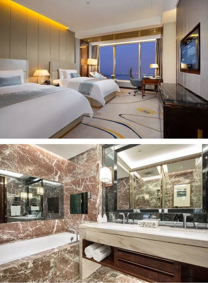 “迪拜帆船姐妹款”!酒店地处西江新城核心地带,总建筑高168米,面积近8万平方米,是一家白金五星级综合型酒店,同时也是迪拜帆船酒店姐妹款。