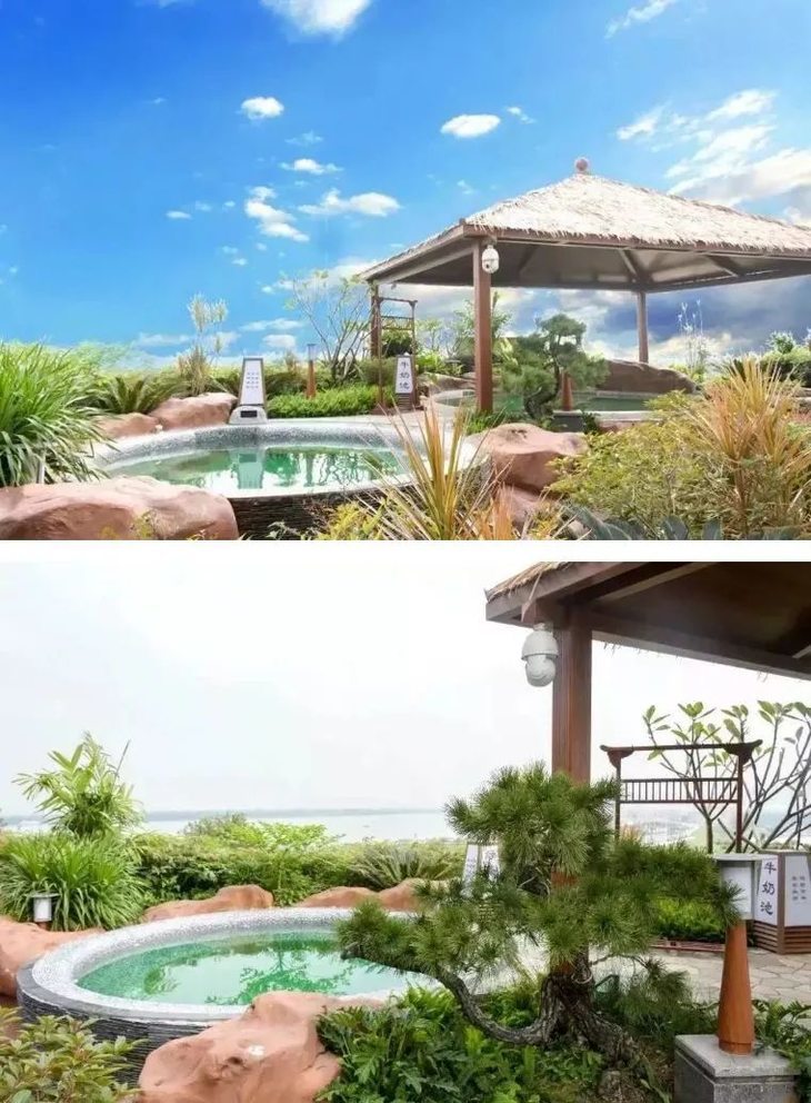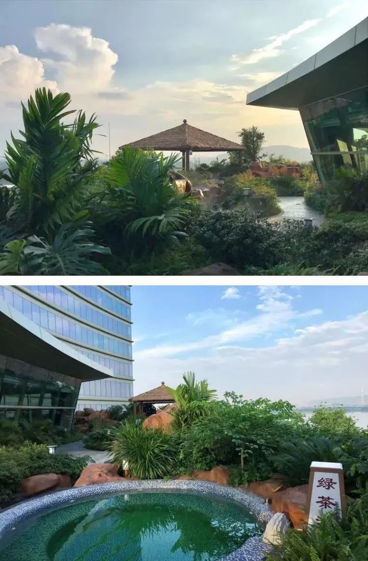 空中温泉钻探1000多米取温泉水,酒店的空中温泉是依巴厘岛的装修风格建立而成,一亮相便成为佛山地区首个温泉酒店。