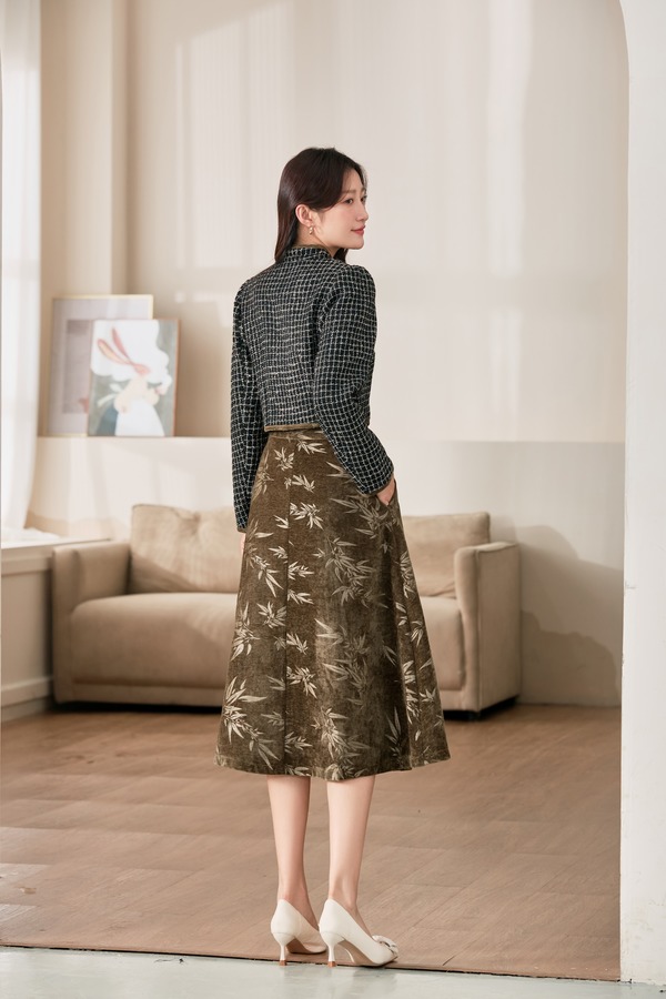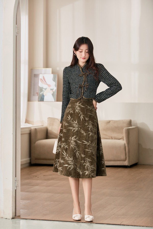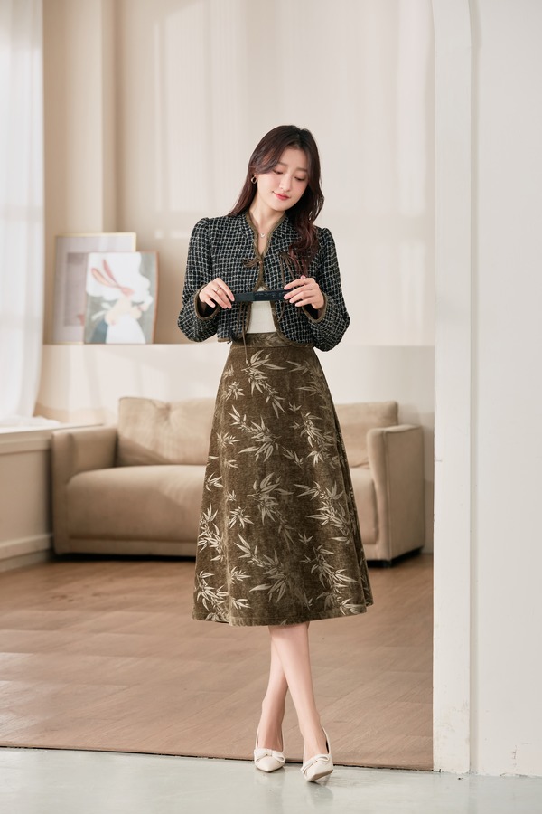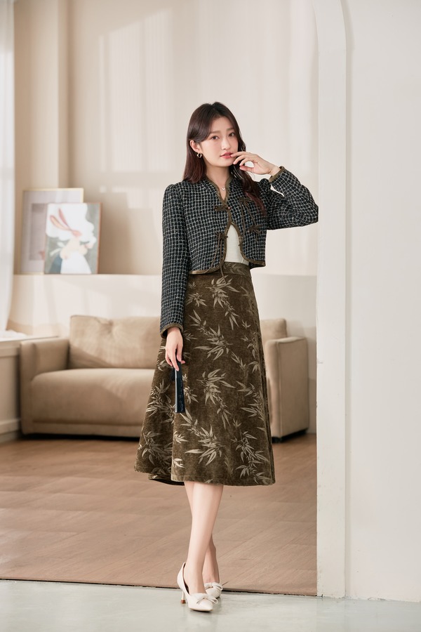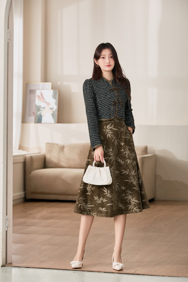 Le Malene 气质新中式印花盘扣外套半裙套装 19534