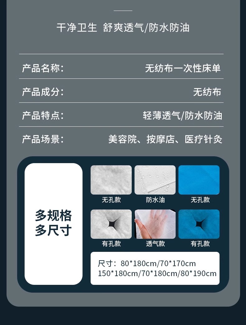 一次性床单美容院超划算加厚防水防油透气款按摩带洞无纺布100张