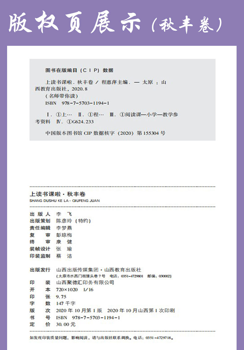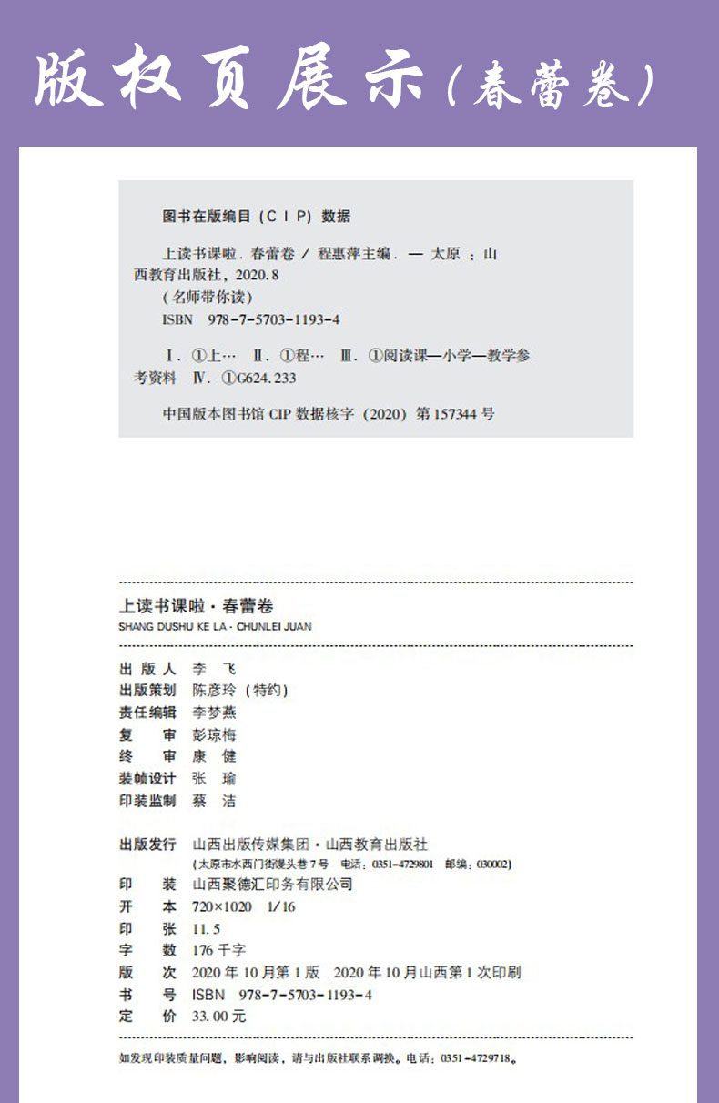 二册 上读书课啦 春蕾卷 秋丰卷 阅读课 小学 教学参考