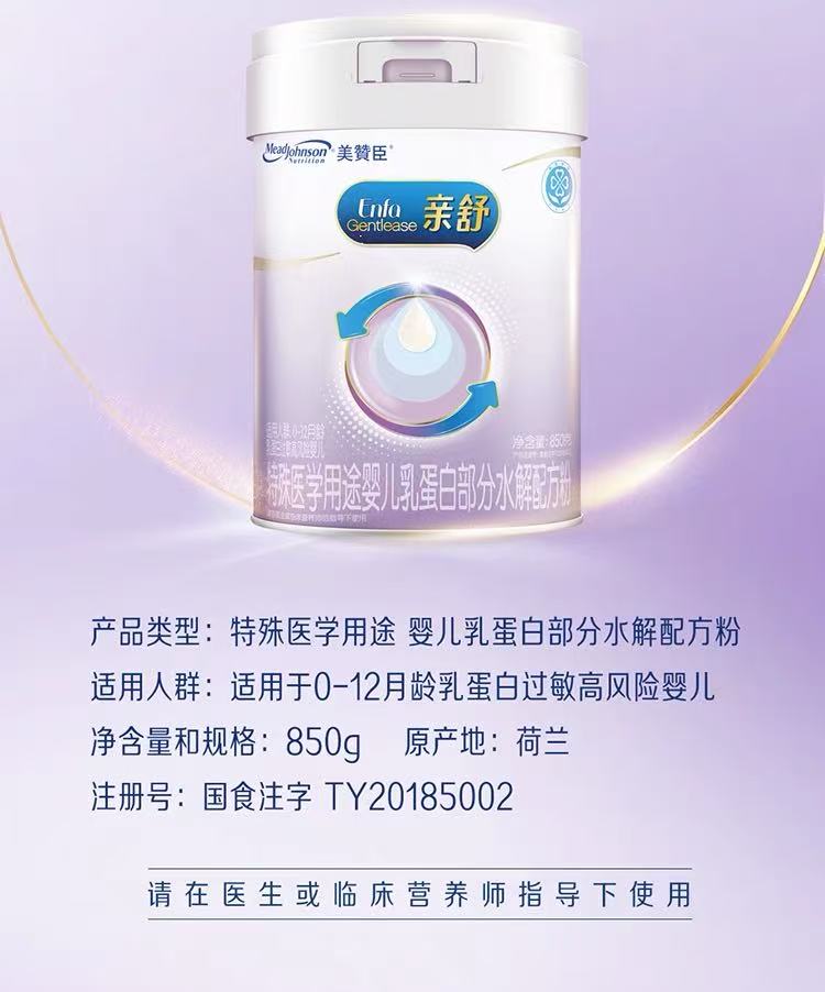 美赞臣亲舒1段(0-12月龄)适度水解配方奶粉/部分水解/低乳糖 850g