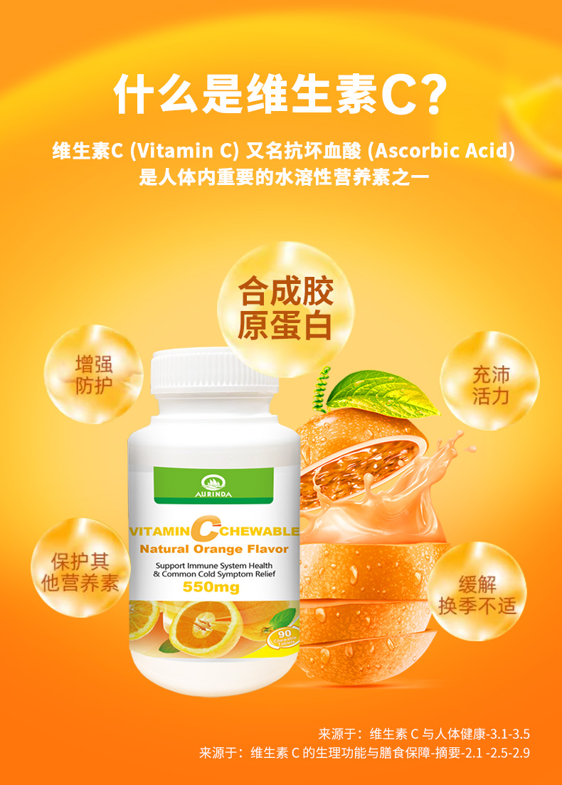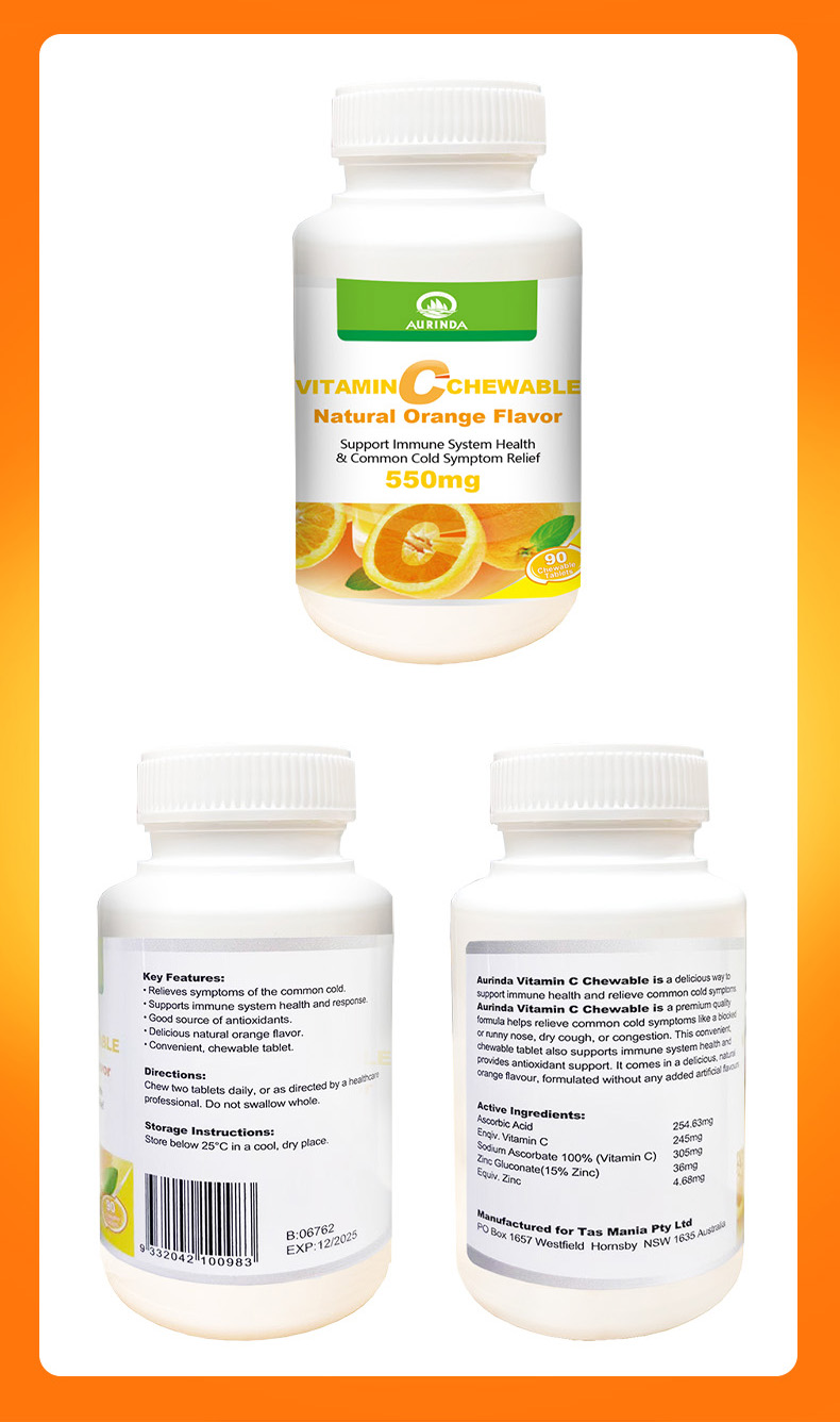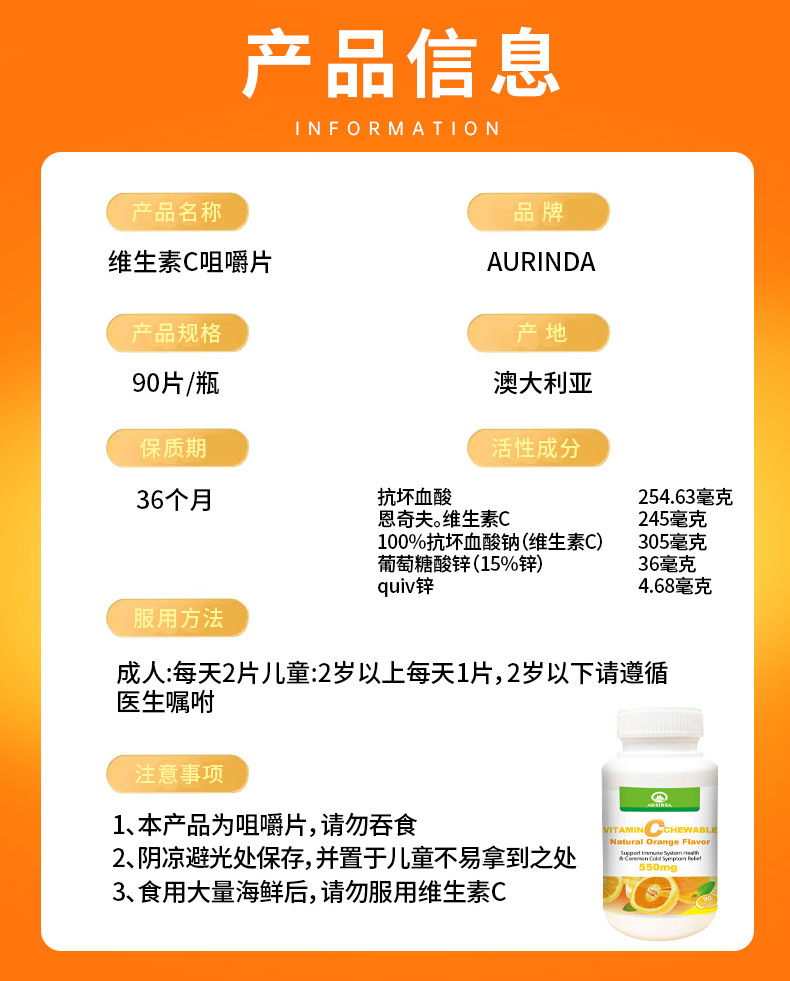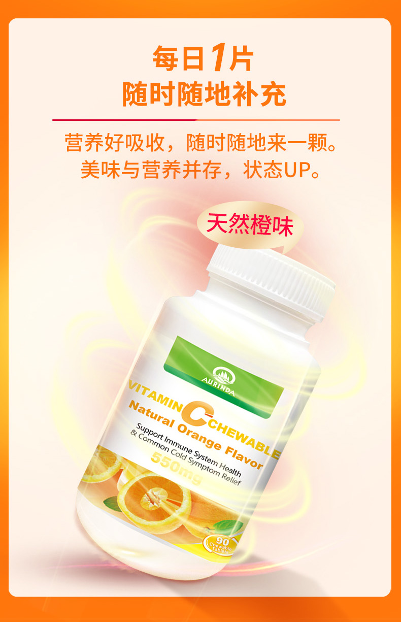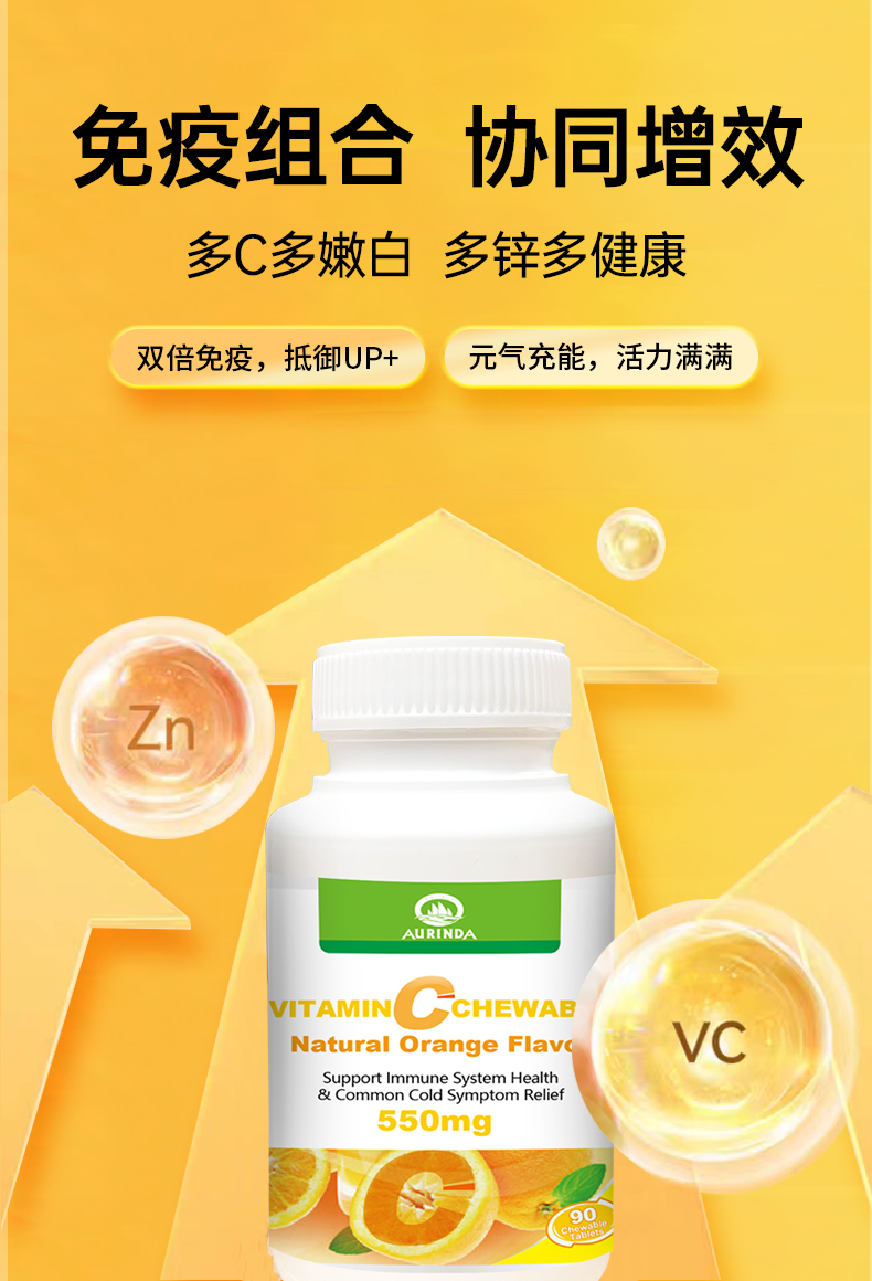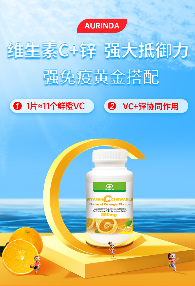 澳洲进口澳琳达维生素C 天然橙味vc补锌片正品官方旗舰店成人儿童