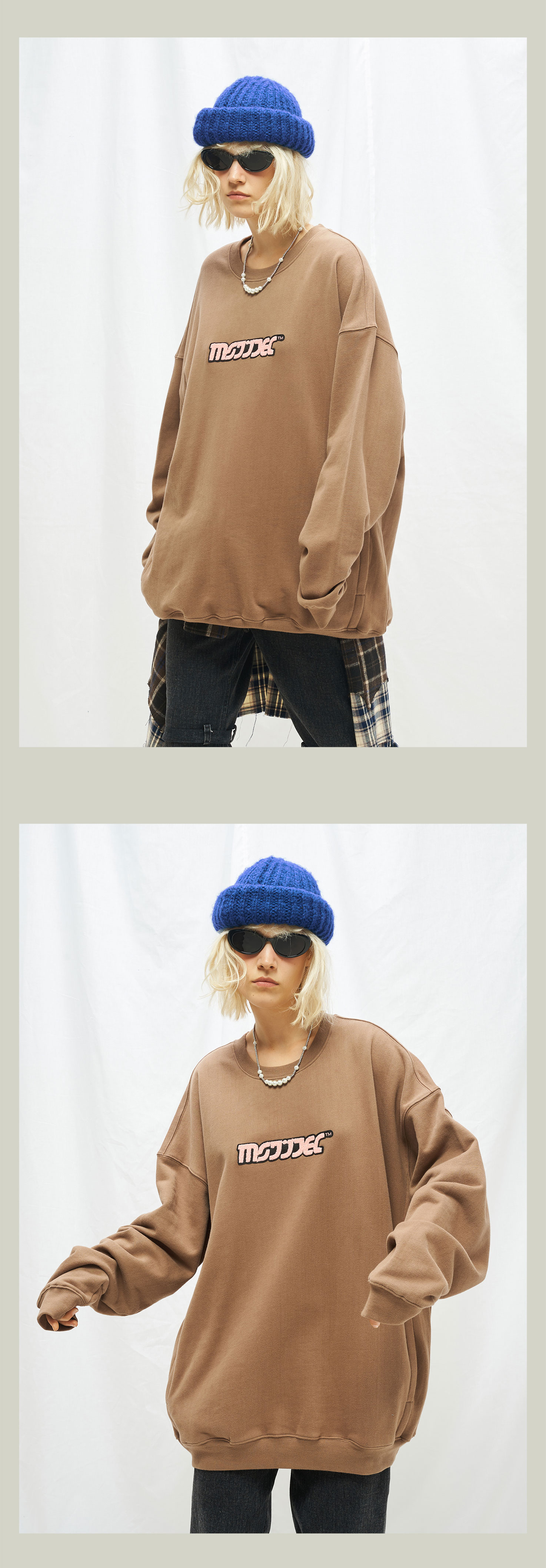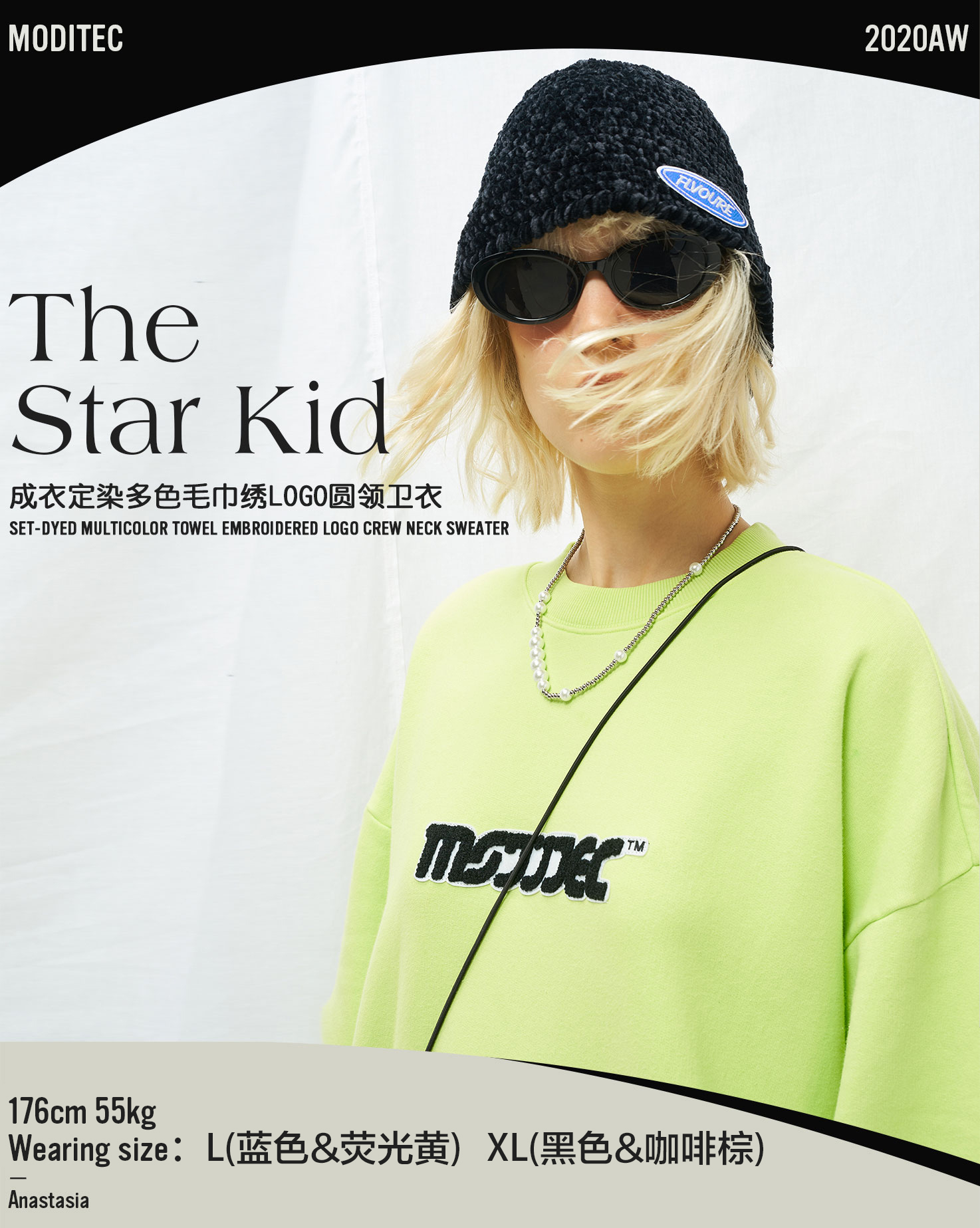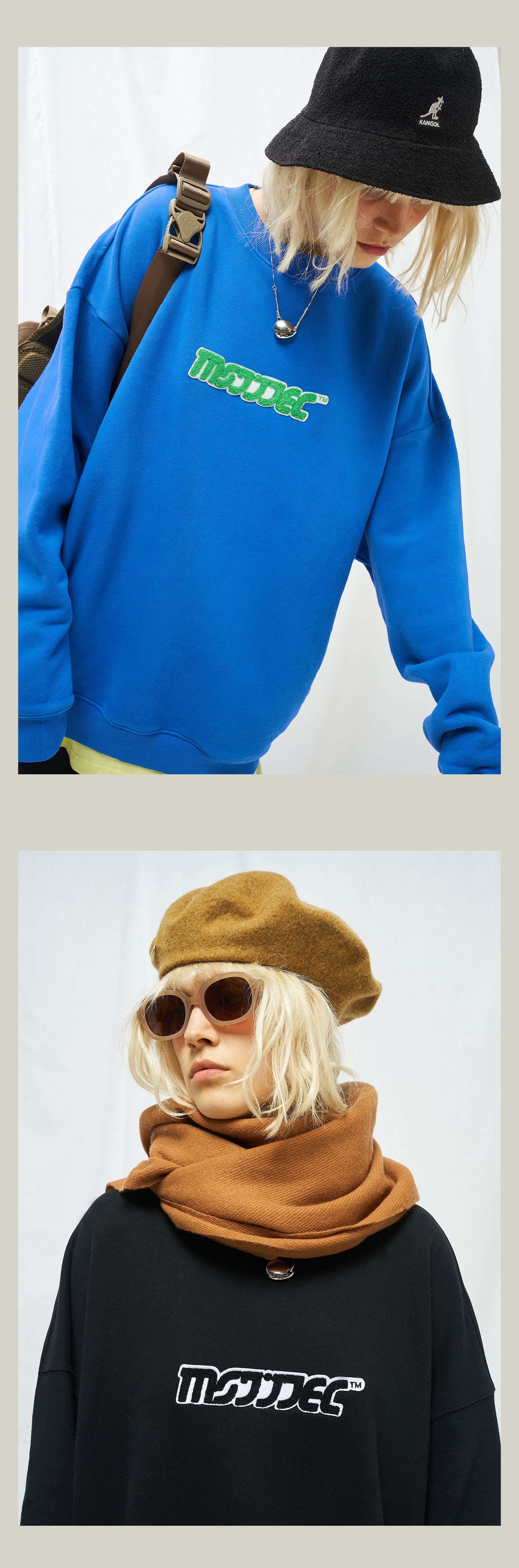 MODITEC秋冬毛巾刺绣圆领加绒卫衣糖果四色卫衣 Sunnee杨芸晴同款