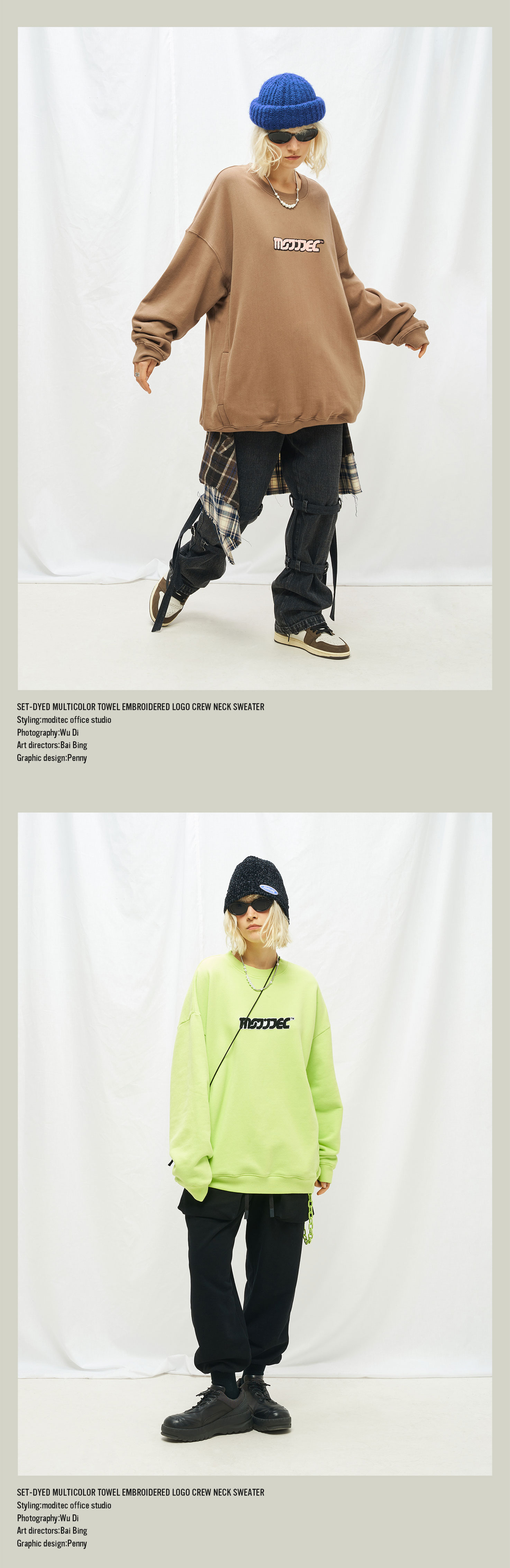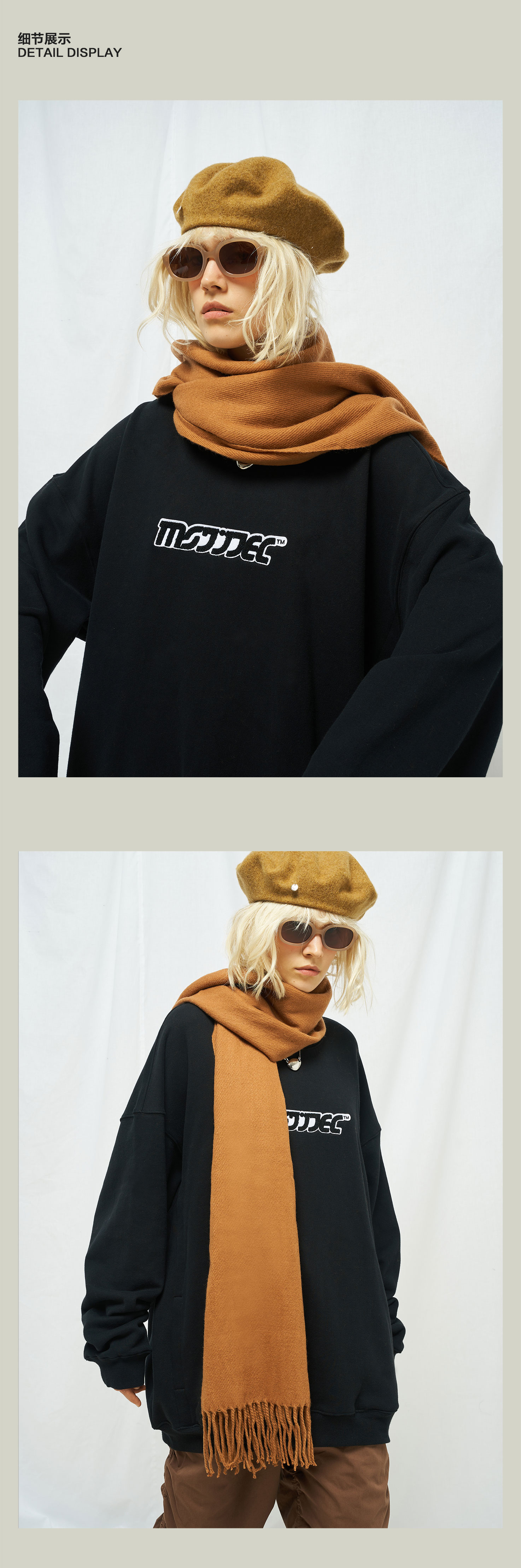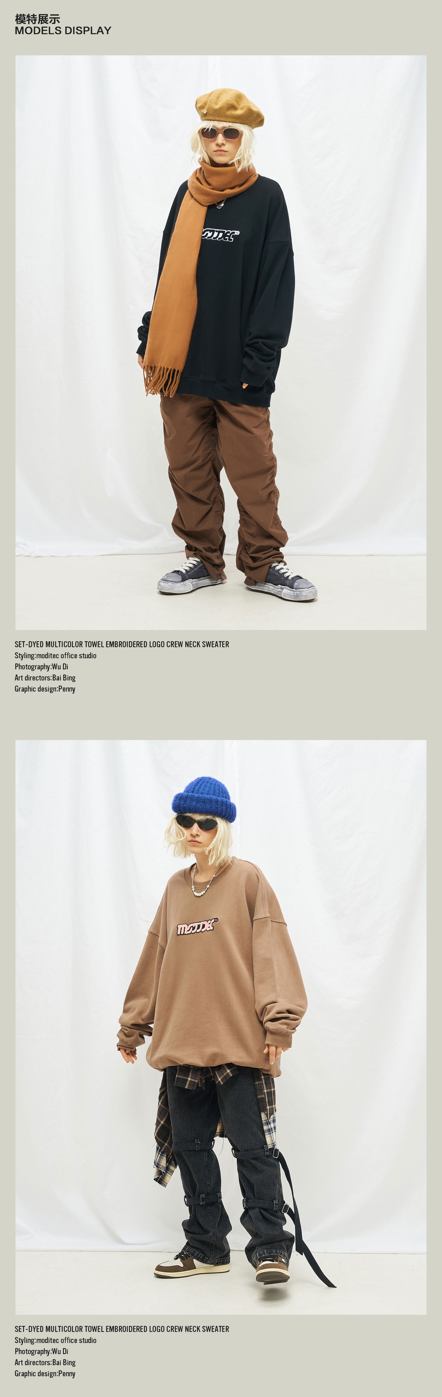 MODITEC秋冬毛巾刺绣圆领加绒卫衣糖果四色卫衣 Sunnee杨芸晴同款
