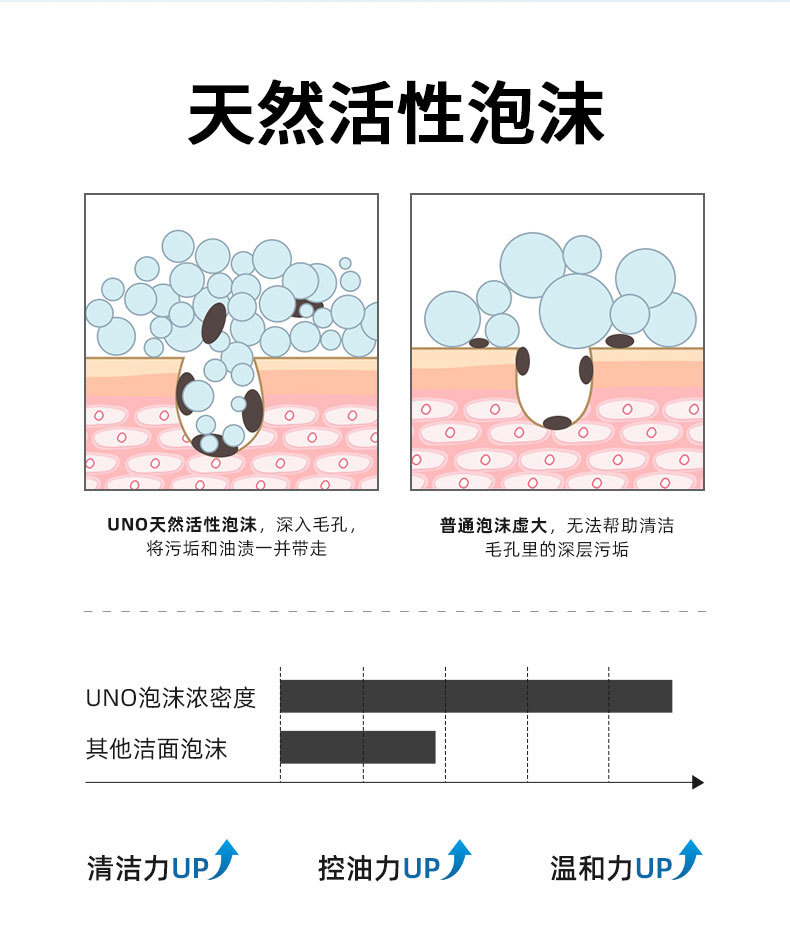 日本u.no吾诺洗面奶男士补水保湿滋润控油祛痘清洁毛孔泡沫洁面乳 商品图2